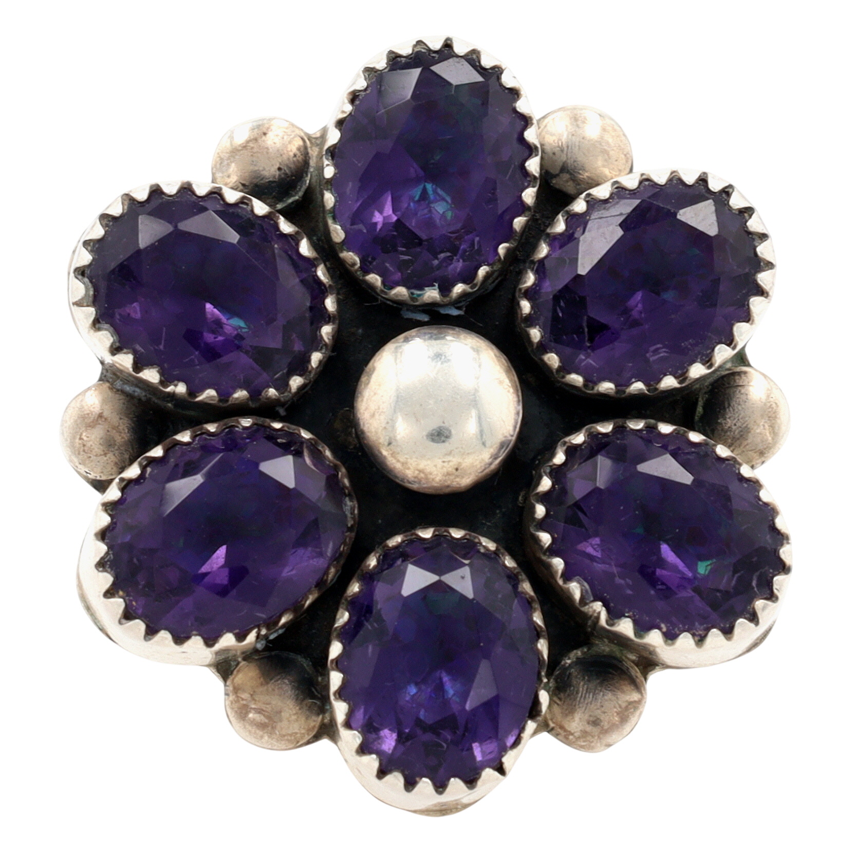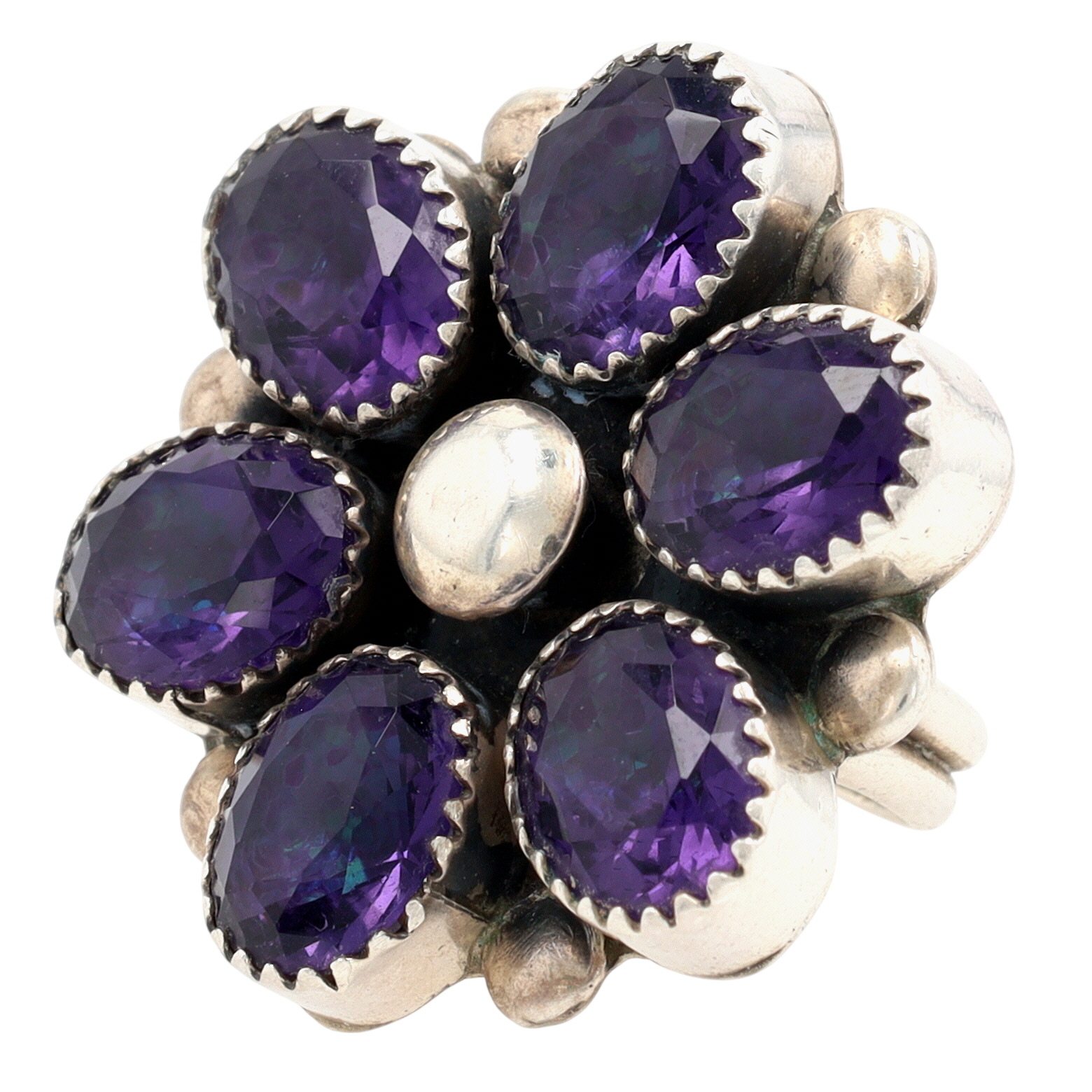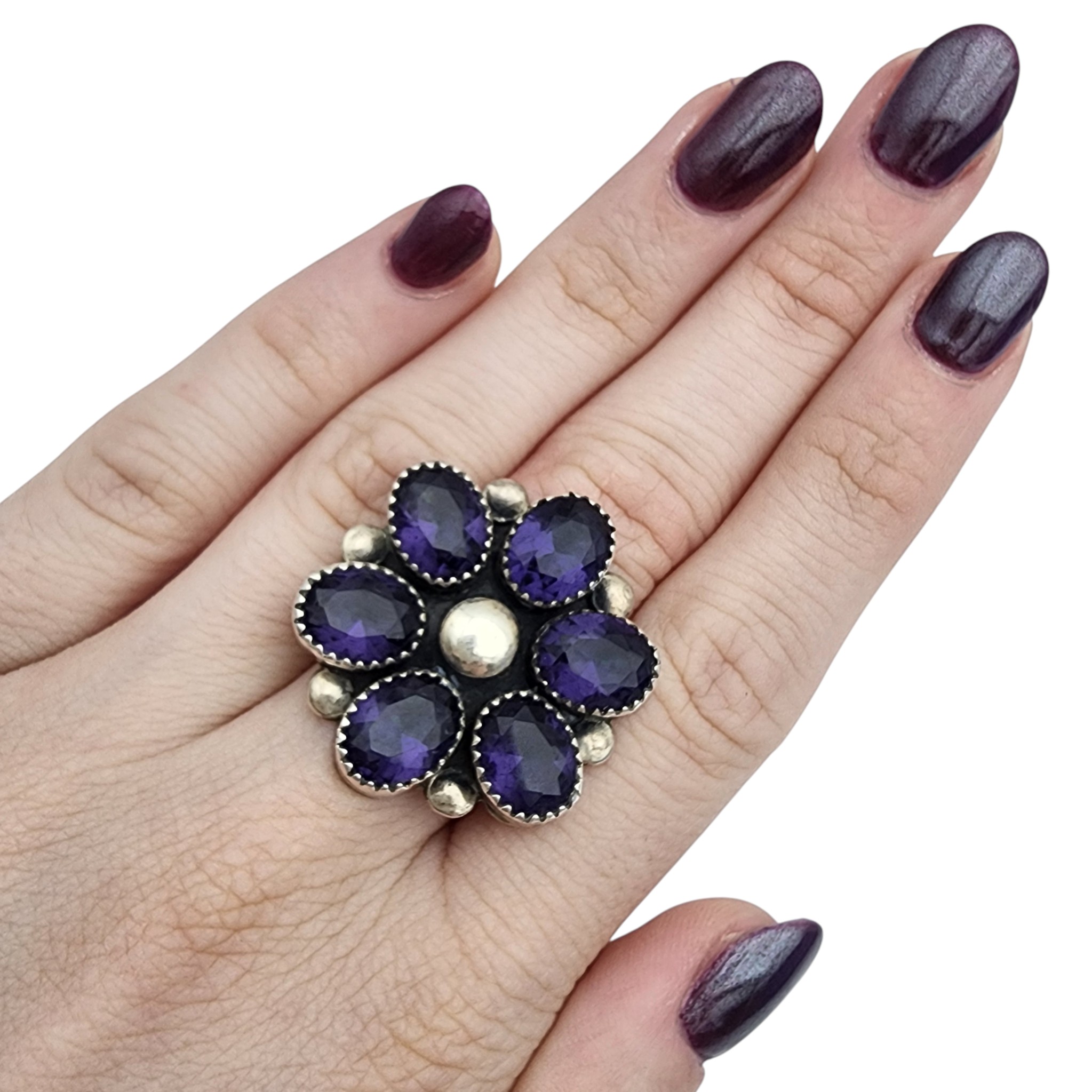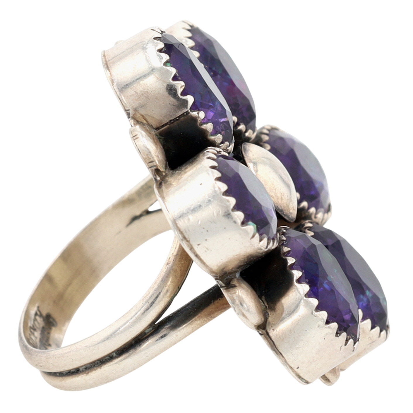Stellar! – ML Perry Navajo Contemporary Sterling Amethyst Cluster Ring Sz 6.5 – 10.3g