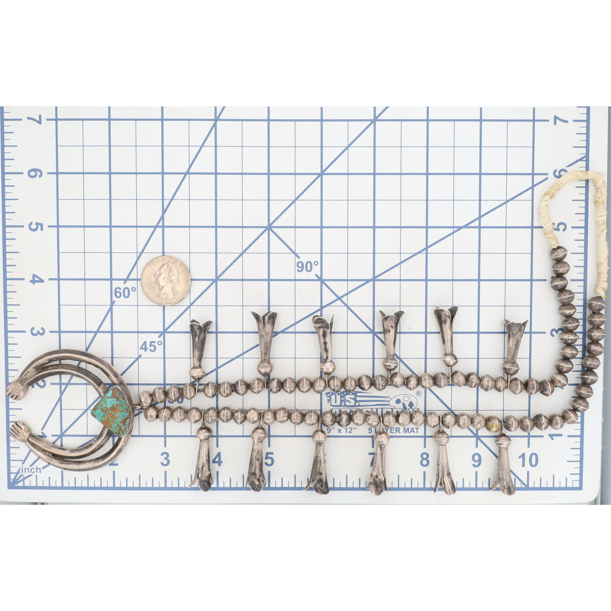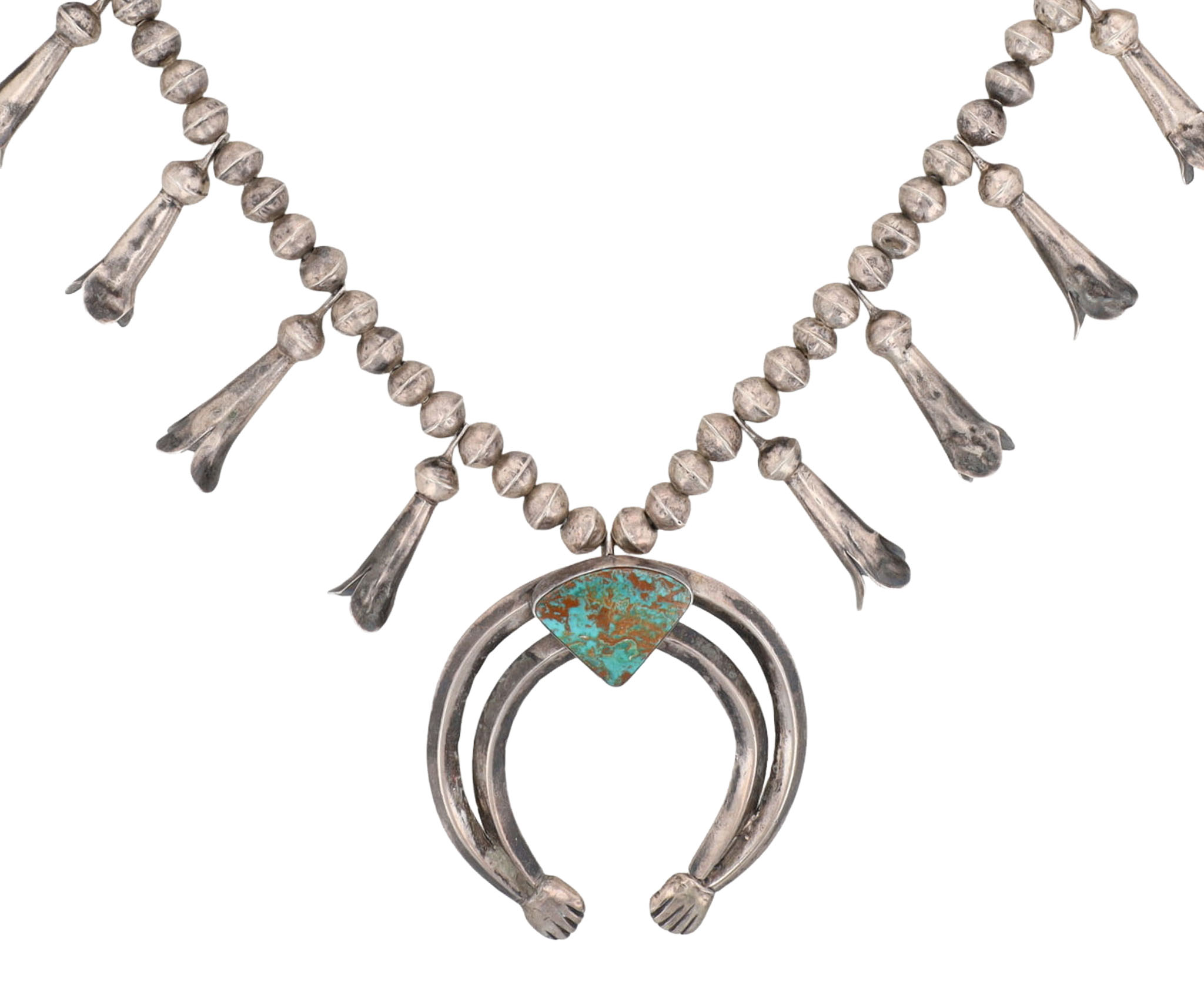 Vintage Navajo Turquoise Squash Blossom Necklace