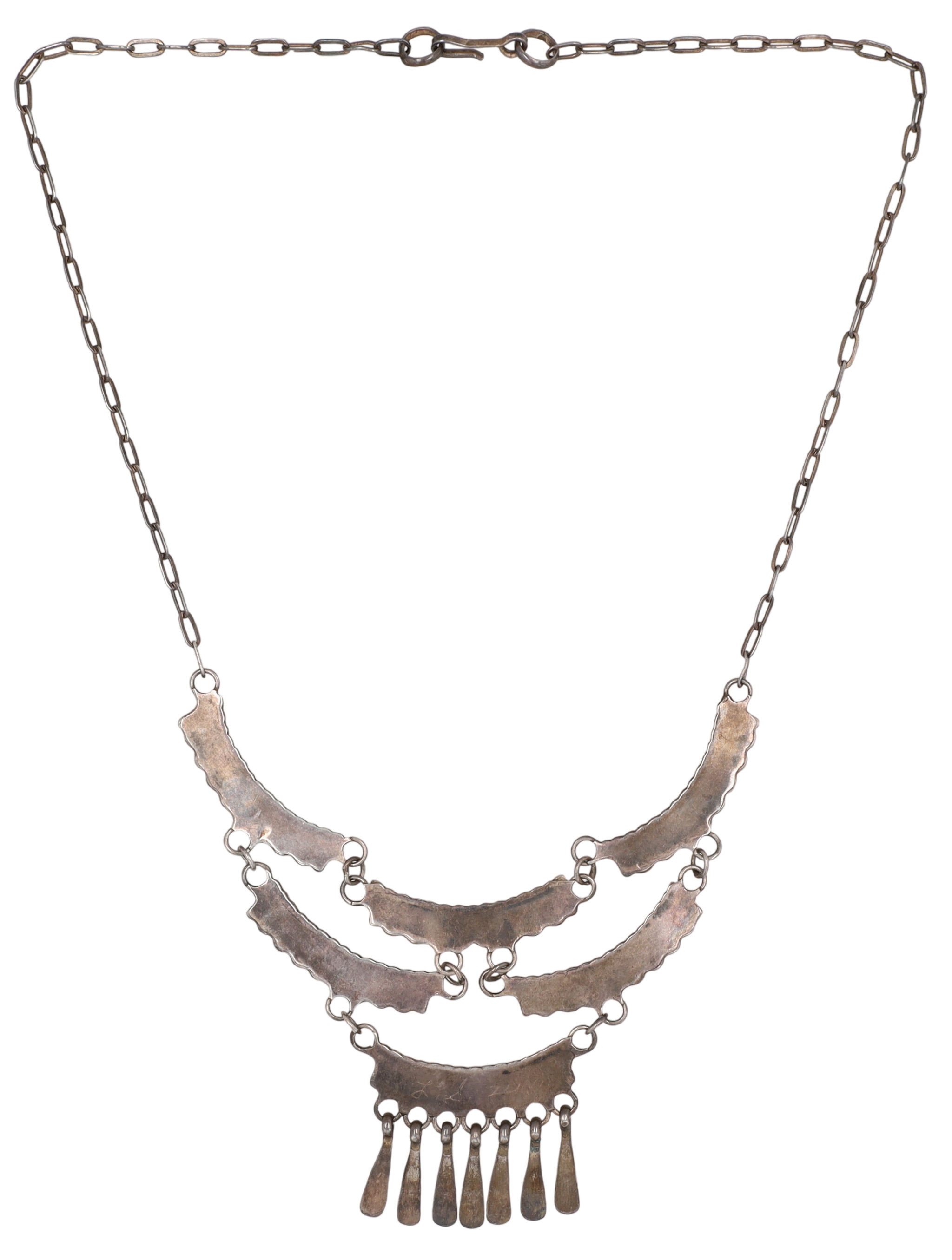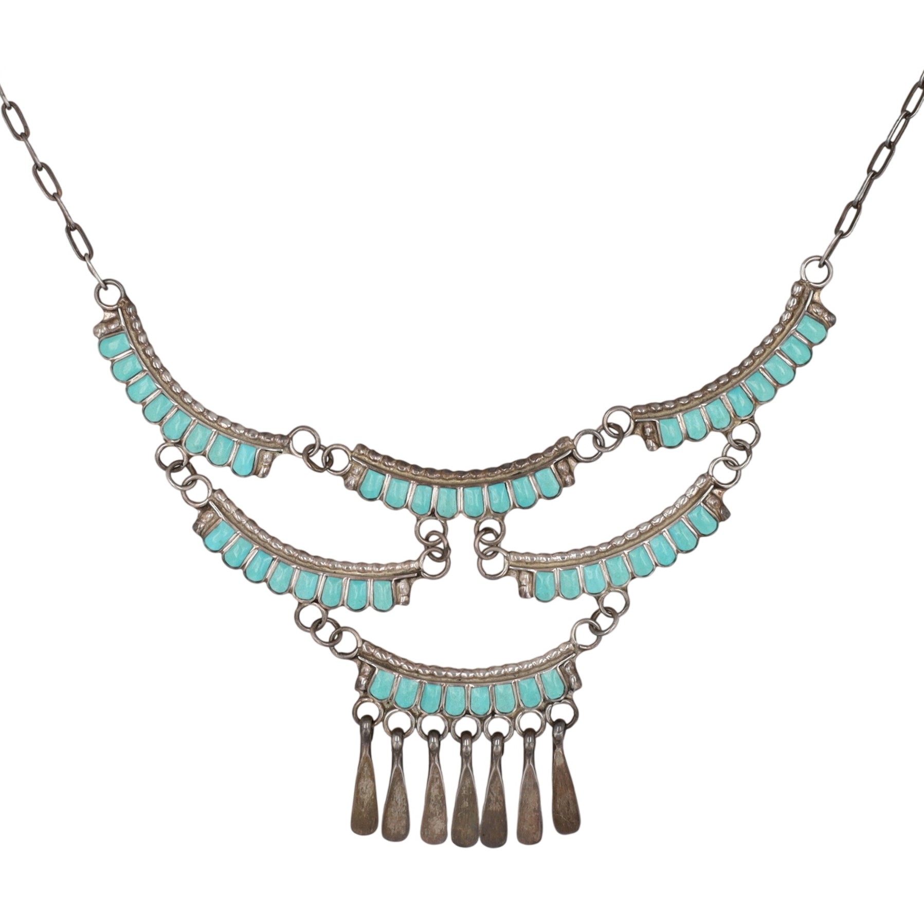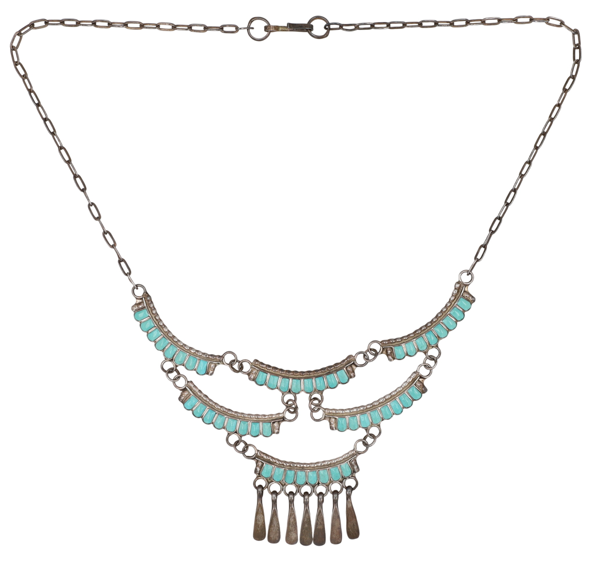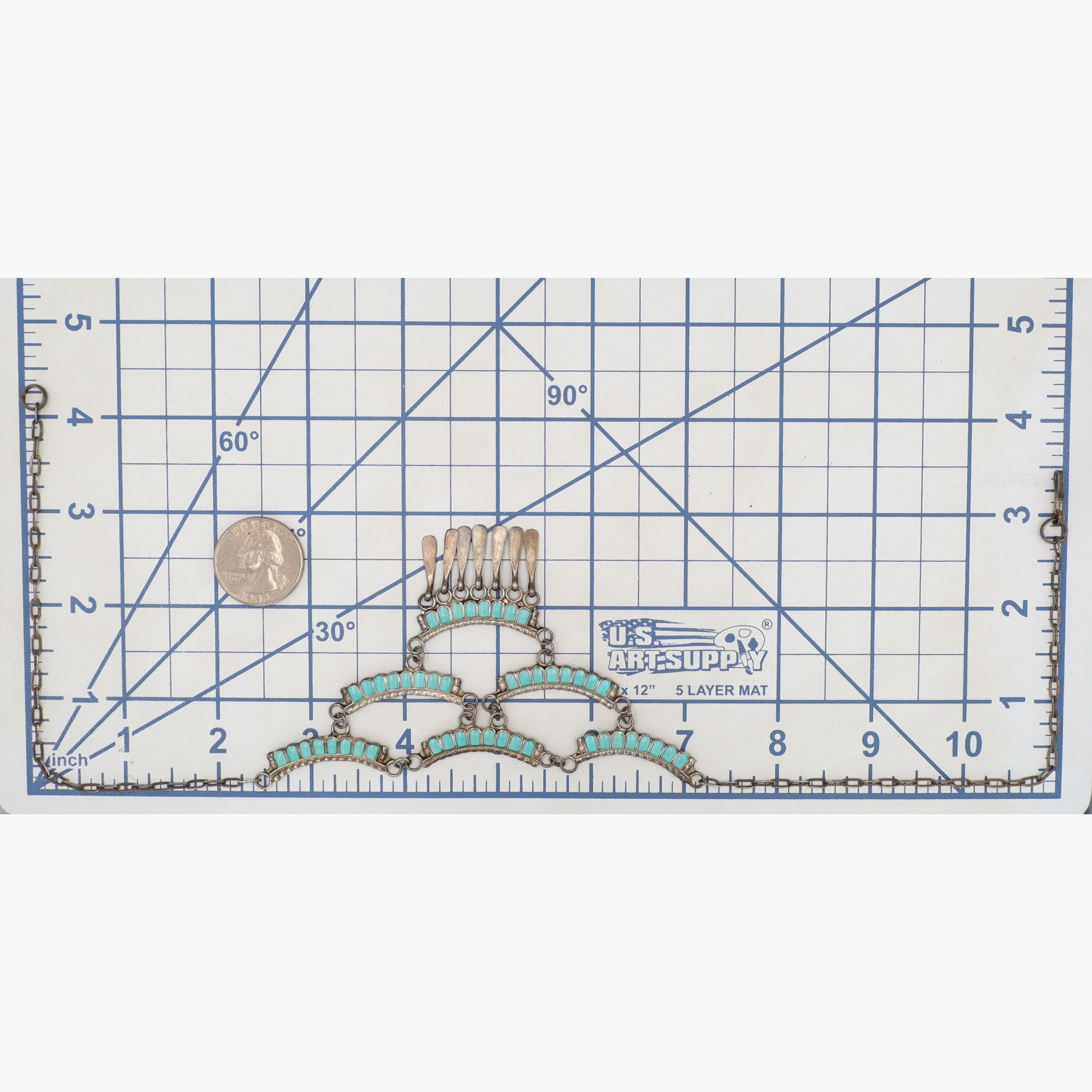 Beautiful – Vintage Lucy Sheyka/Shekya Zuni Sterling & Turquoise Ladder Bib Necklace – 22.1g – approx. 18.25″ long