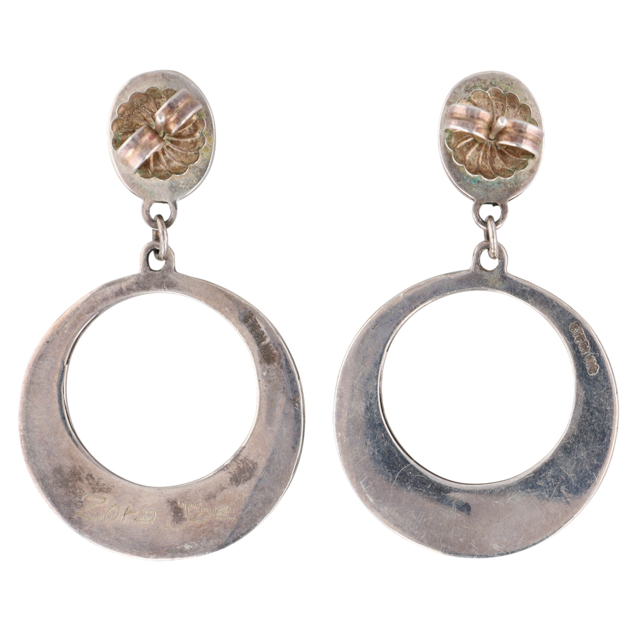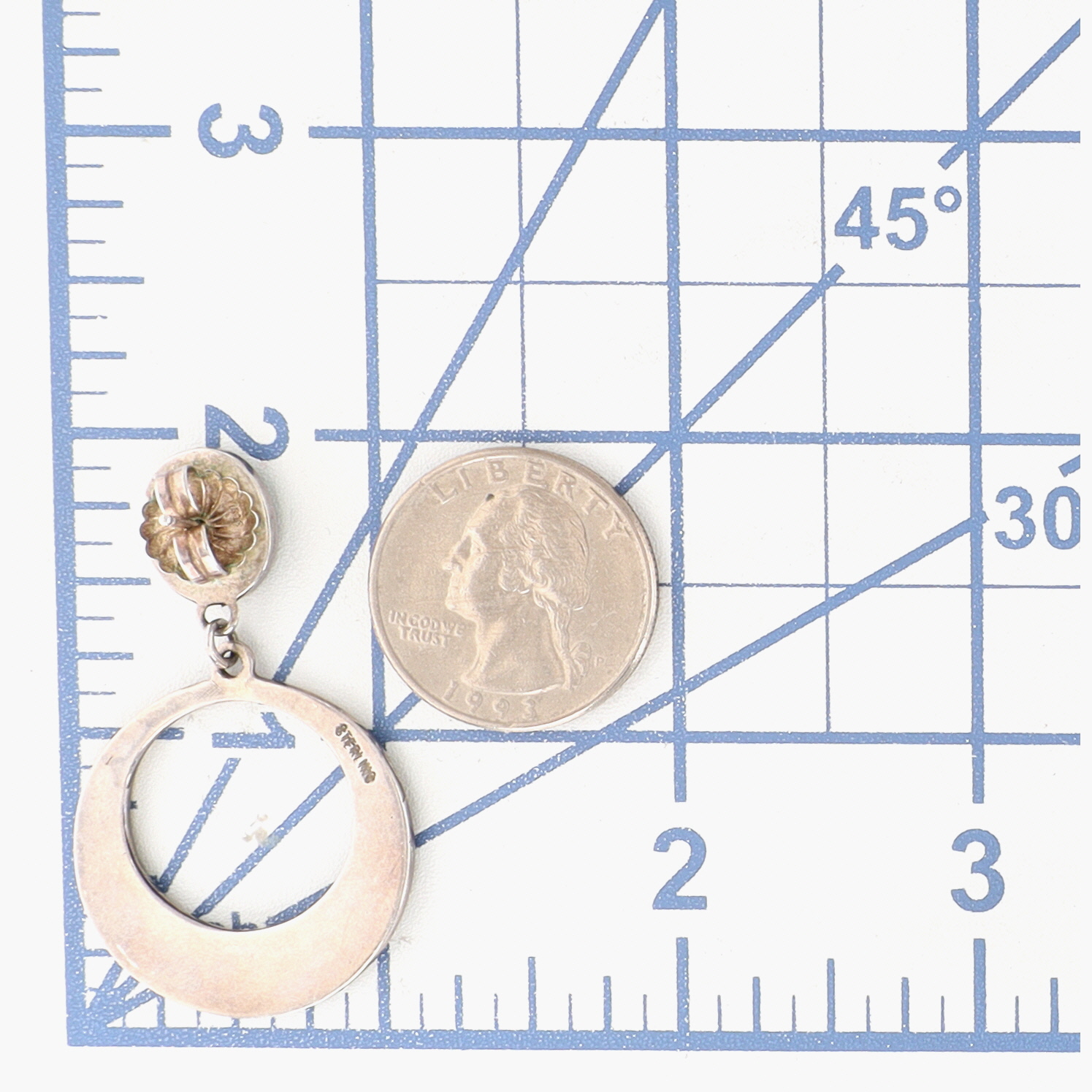 Zuni (or possibly Navajo) Sterling Multistone (Turquoise, Malachite, Jet/Onyx) Inlay Dangle Hoop Earrings – 12.8g