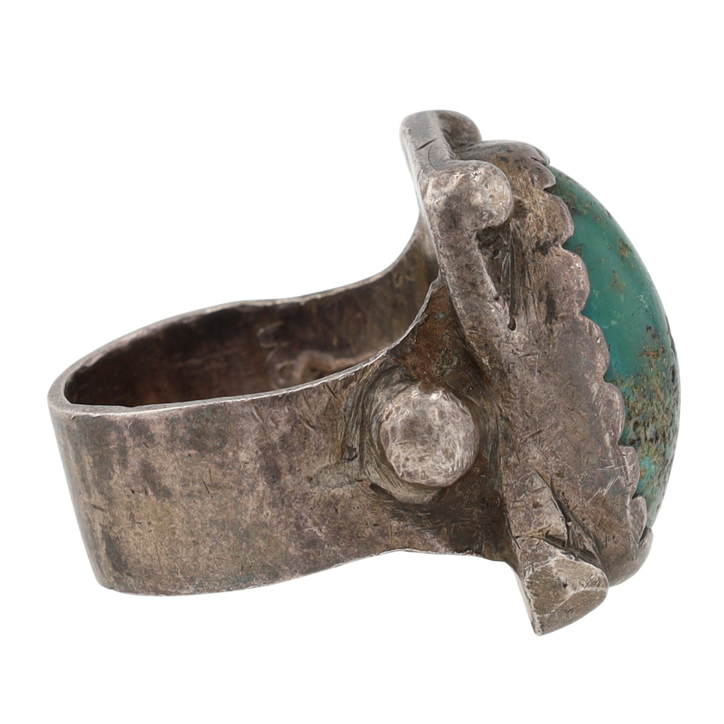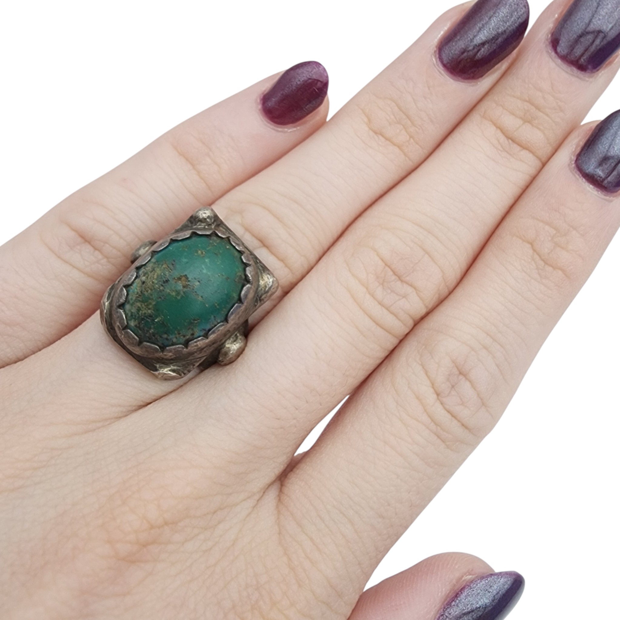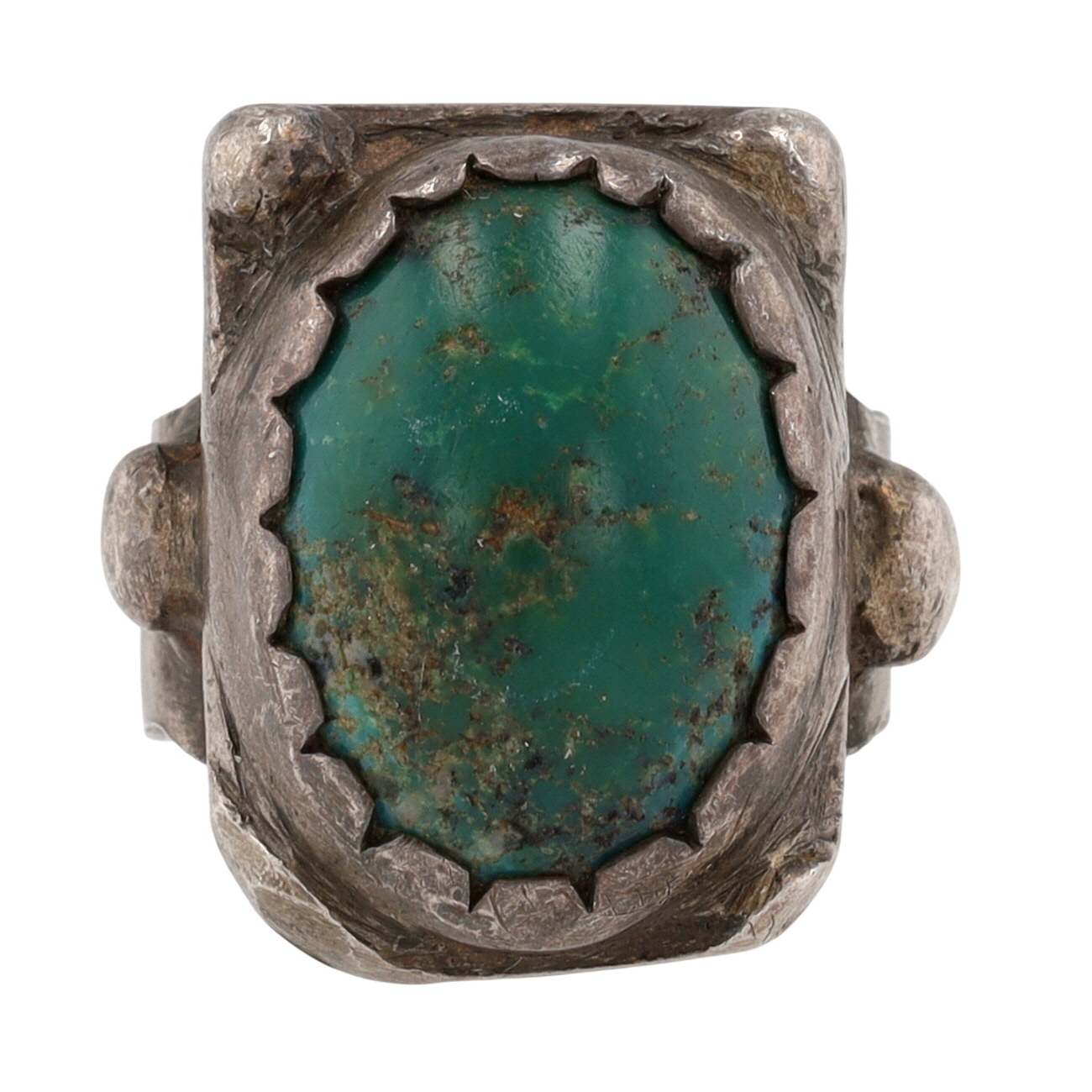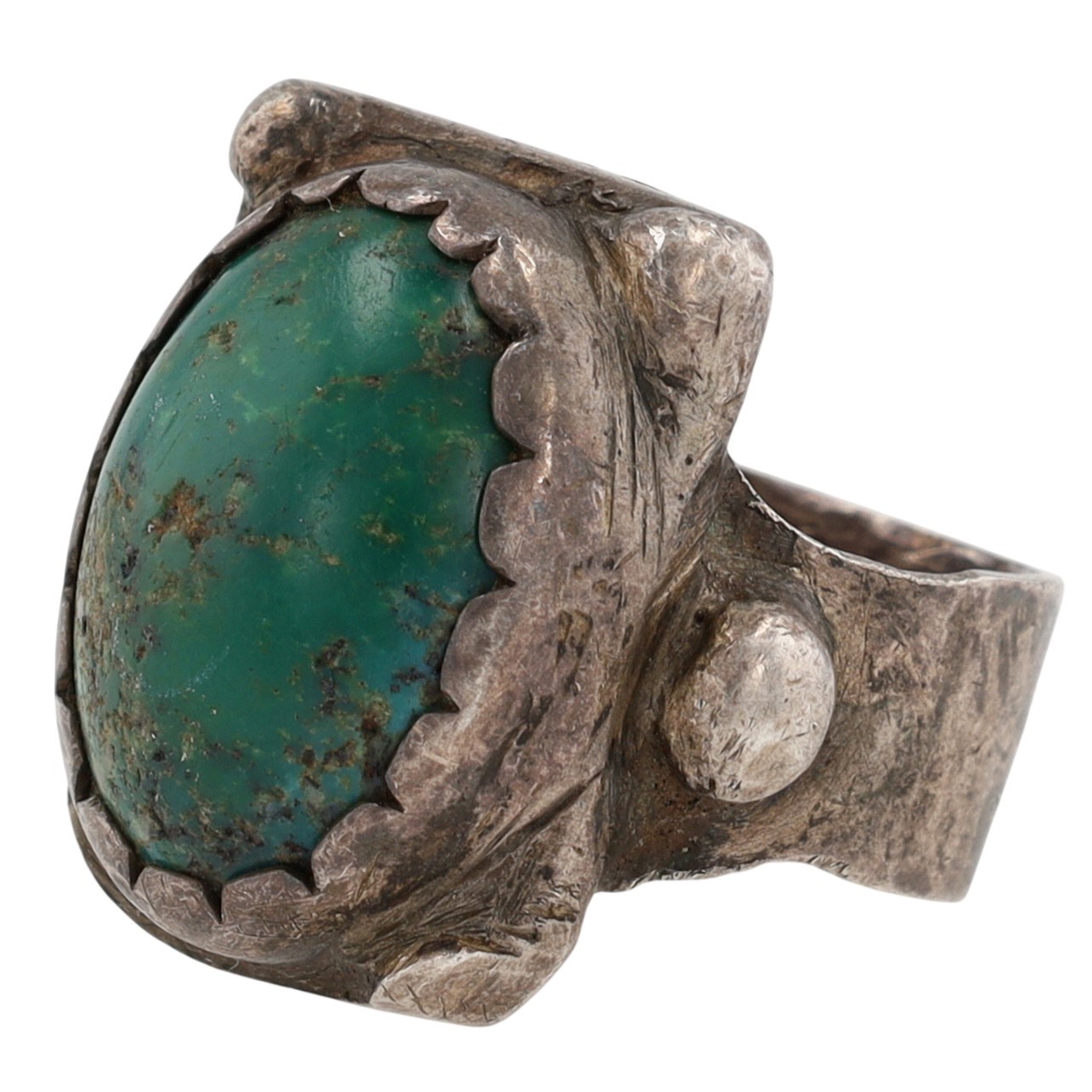 Early Navajo Sterling – Possibly Ingot? – Turquoise Handmade Ring Sz 5.5 – 13g – unable to confirm ring as ingot; however, does show qualities of being an earlier made Navajo ring.