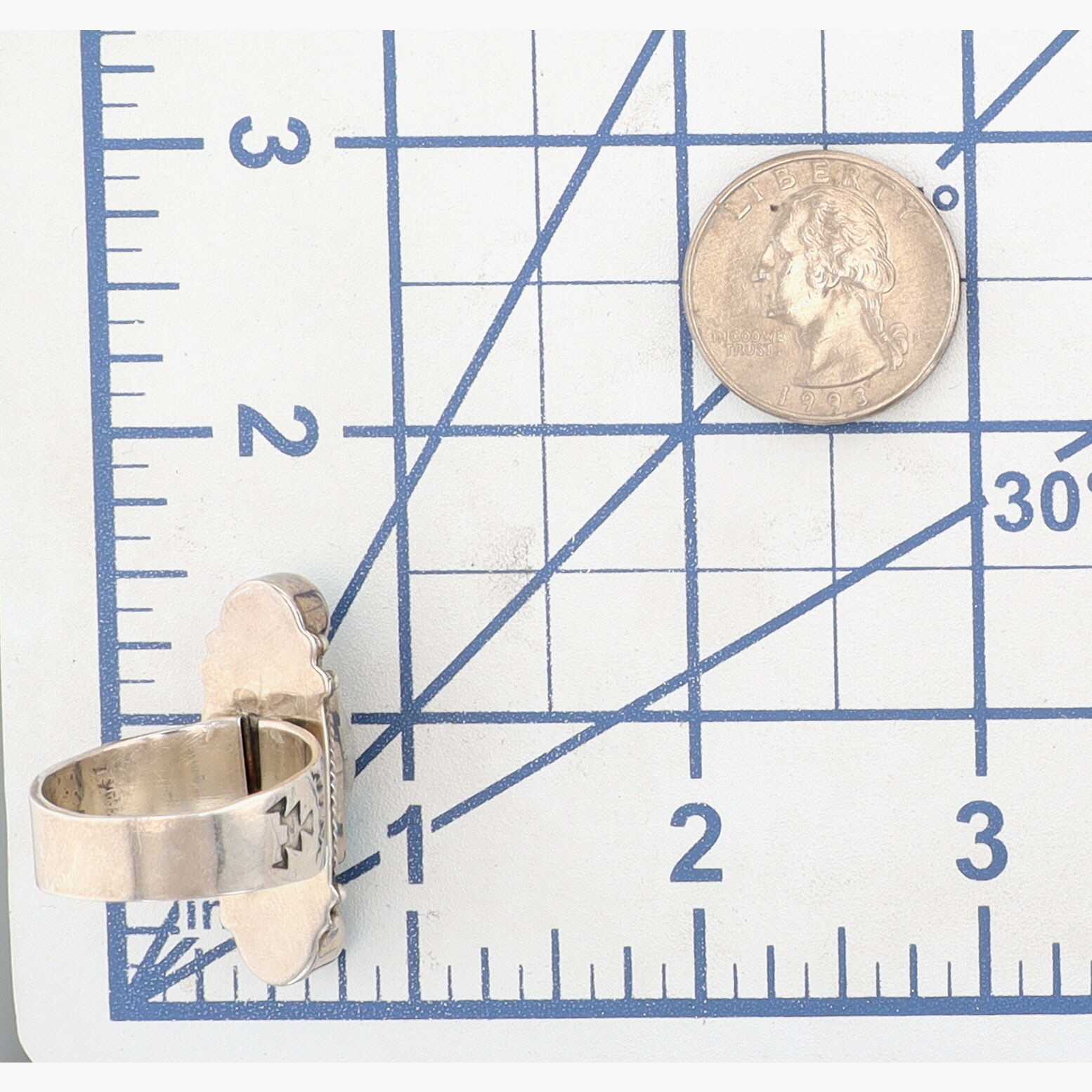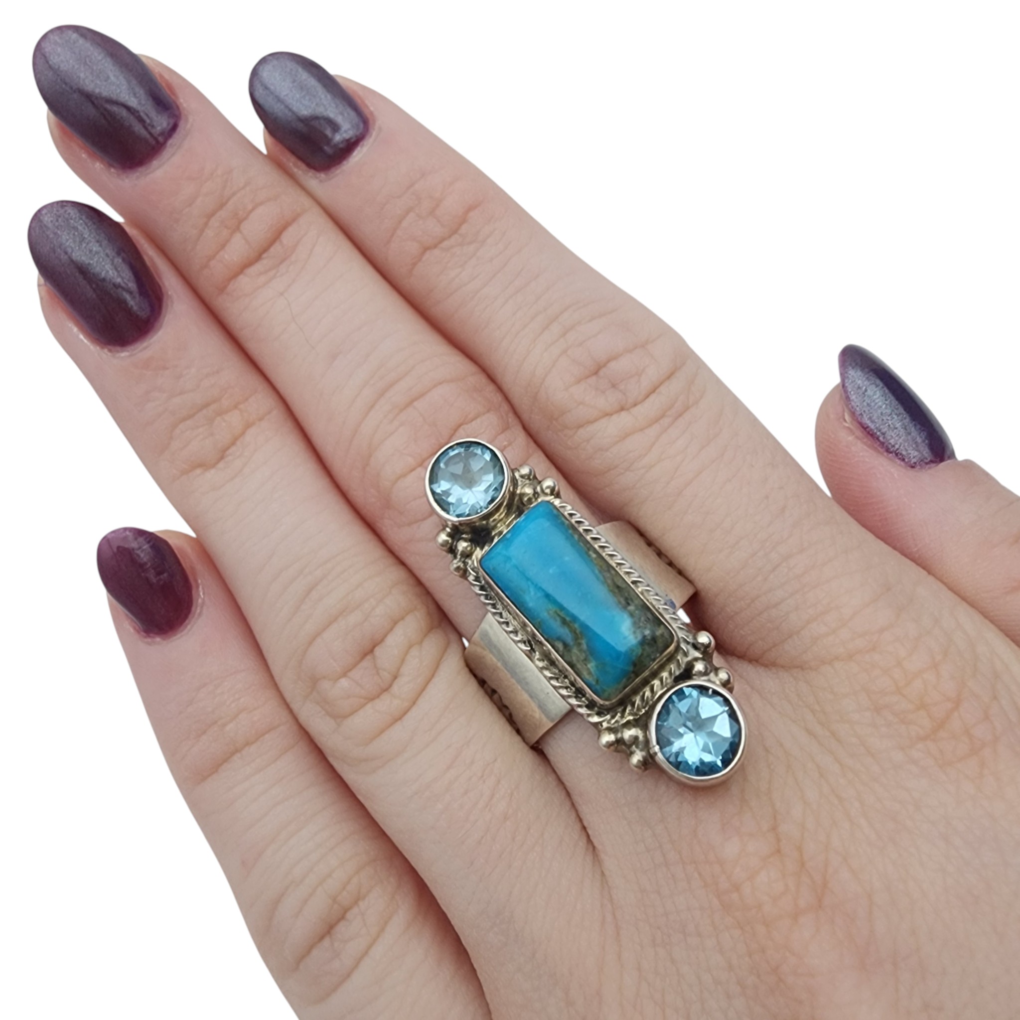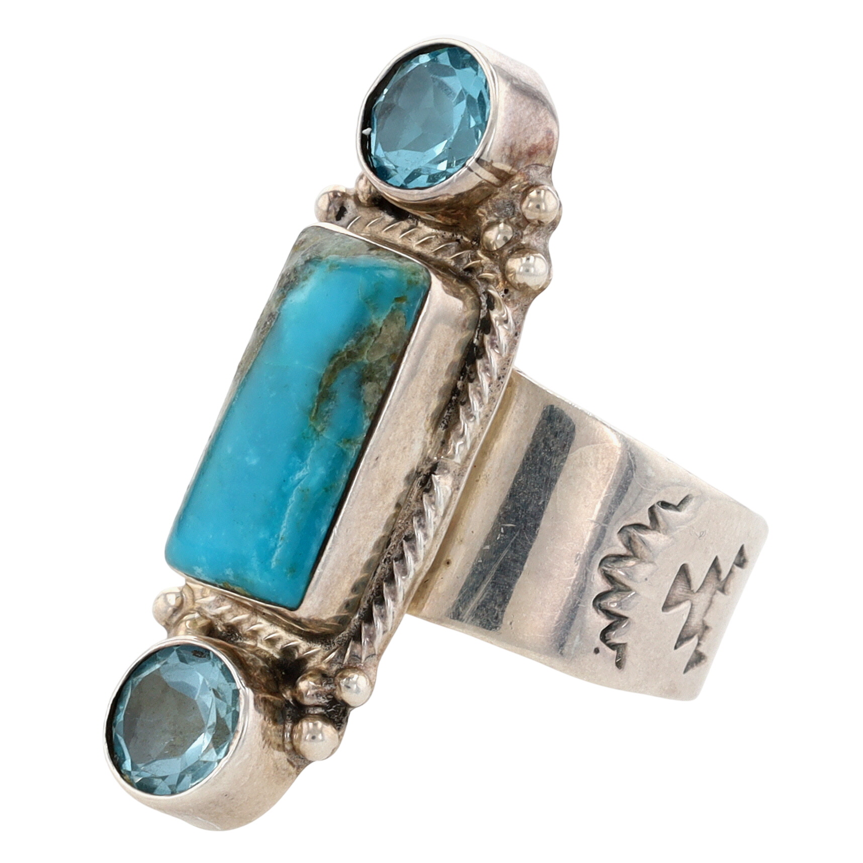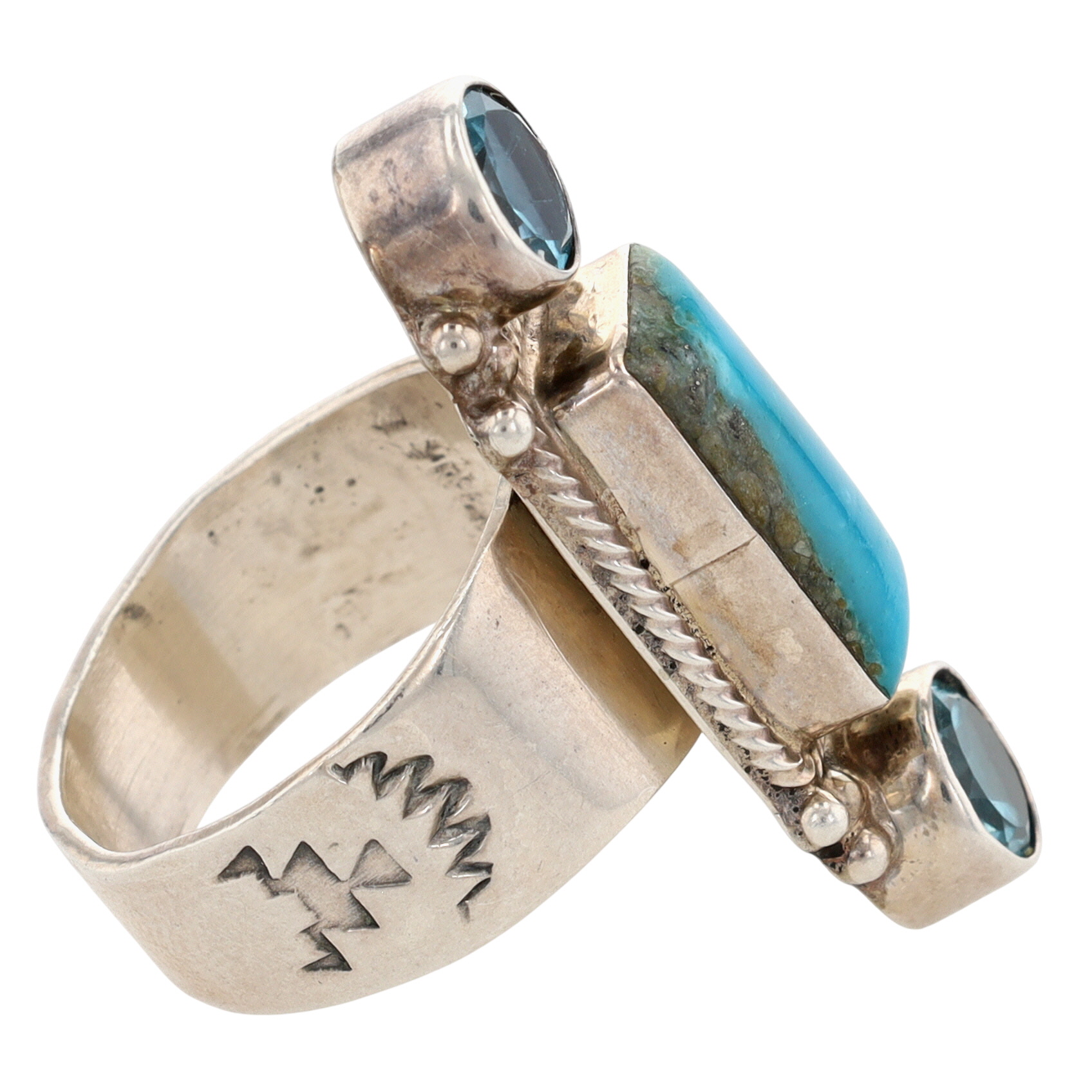Running Bear Turquoise and Topaz Stamped Ring Sz 10 – 12g – note: the running bear mark is obscured by the ring band base