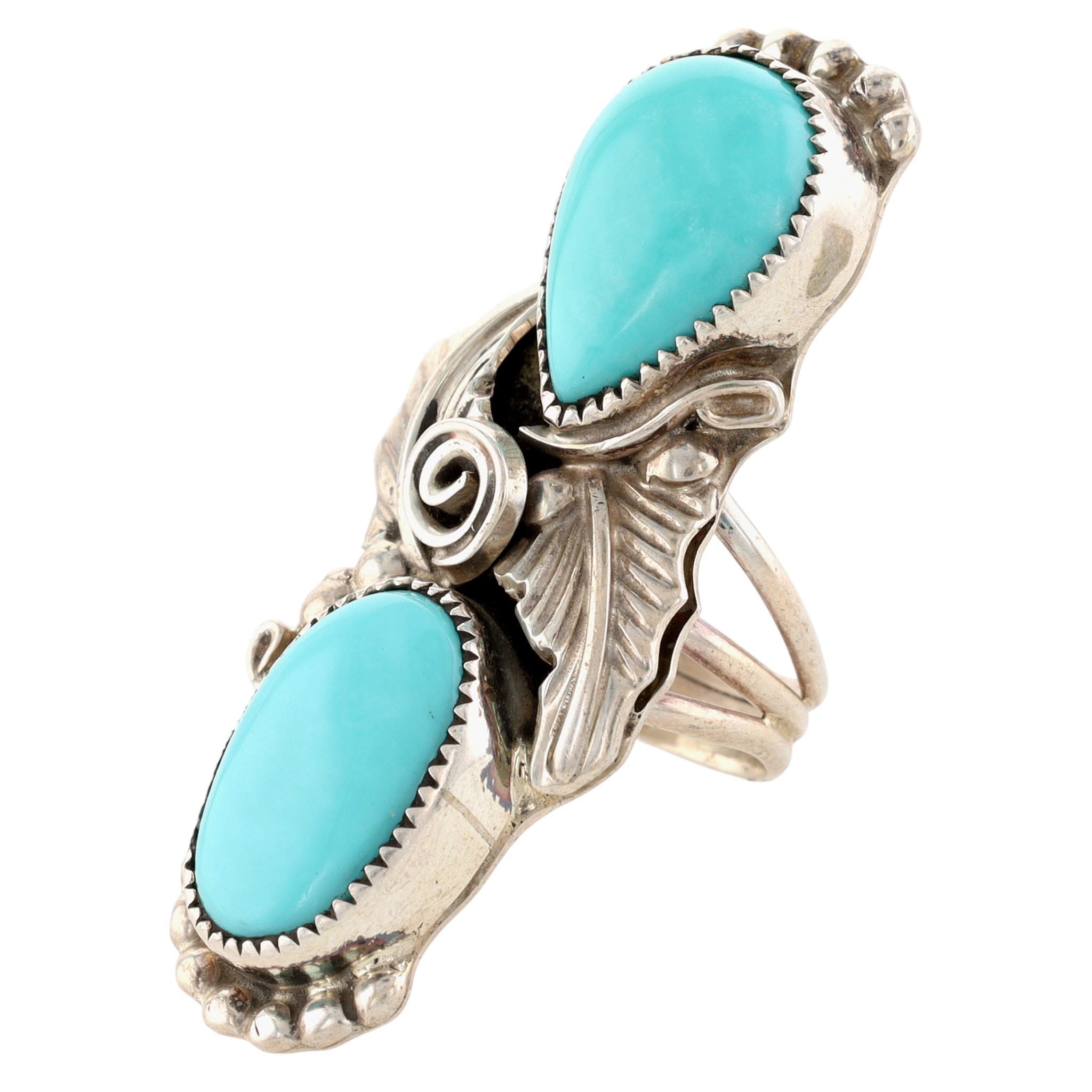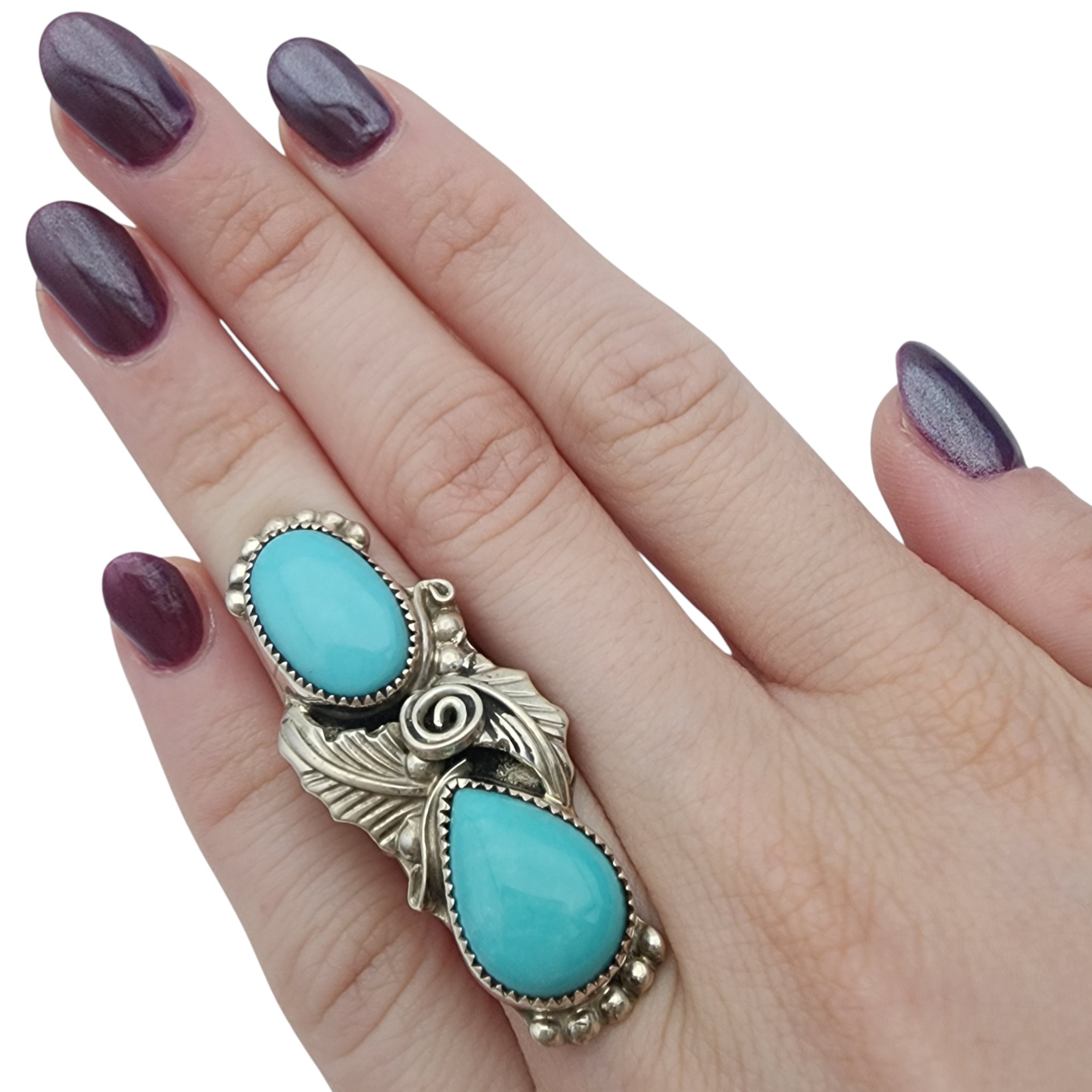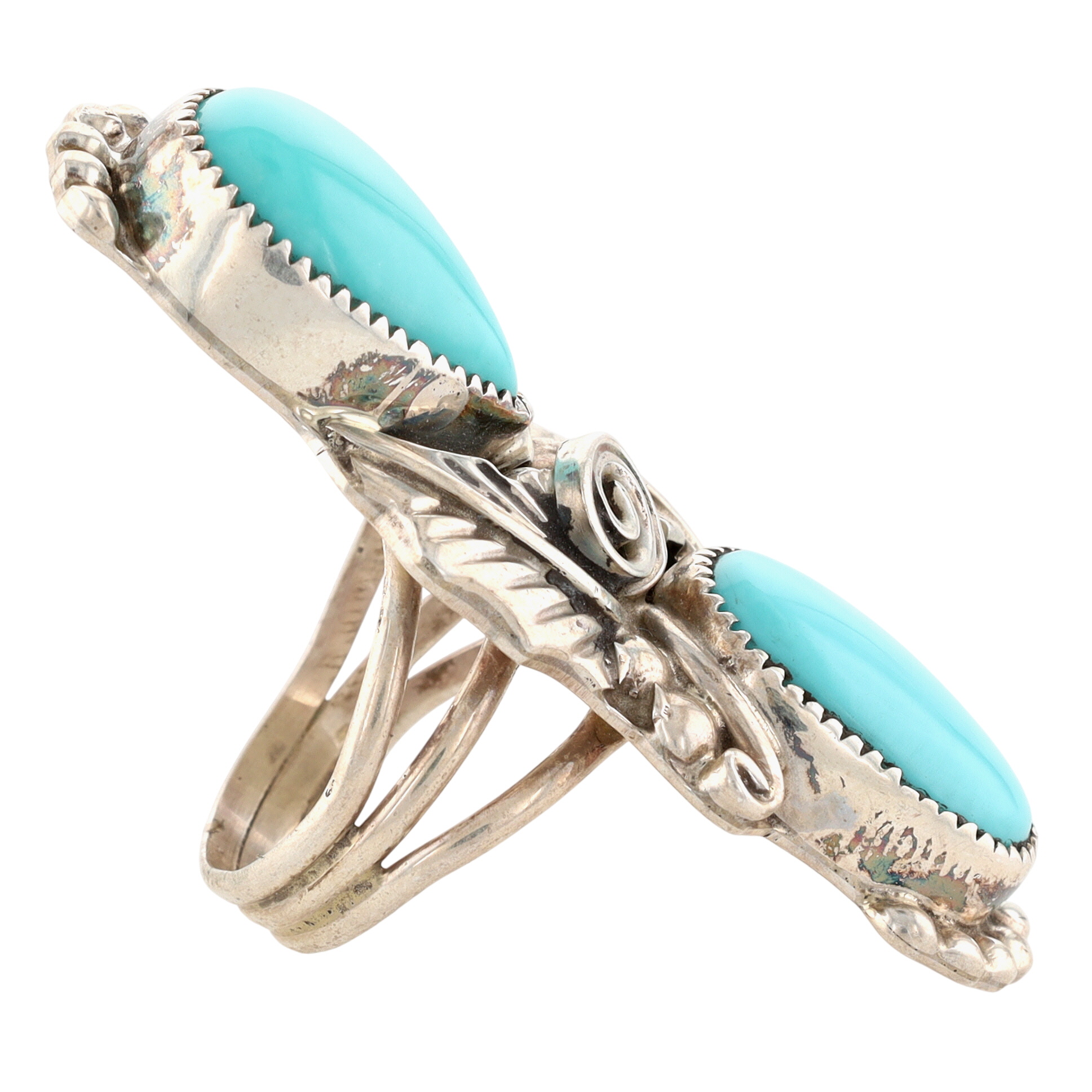 Silver Ray Navajo Sterling Double Turquoise Ring Sz 5