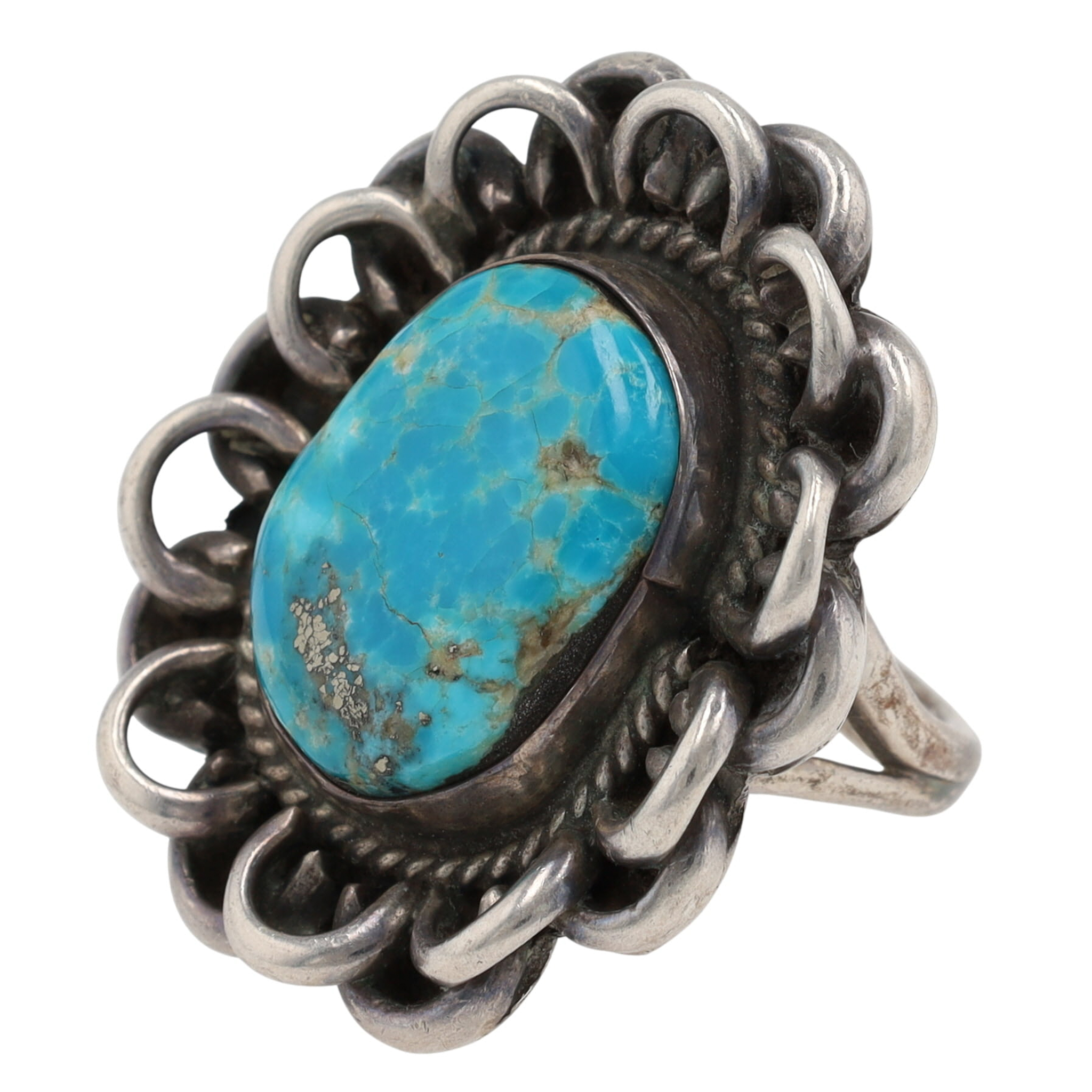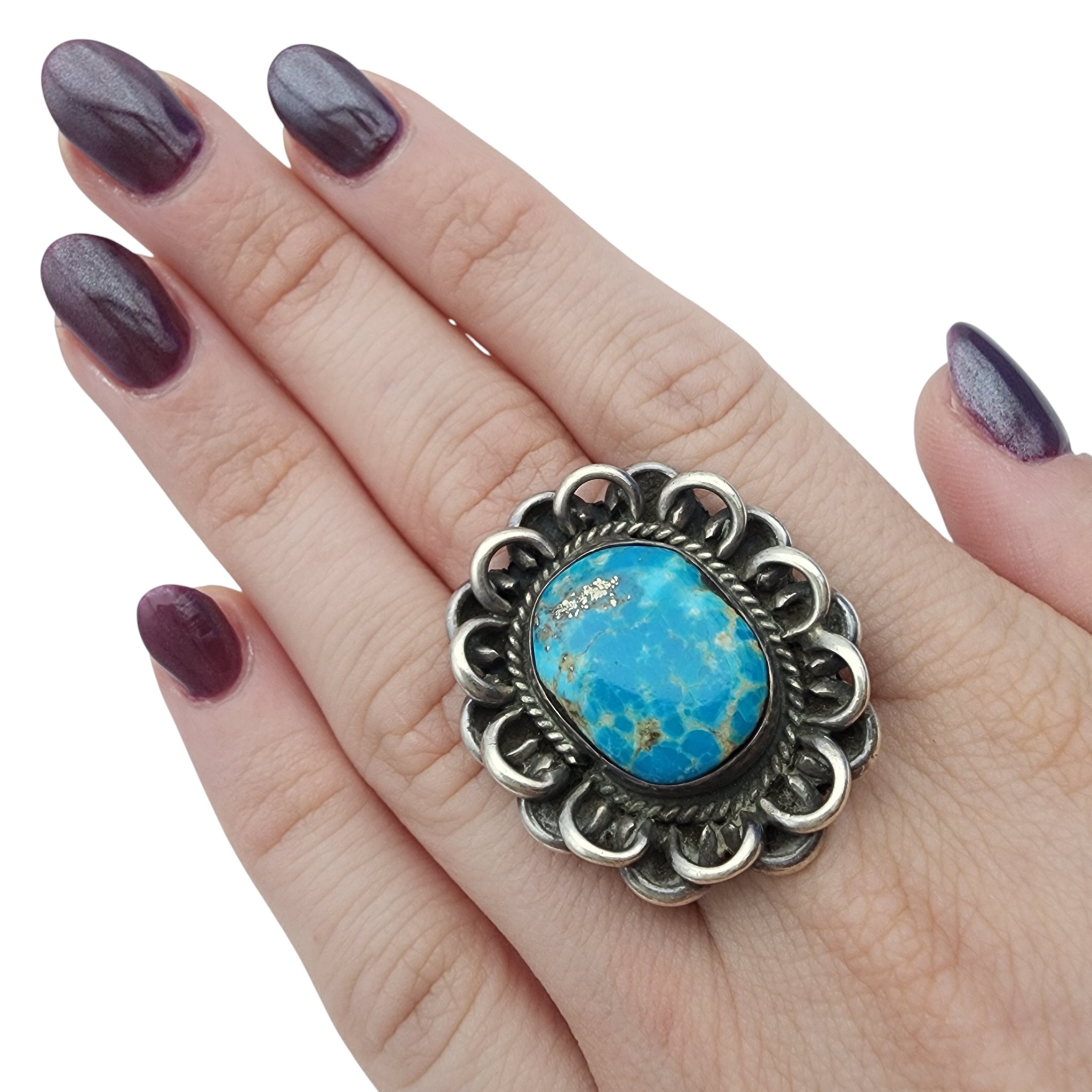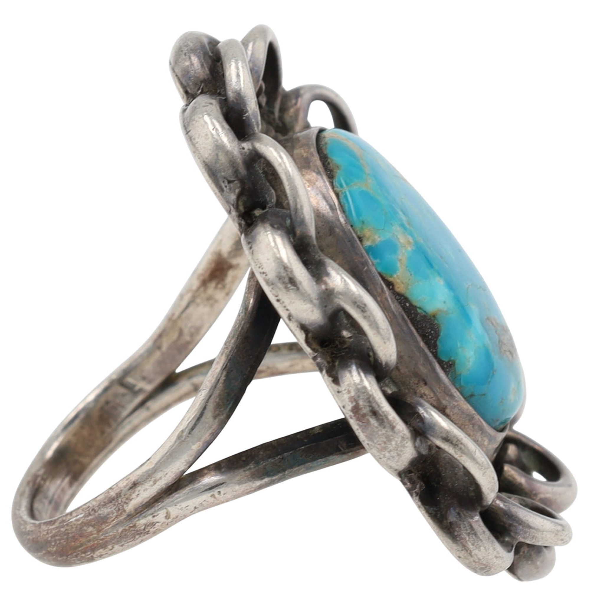 Large, Vintage Navajo Sterling and Turquoise Ring Sz 7 – 15.9g – approx. 1.4″ tall x 1.2″ wide