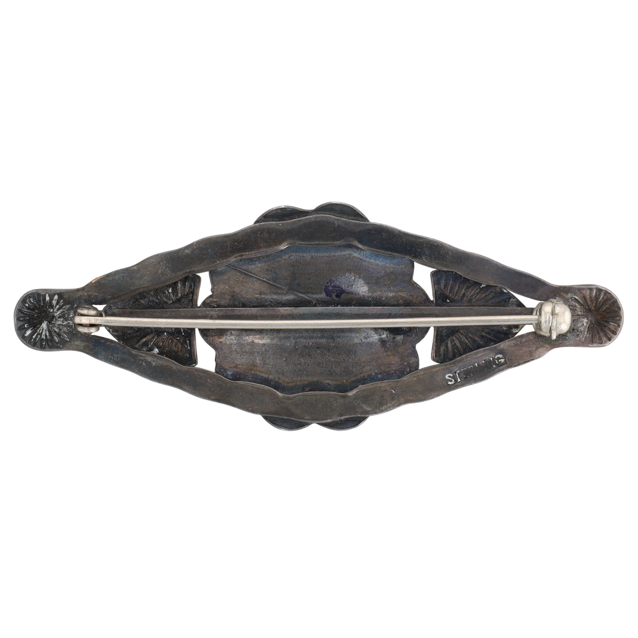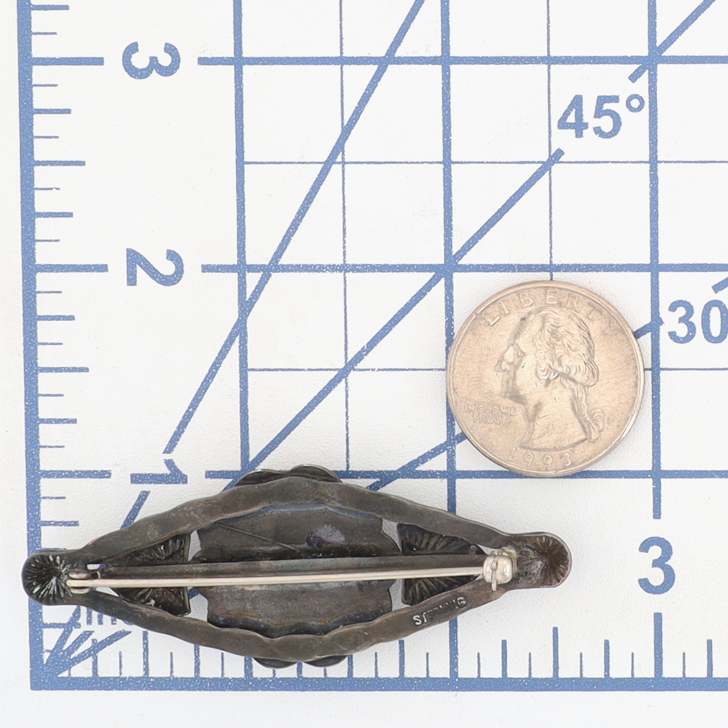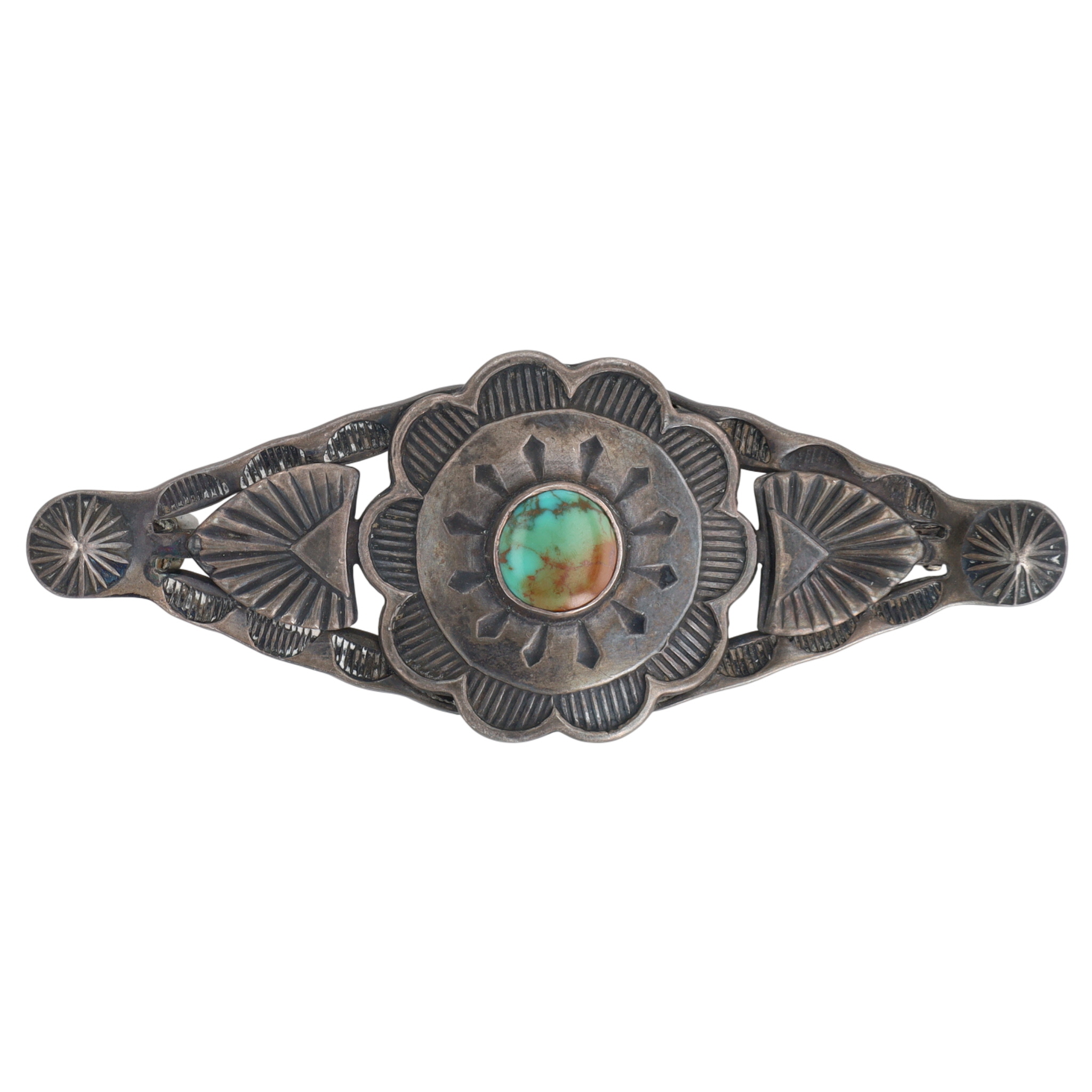 Vintage Fred Harvey Era Navajo Sterling Turquoise Stamped Brooch – 10.7g
