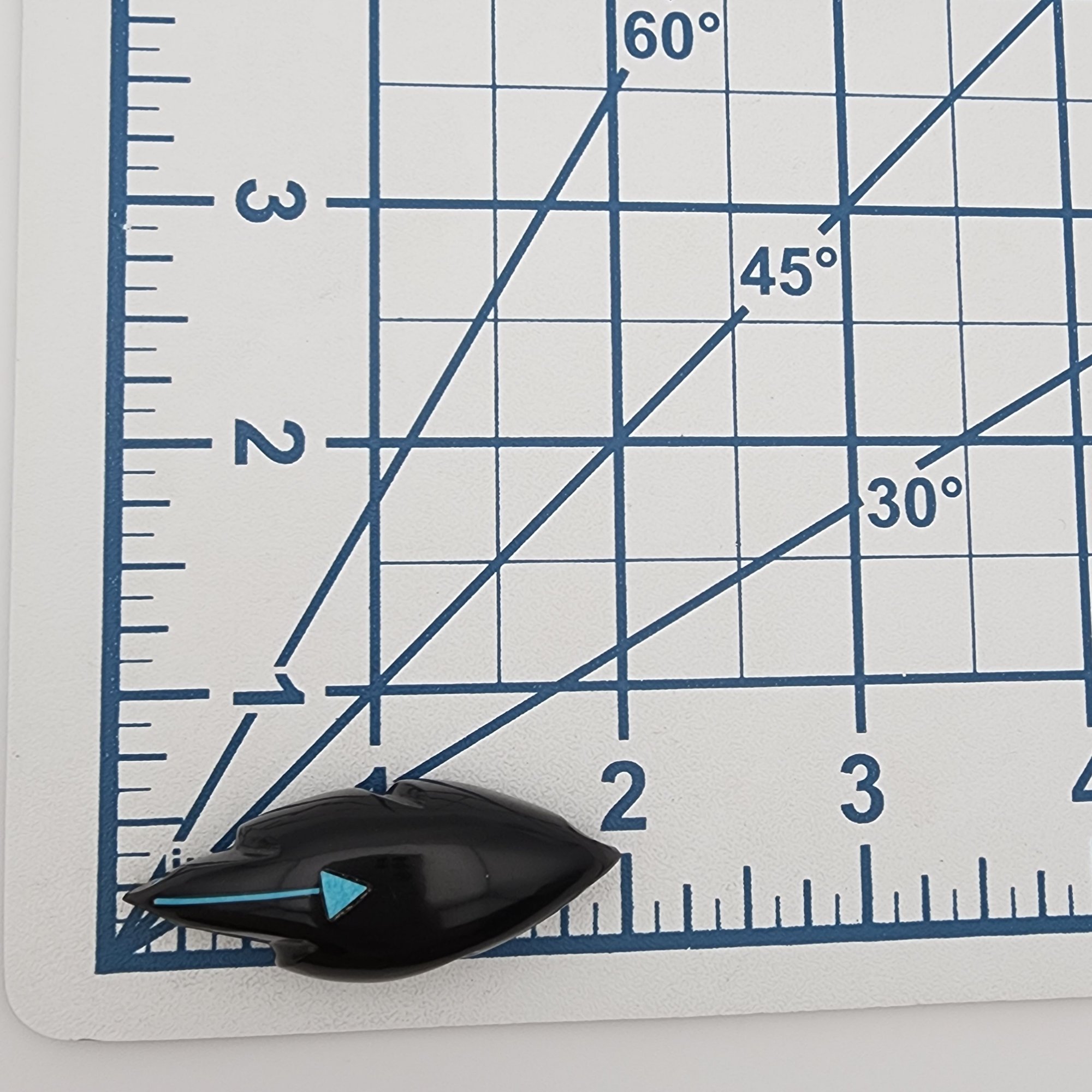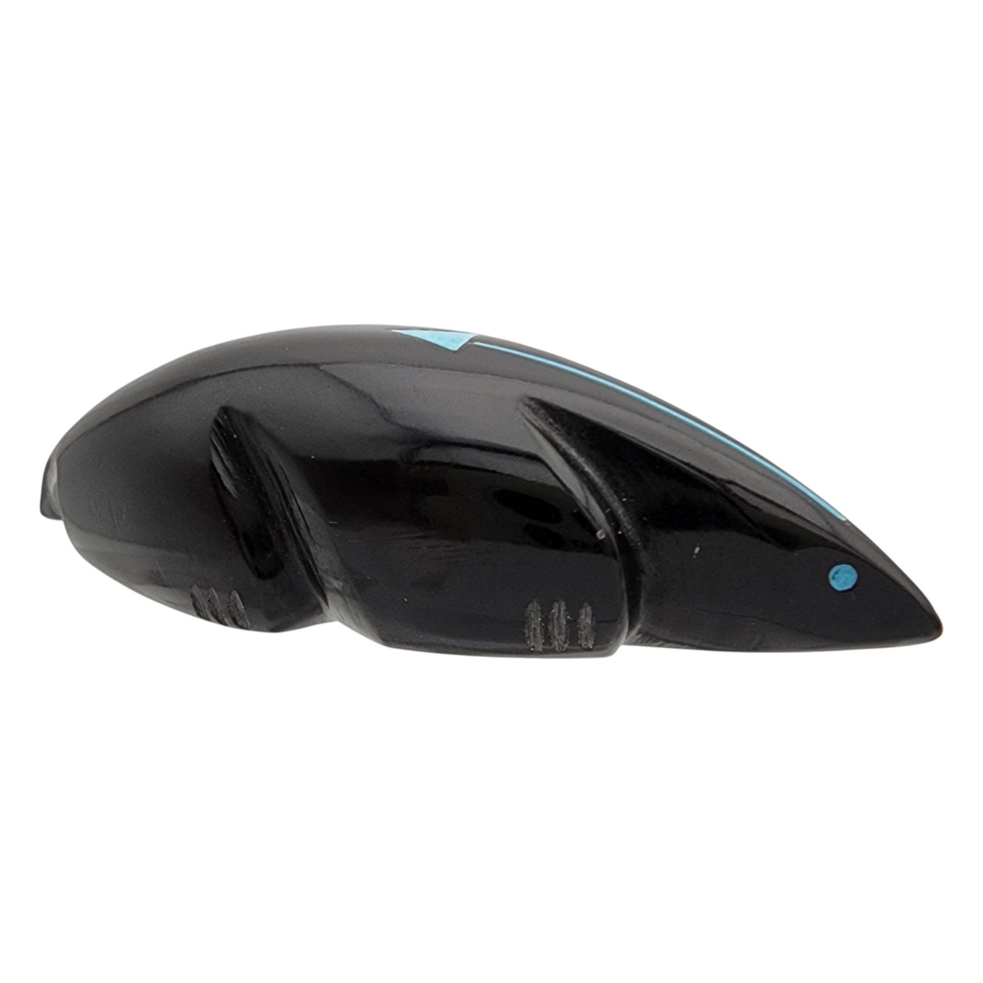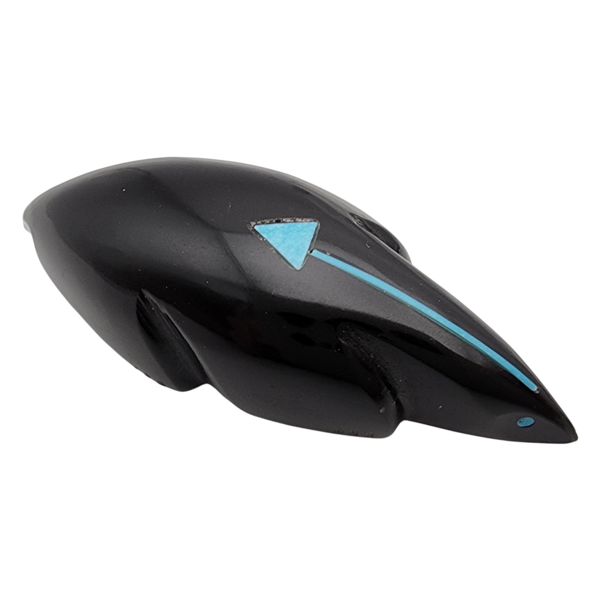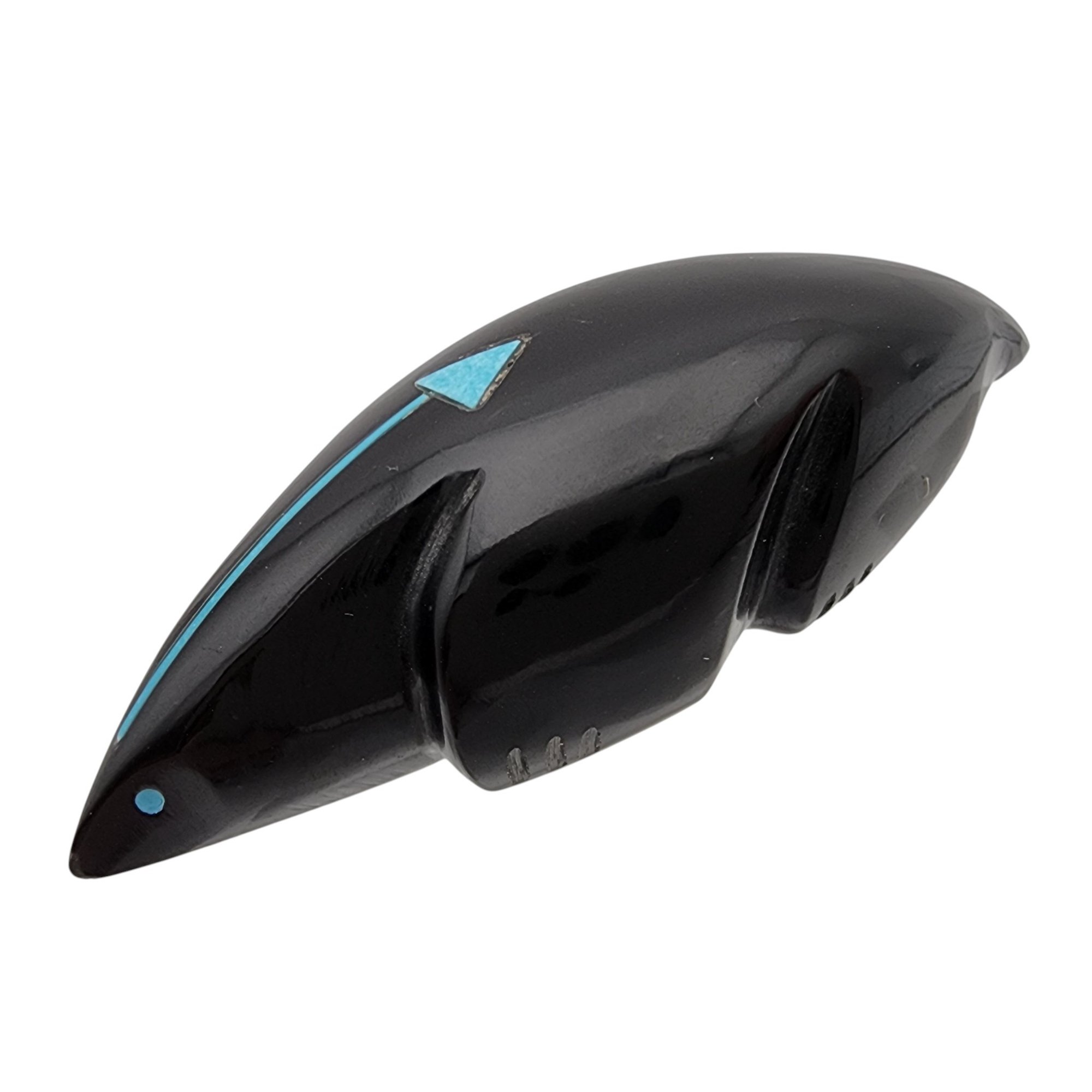 Abby Quam Panteah Zuni Jet and Inlaid Turquoise Heartline Mole Fetish / Approximate Weight: 15g / Approximate measurements: 1.9″ x .7″ / Note 1: Purchased at Canyon Trading Post in August of 1995. Comes with a copy of the receipt from time of purchase. / This item is part of an estate collection of Native American fetishes, pottery, baskets, and rugs acquired by a collector who traveled throughout the Southwest between the 1970s and early 2000s. Many pieces were purchased from trading posts in Arizona and New Mexico. Artist attributions are based on available documentation, including receipts, tags, stickers, and signatures where present. Select items include original or copied receipts and original tags identifying artists pricing at the time of purchase, primarily from the 1970s through the 1990s. Please review our non-jewelry shipping information and reach out with any questions prior to bidding. Thank you!