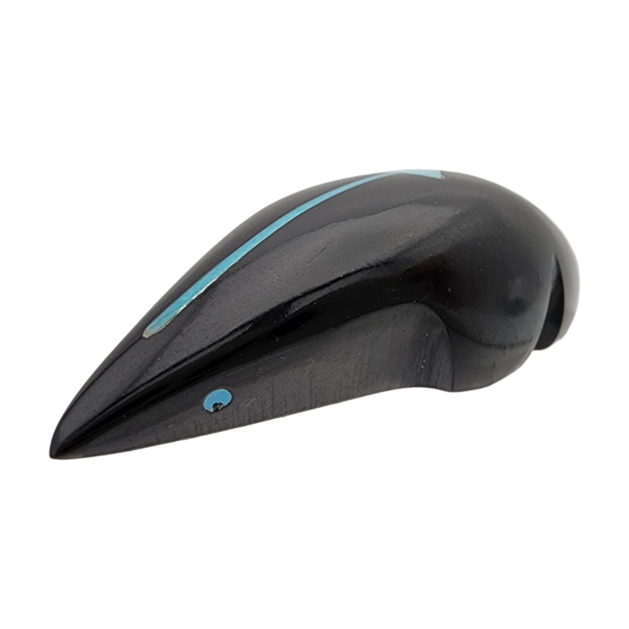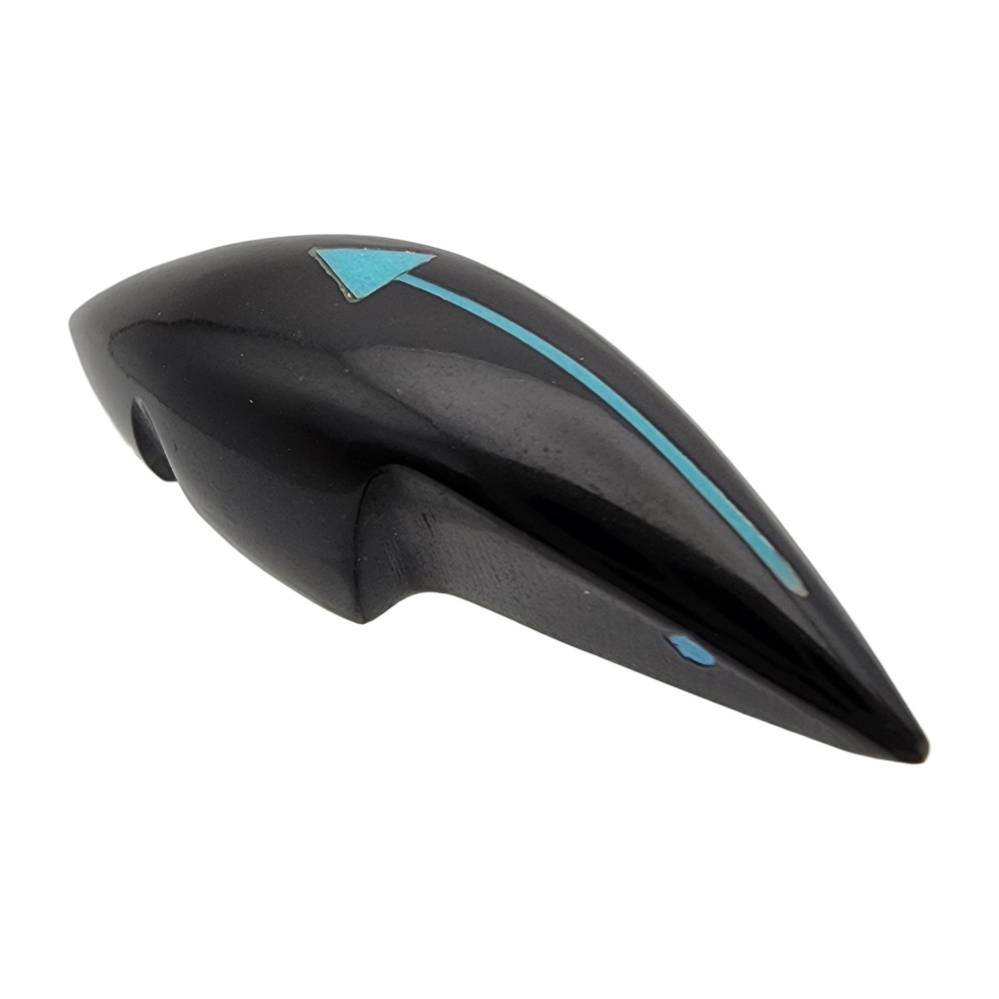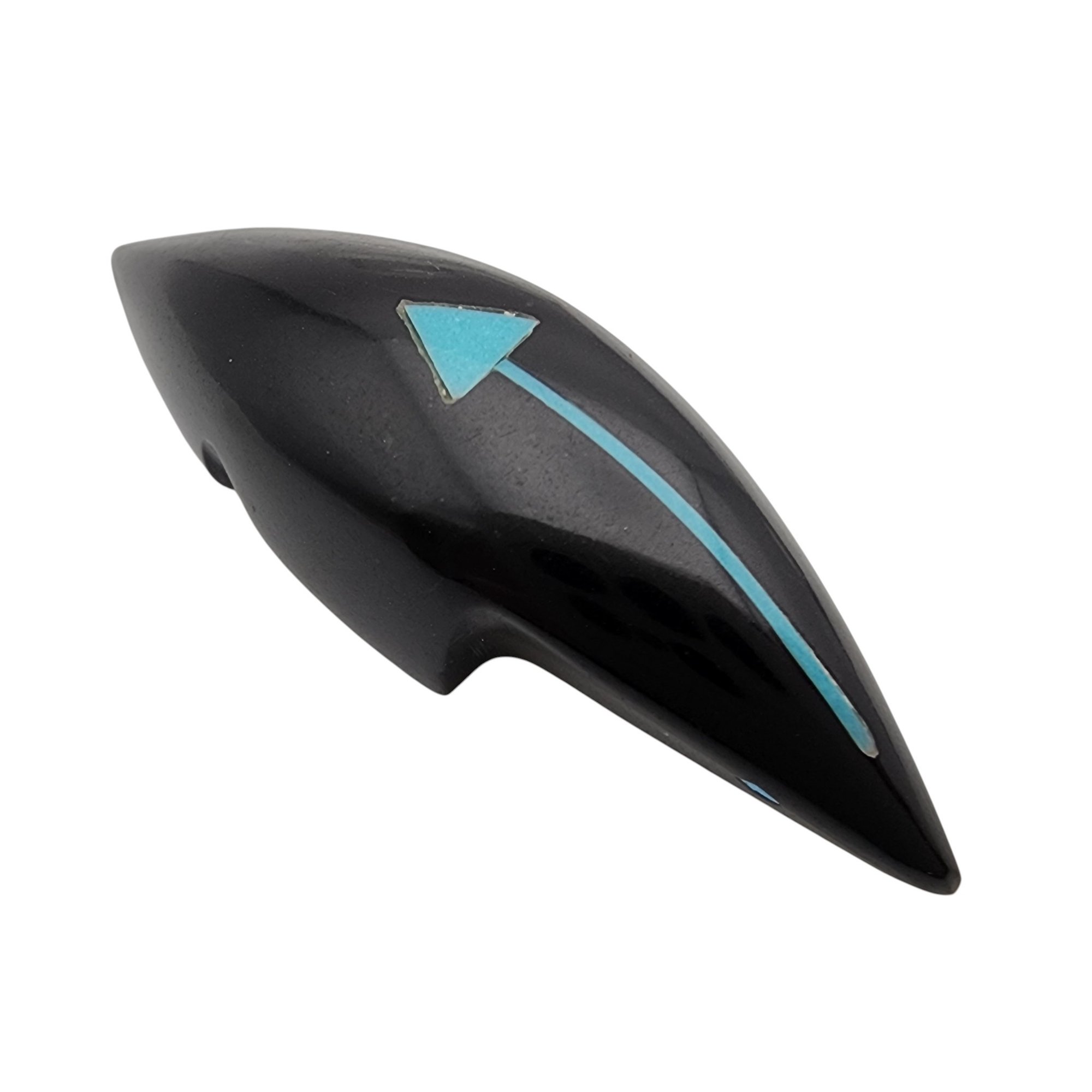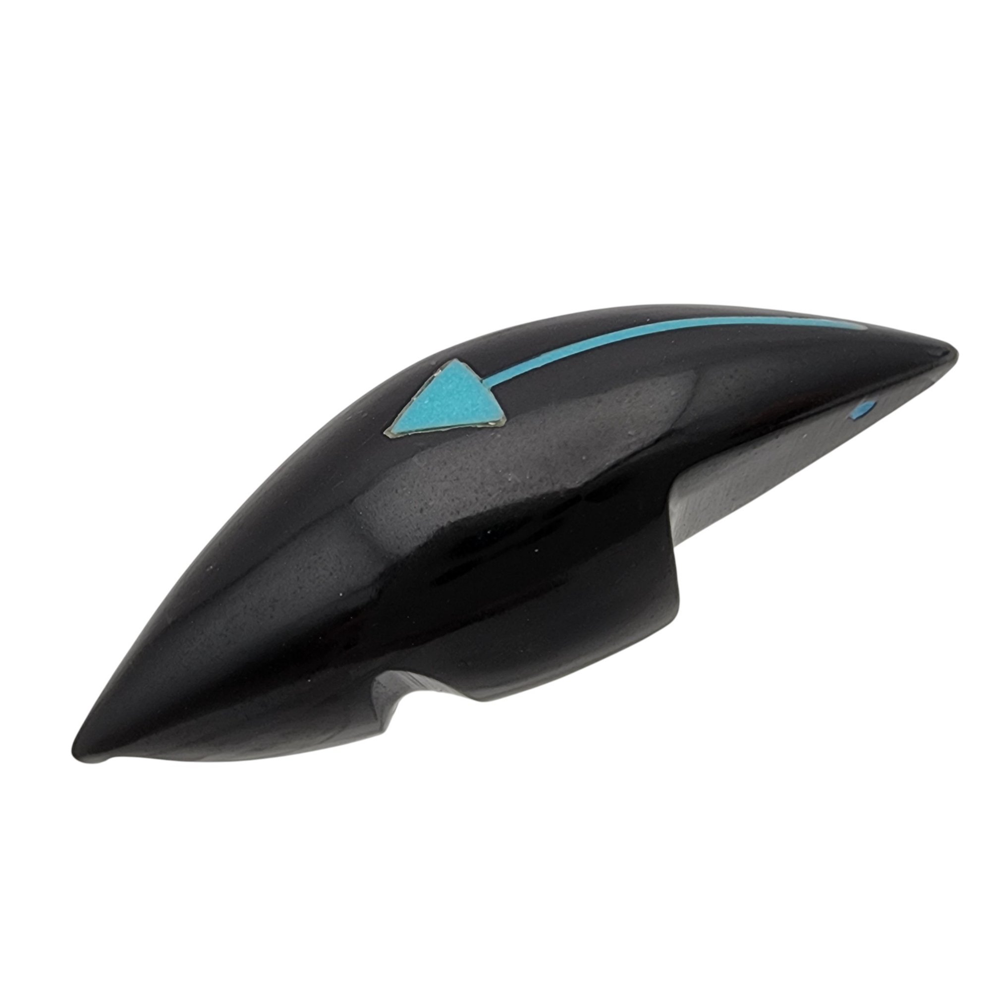 Abby Quam Panteah Zuni Jet and Inlaid Turquoise Heartline Mole Fetish / Approximate Weight: 8g / Approximate measurements: 1.66″ x .5″ / Note 1: Purchased at Canyon Trading Post in August of 1994. Comes with copy of the original receipt from time of purchase. / This item is part of an estate collection of Native American fetishes, pottery, baskets, and rugs acquired by a collector who traveled throughout the Southwest between the 1970s and early 2000s. Many pieces were purchased from trading posts in Arizona and New Mexico. Artist attributions are based on available documentation, including receipts, tags, stickers, and signatures where present. Select items include original or copied receipts and original tags identifying artists pricing at the time of purchase, primarily from the 1970s through the 1990s. Please review our non-jewelry shipping information and reach out with any questions prior to bidding. Thank you!