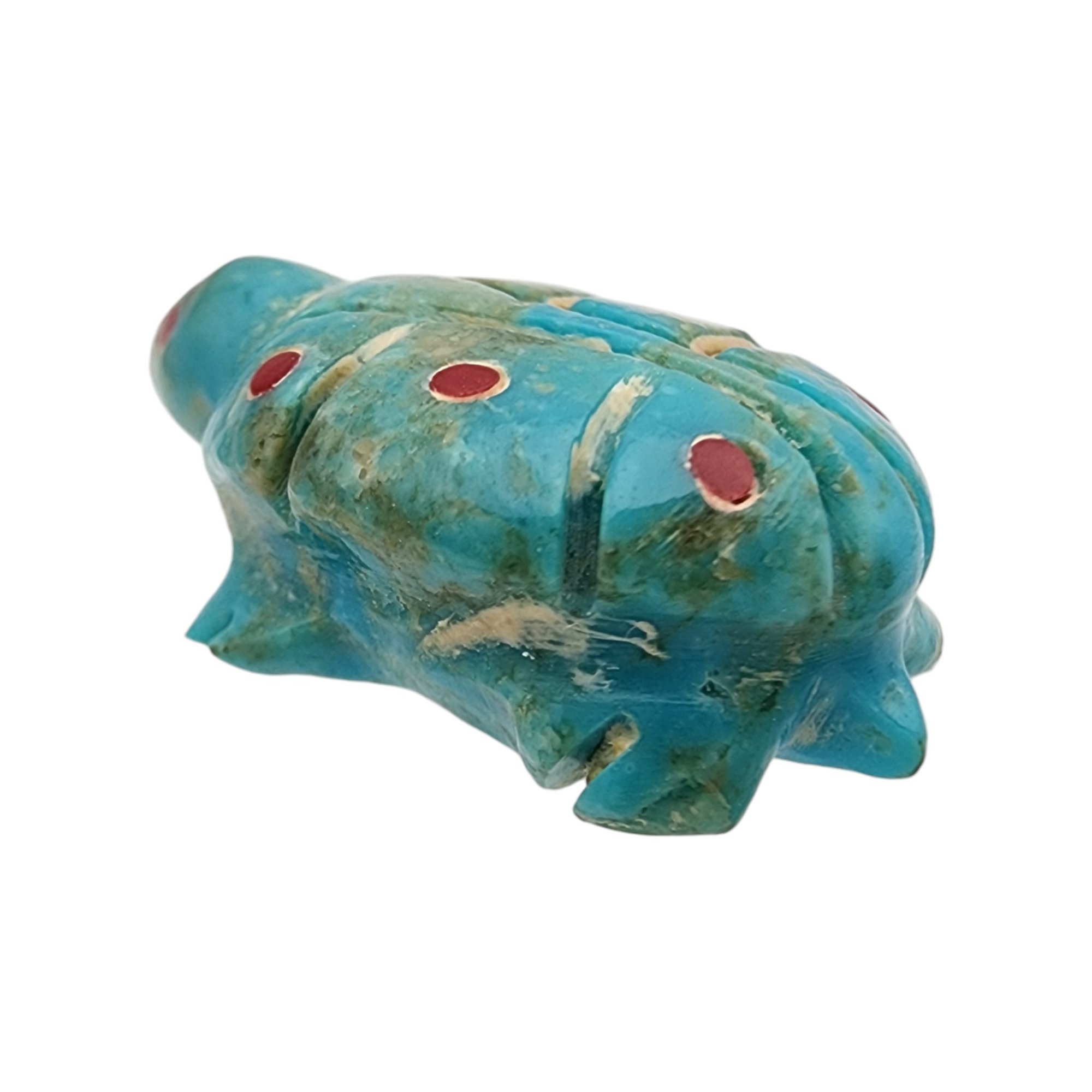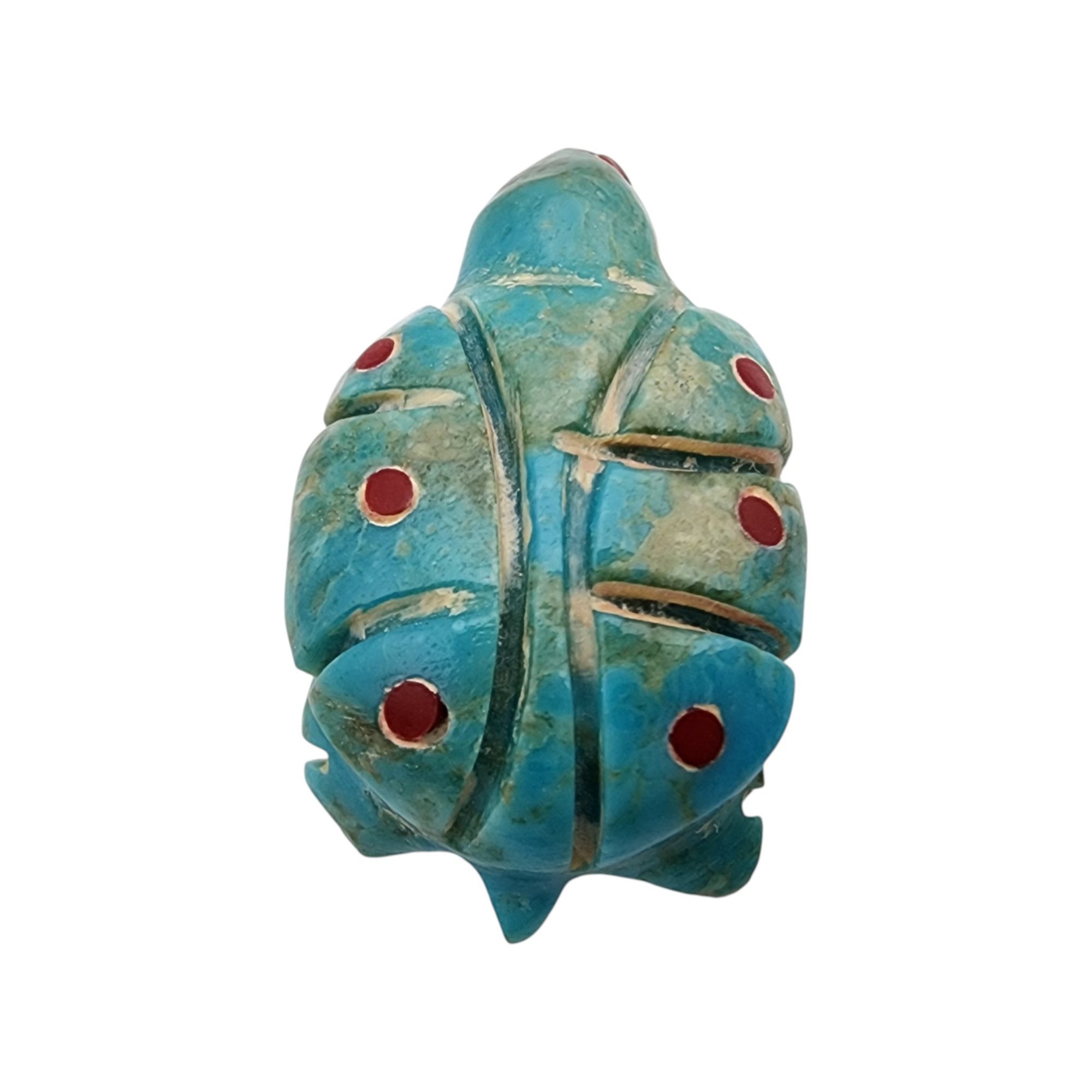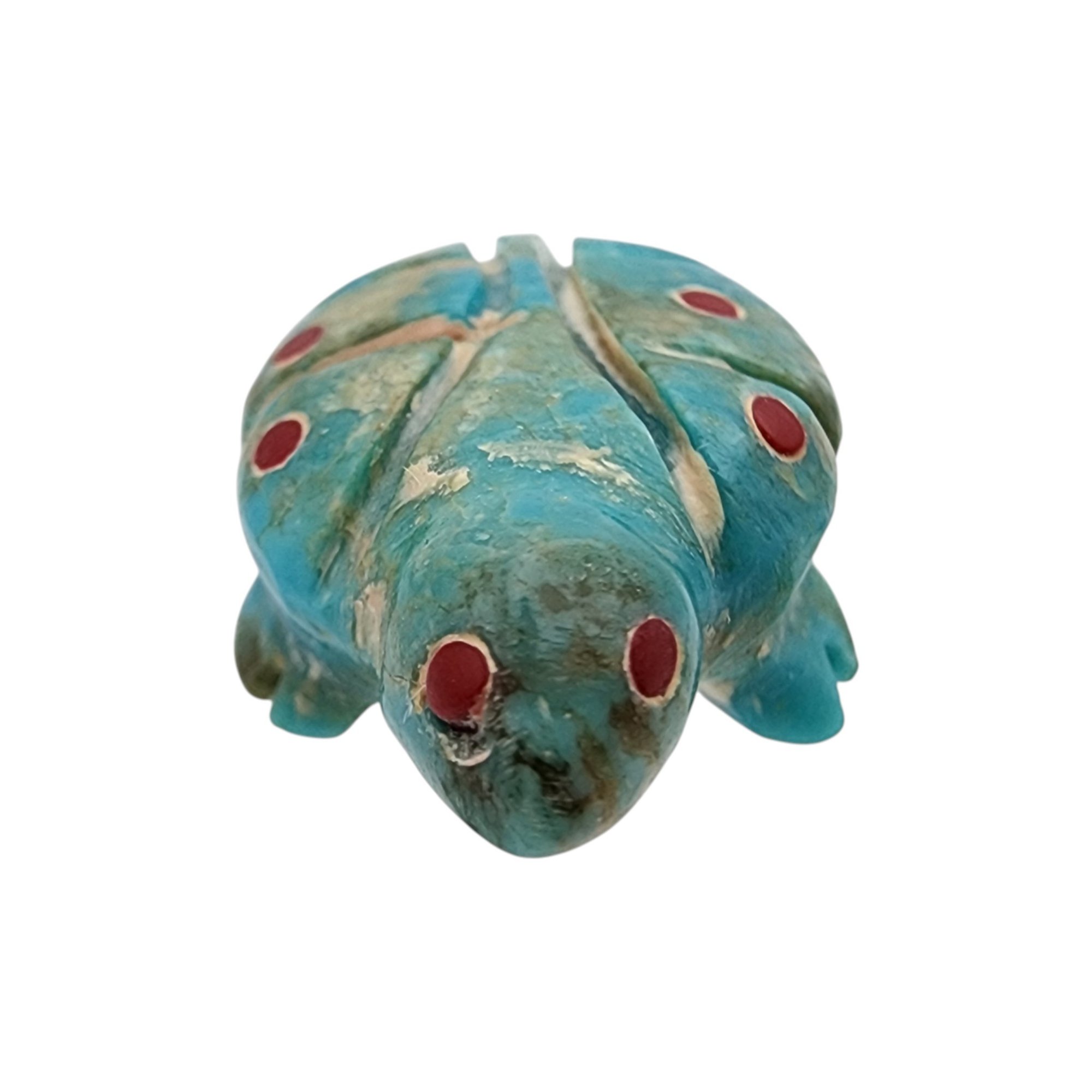 Leroy Ukestine Zuni Turquoise and Inlaid Coral Turtle Fetish / Approximate Weight: 2.6g / Approximate measurements: .9″ x .5″ / Note 1: Purchased at Canyon Trading Post in 1994. Comes with copy of original receipt at time of purchase. / This item is part of an estate collection of Native American fetishes, pottery, baskets, and rugs acquired by a collector who traveled throughout the Southwest between the 1970s and early 2000s. Many pieces were purchased from trading posts in Arizona and New Mexico. Artist attributions are based on available documentation, including receipts, tags, stickers, and signatures where present. Select items include original or copied receipts and original tags identifying artists pricing at the time of purchase, primarily from the 1970s through the 1990s. Please review our non-jewelry shipping information and reach out with any questions prior to bidding. Thank you!