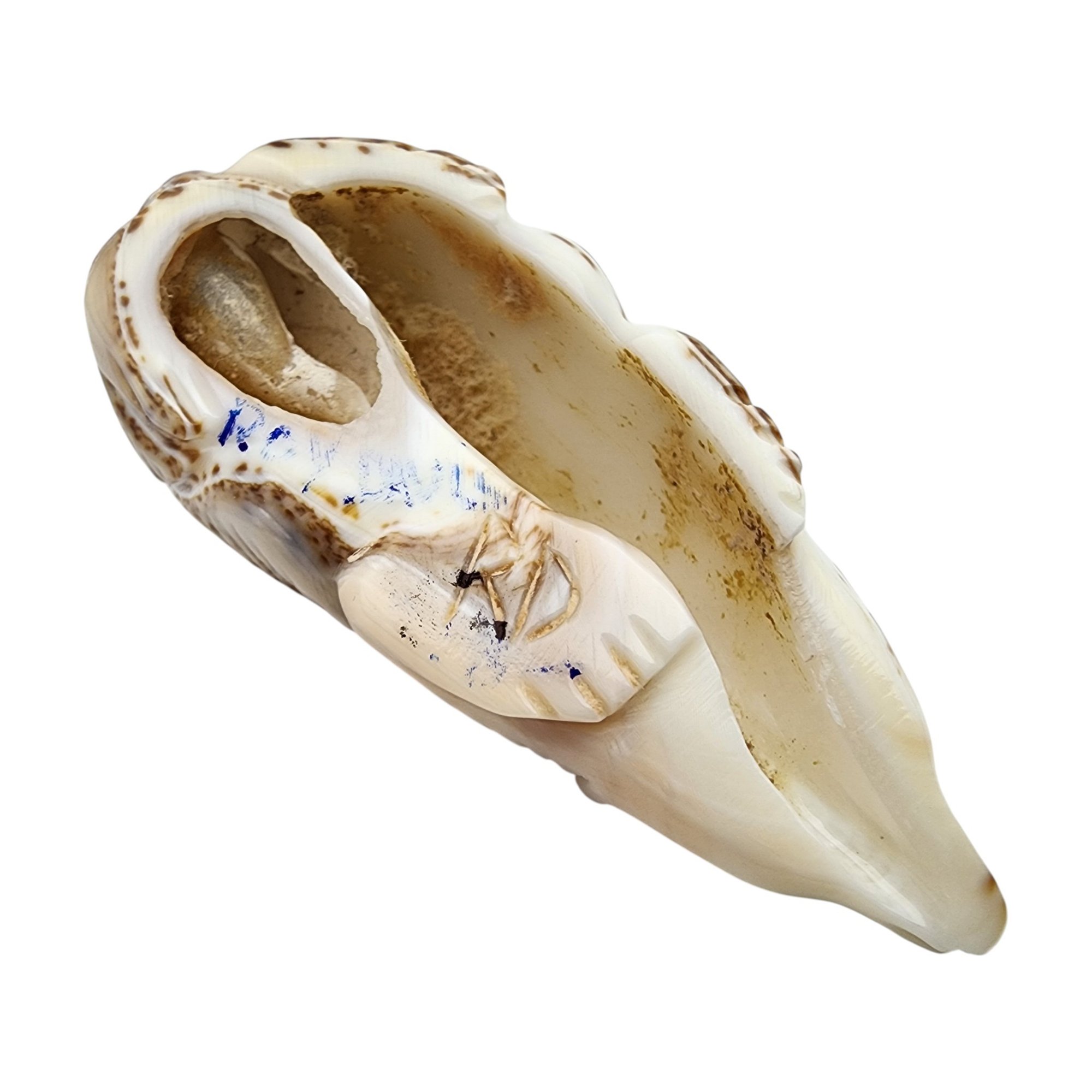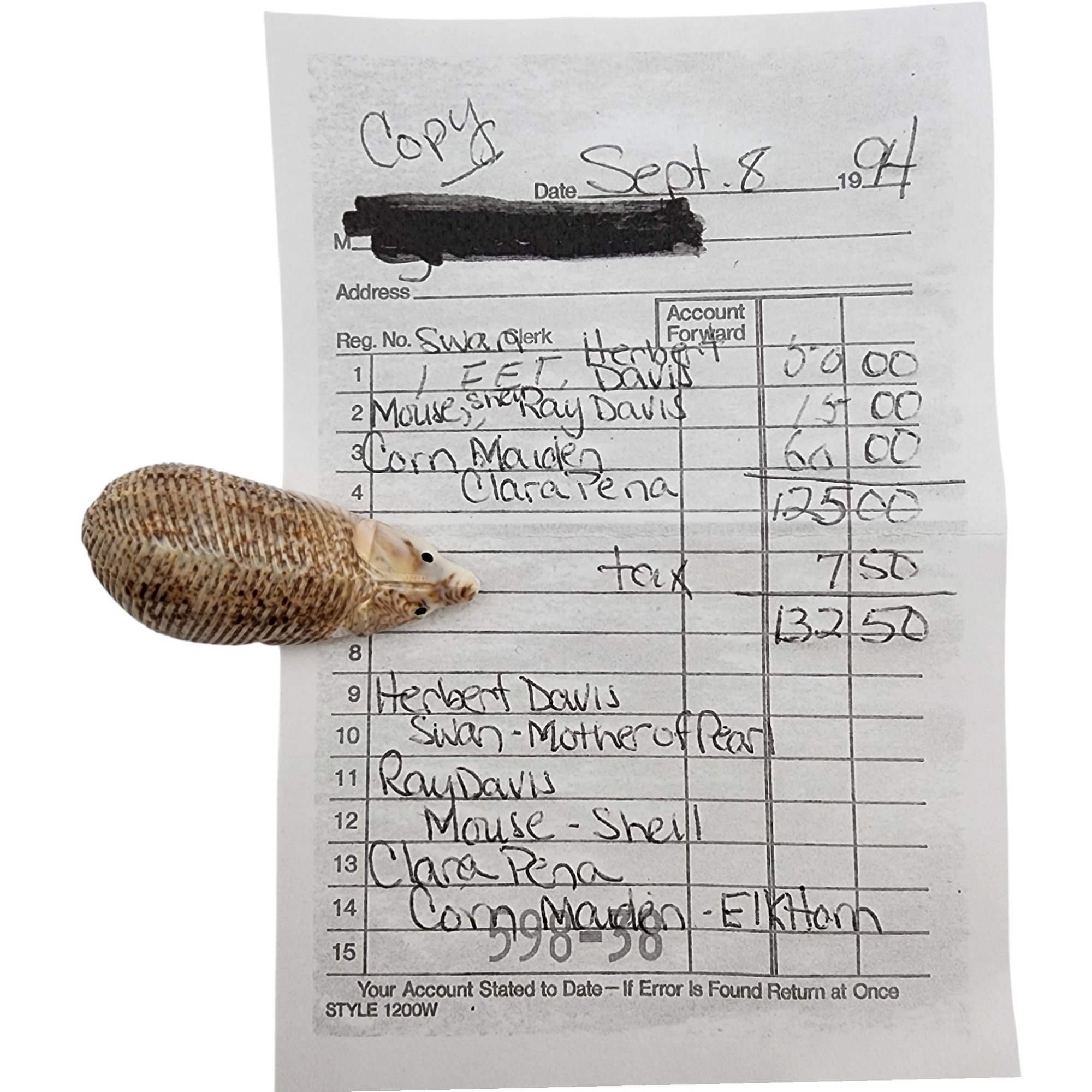 Ray Davis Navajo Shell Mouse Fetish / Approximate Weight: 13.1g / Approximate measurements: 2″x .9″ x .6″ / Note 1: Purchased at Canyon Trading Post in 1994. Comes with copy of the original receipt and original artist/price sticker at time of purchase. / This item is part of an estate collection of Native American fetishes, pottery, baskets, and rugs acquired by a collector who traveled throughout the Southwest between the 1970s and early 2000s. Many pieces were purchased from trading posts in Arizona and New Mexico. Artist attributions are based on available documentation, including receipts, tags, stickers, and signatures where present. Select items include original or copied receipts and original tags identifying artists pricing at the time of purchase, primarily from the 1970s through the 1990s. Please review our non-jewelry shipping information and reach out with any questions prior to bidding. Thank you!