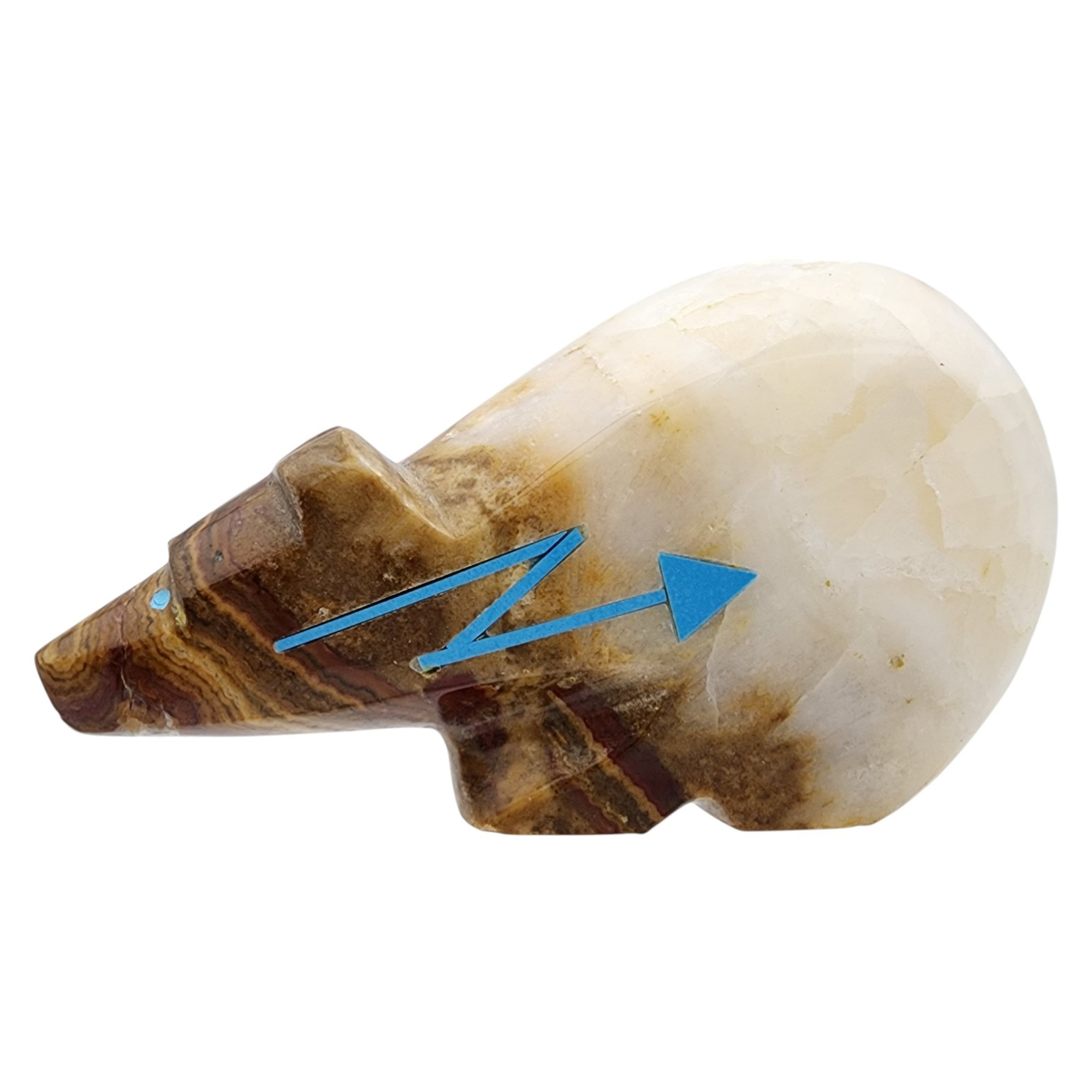 Clayton & Abby Panteah Zuni Banded Onyx and Inlaid Turquoise Heartline Bear Fetish