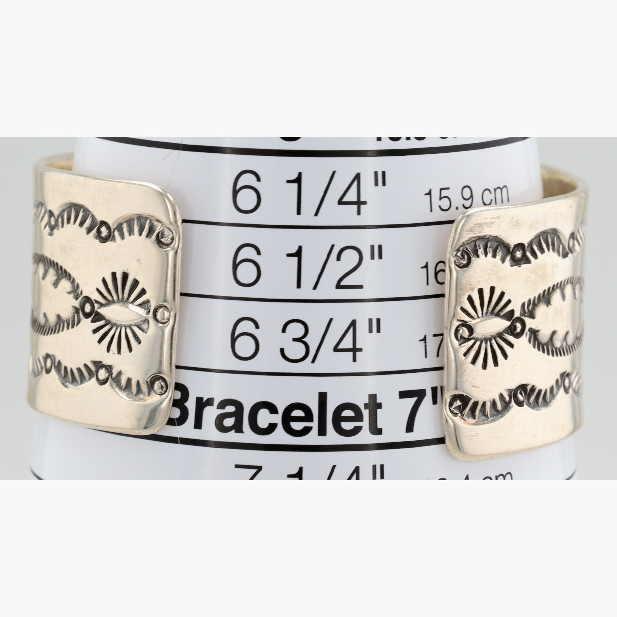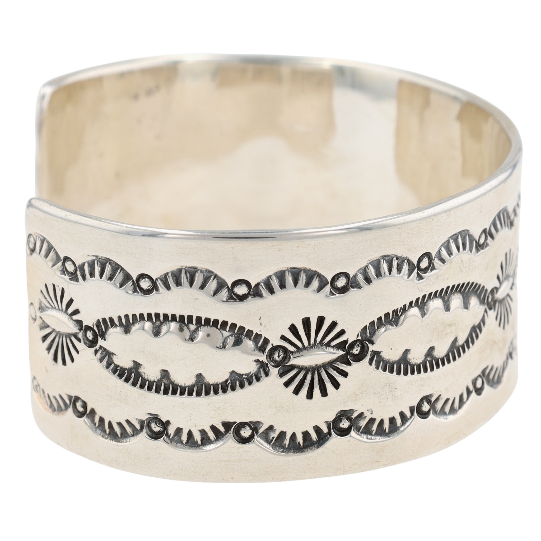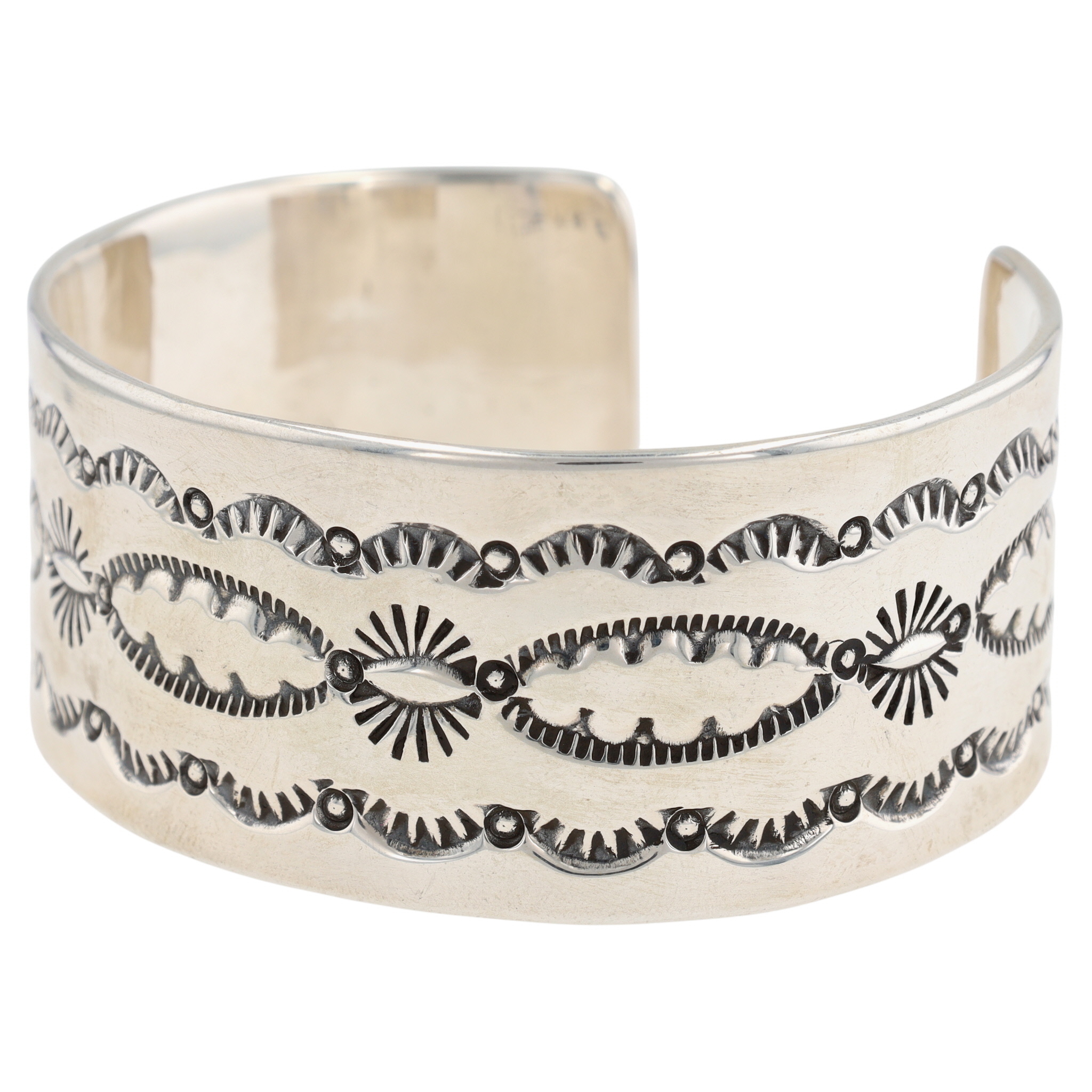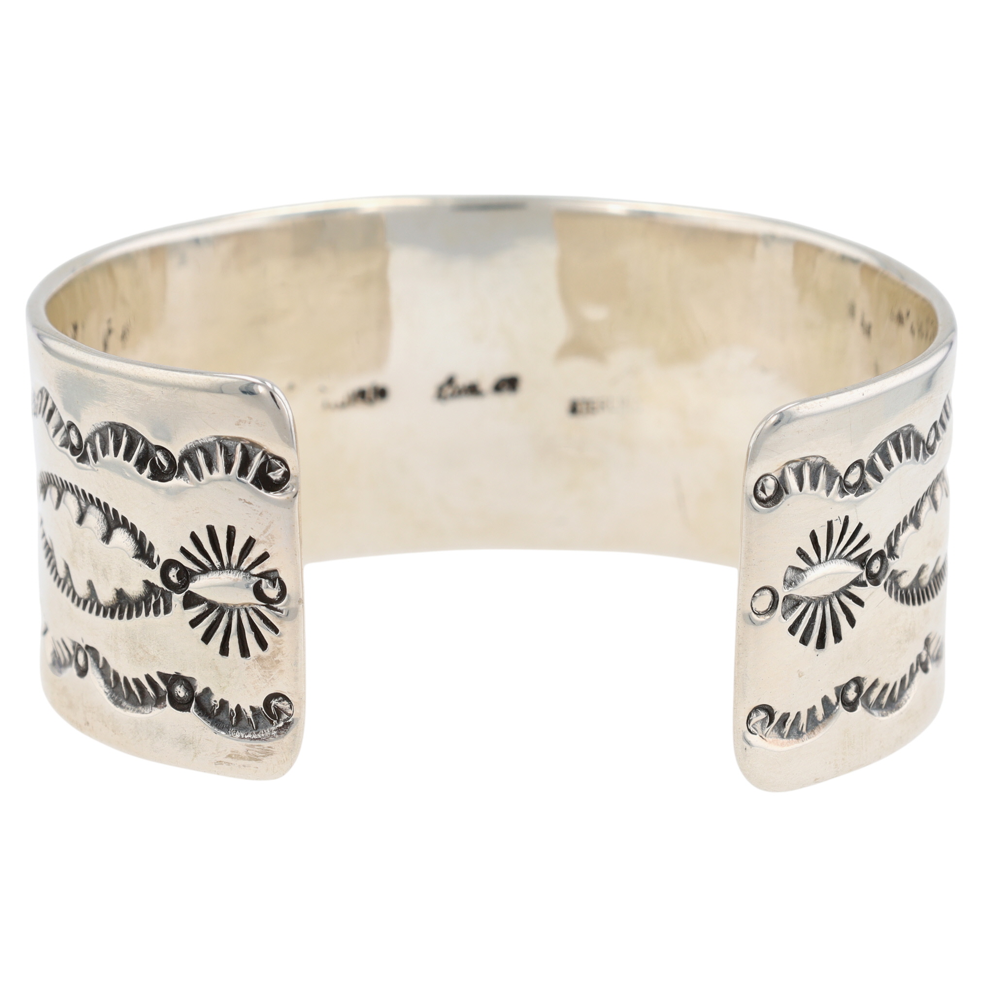 Charlene & Robert Little Navajo Sterling Stamped Wide Cuff Bracelet – 64.1g