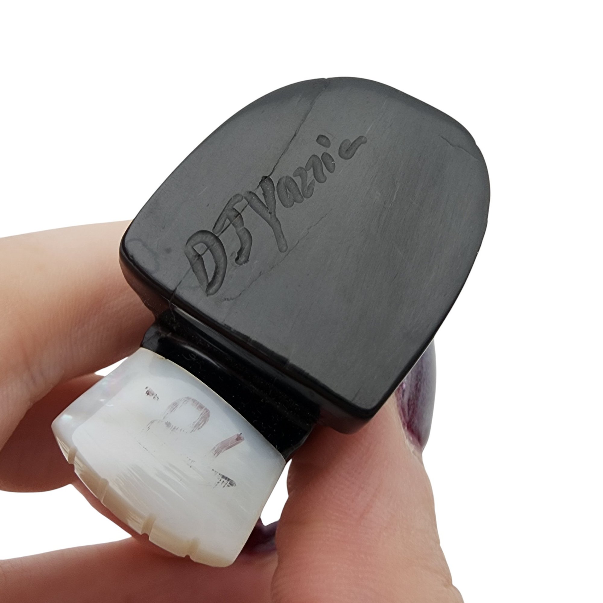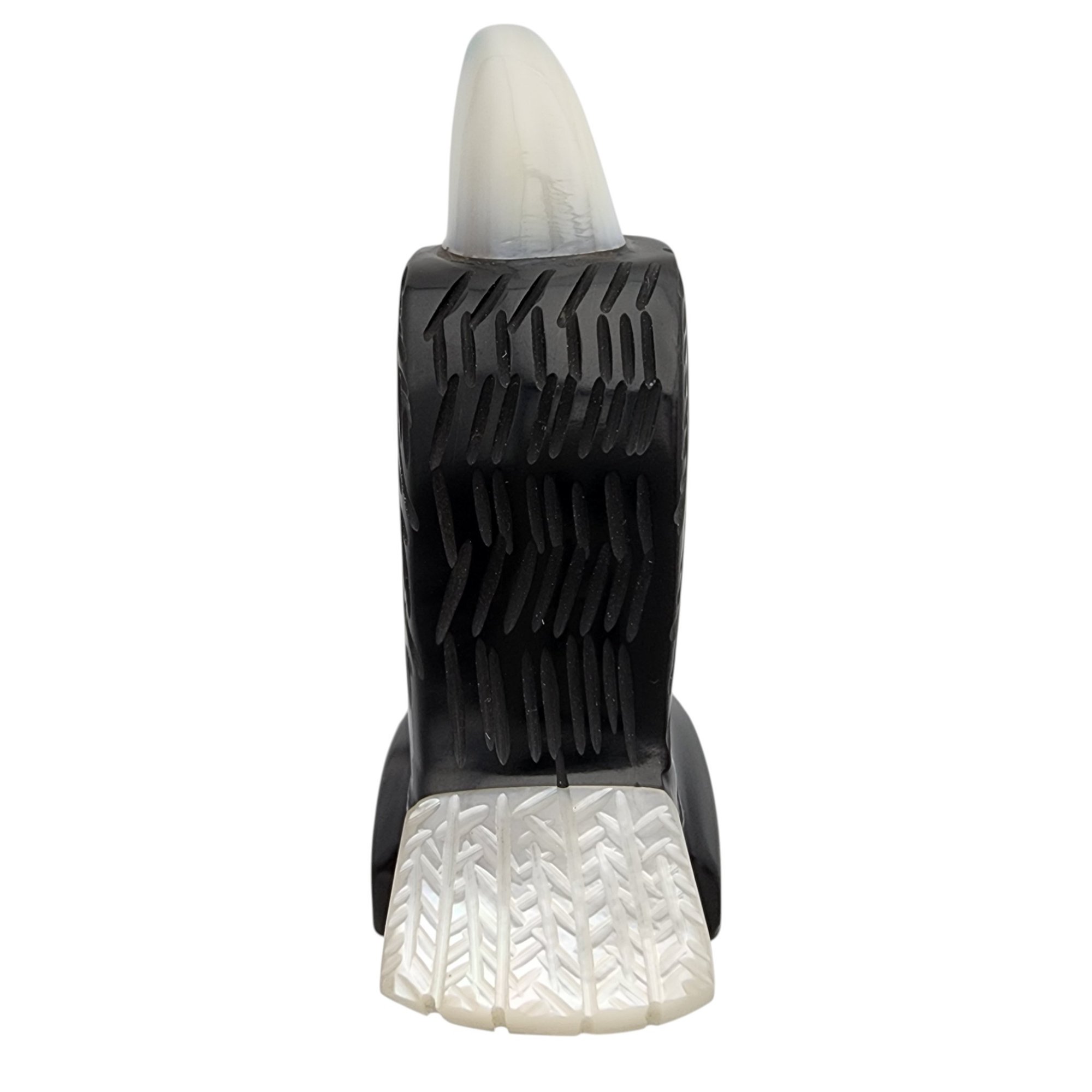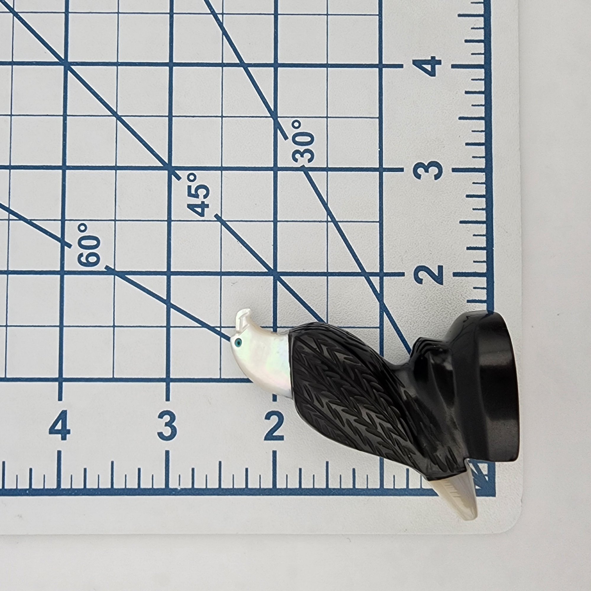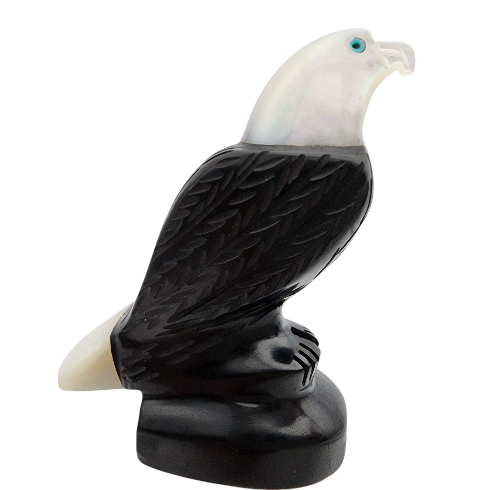 David Yazzie Navajo Jet, Mother of Pearl, and Inlaid Turquoise Eagle Fetish / Approximate Weight: 29g / Approximate measurements: 2.3″ x 1.7″ / Note 1: Signed DJ Yazzie under the base – Comes with original receipt from time of purchase. / This item is part of an estate collection of Native American fetishes, pottery, baskets, and rugs acquired by a collector who traveled throughout the Southwest between the 1970s and early 2000s. Many pieces were purchased from trading posts in Arizona and New Mexico. Artist attributions are based on available documentation, including receipts, tags, stickers, and signatures where present. Select items include original or copied receipts and original tags identifying artists pricing at the time of purchase, primarily from the 1970s through the 1990s. Please review our non-jewelry shipping information and reach out with any questions prior to bidding. Thank you!
