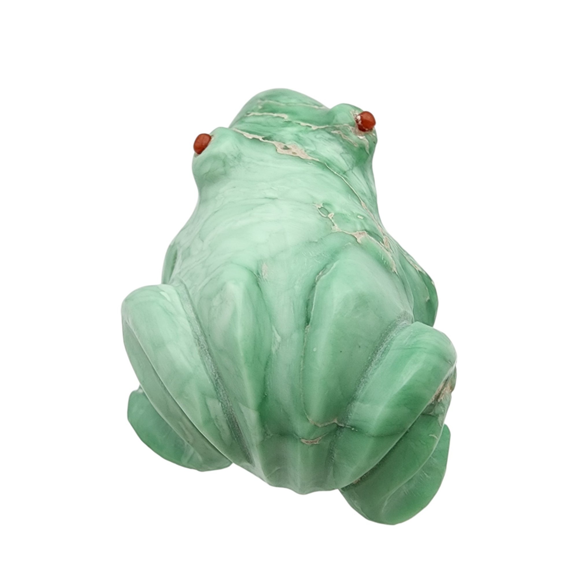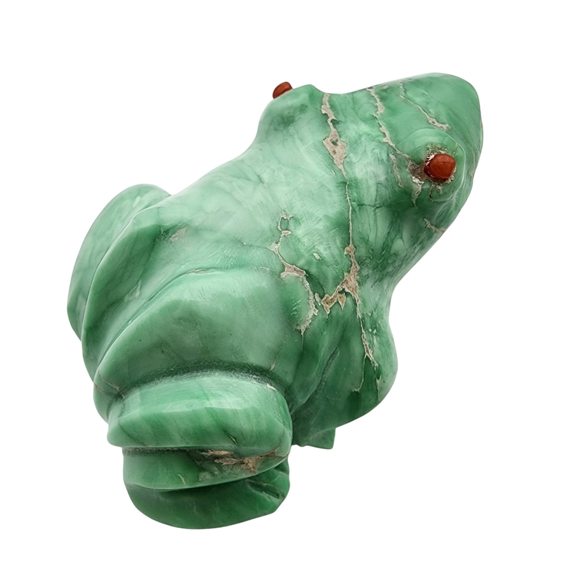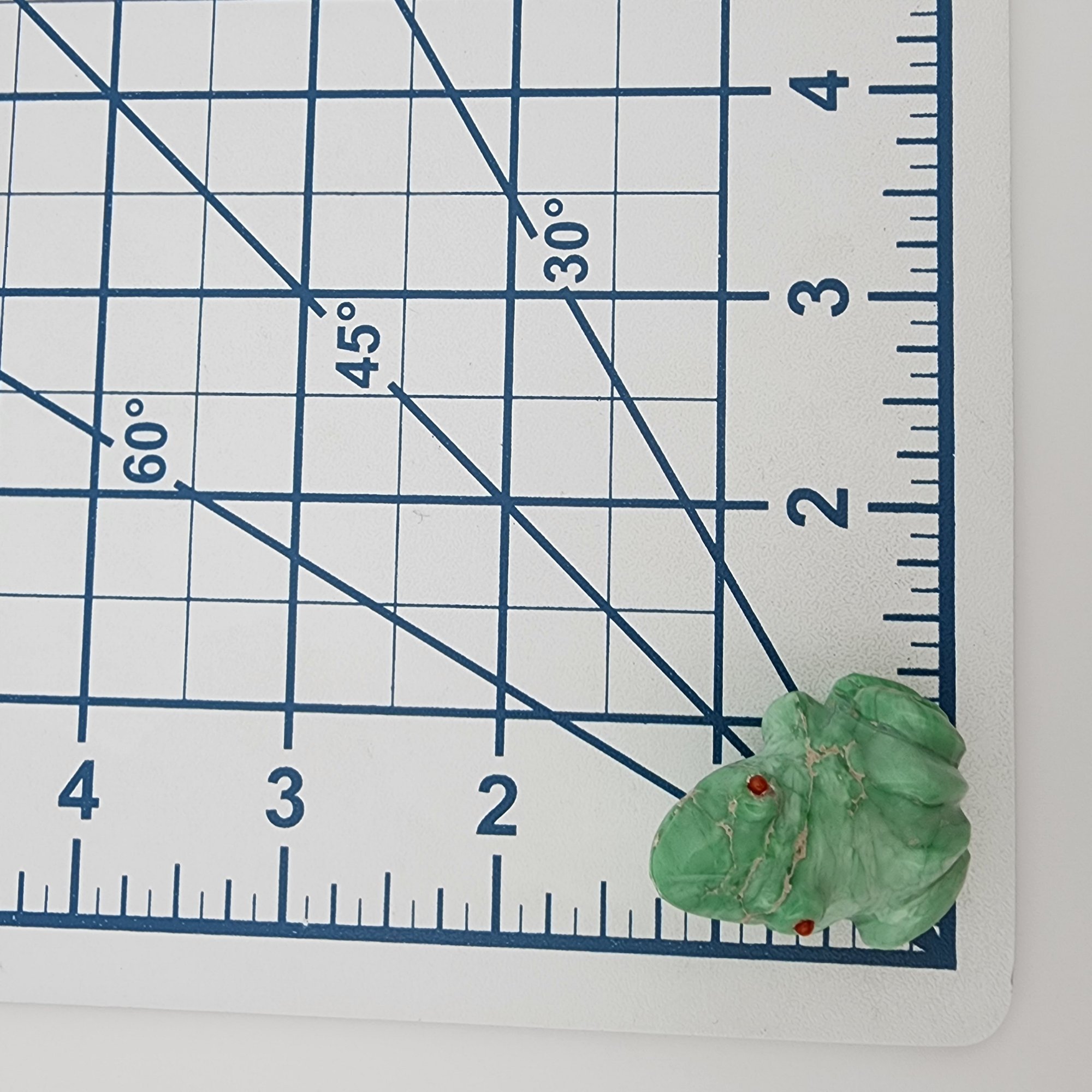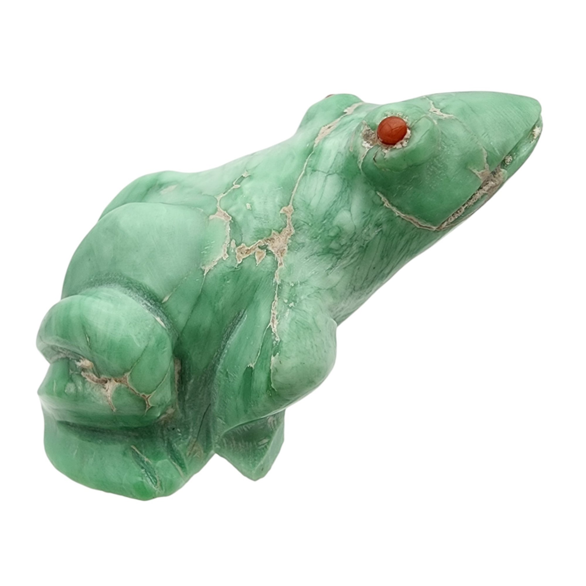 Herbert and Jeff Davis Navajo Variscite and Inlaid Coral Frog Fetish / Approximate Weight: 19g / Approximate measurements: 1.7″ x 1.2″ x .85″ / Note 1: Purchased at Canyon Trading Post in 1996. Comes with original receipt at time of purchase. / This item is part of an estate collection of Native American fetishes, pottery, baskets, and rugs acquired by a collector who traveled throughout the Southwest between the 1970s and early 2000s. Many pieces were purchased from trading posts in Arizona and New Mexico. Artist attributions are based on available documentation, including receipts, tags, stickers, and signatures where present. Select items include original or copied receipts and original tags identifying artists pricing at the time of purchase, primarily from the 1970s through the 1990s. Please review our non-jewelry shipping information and reach out with any questions prior to bidding. Thank you!