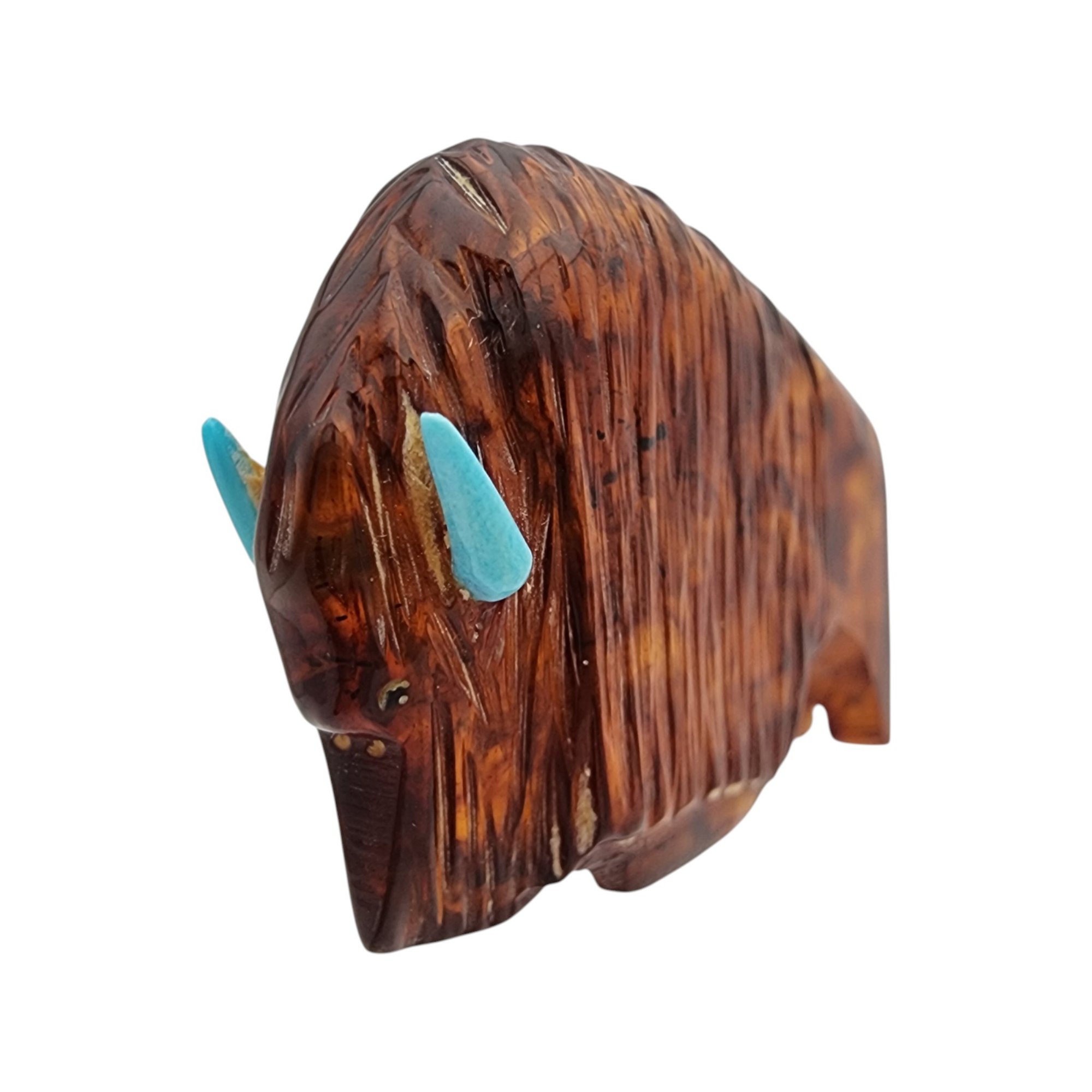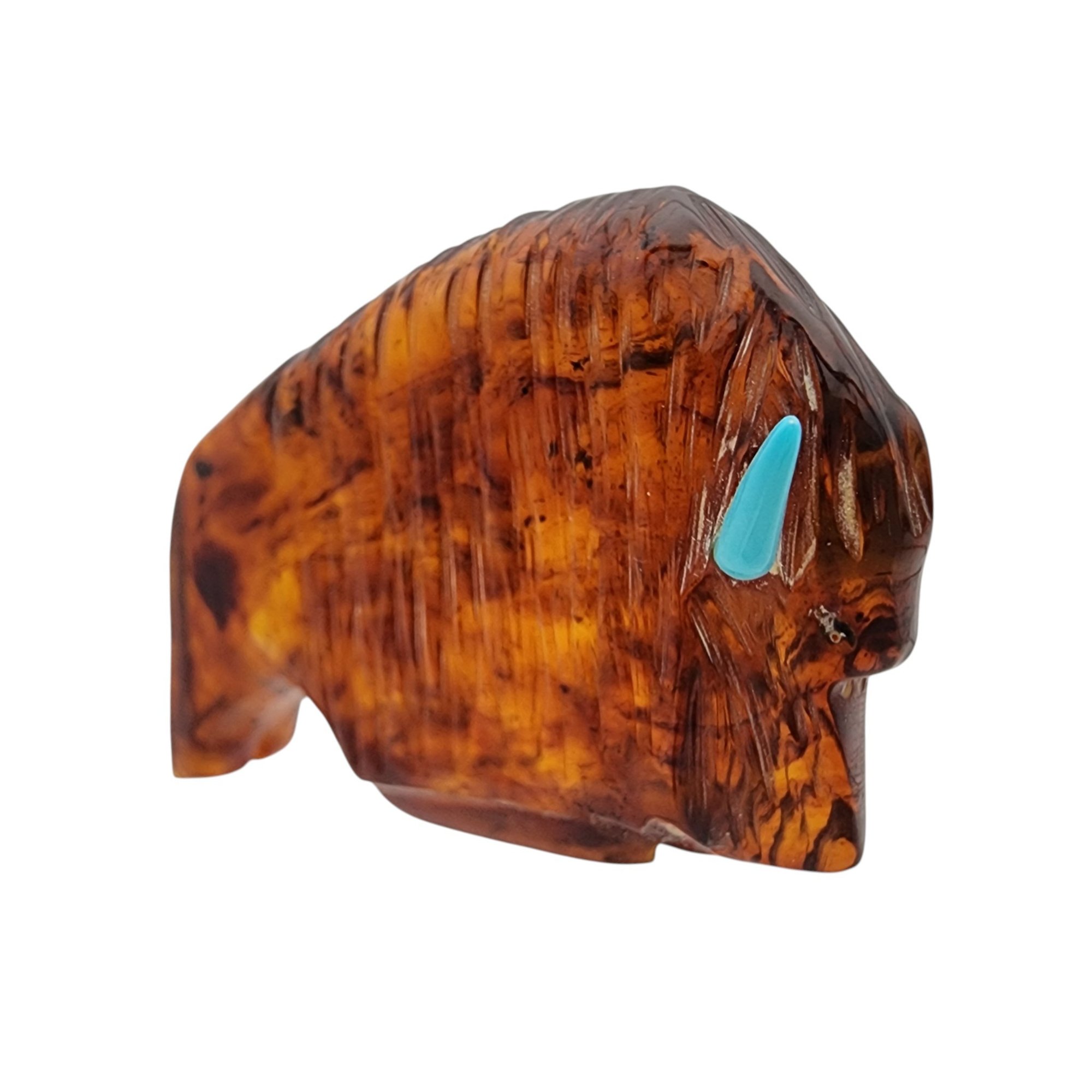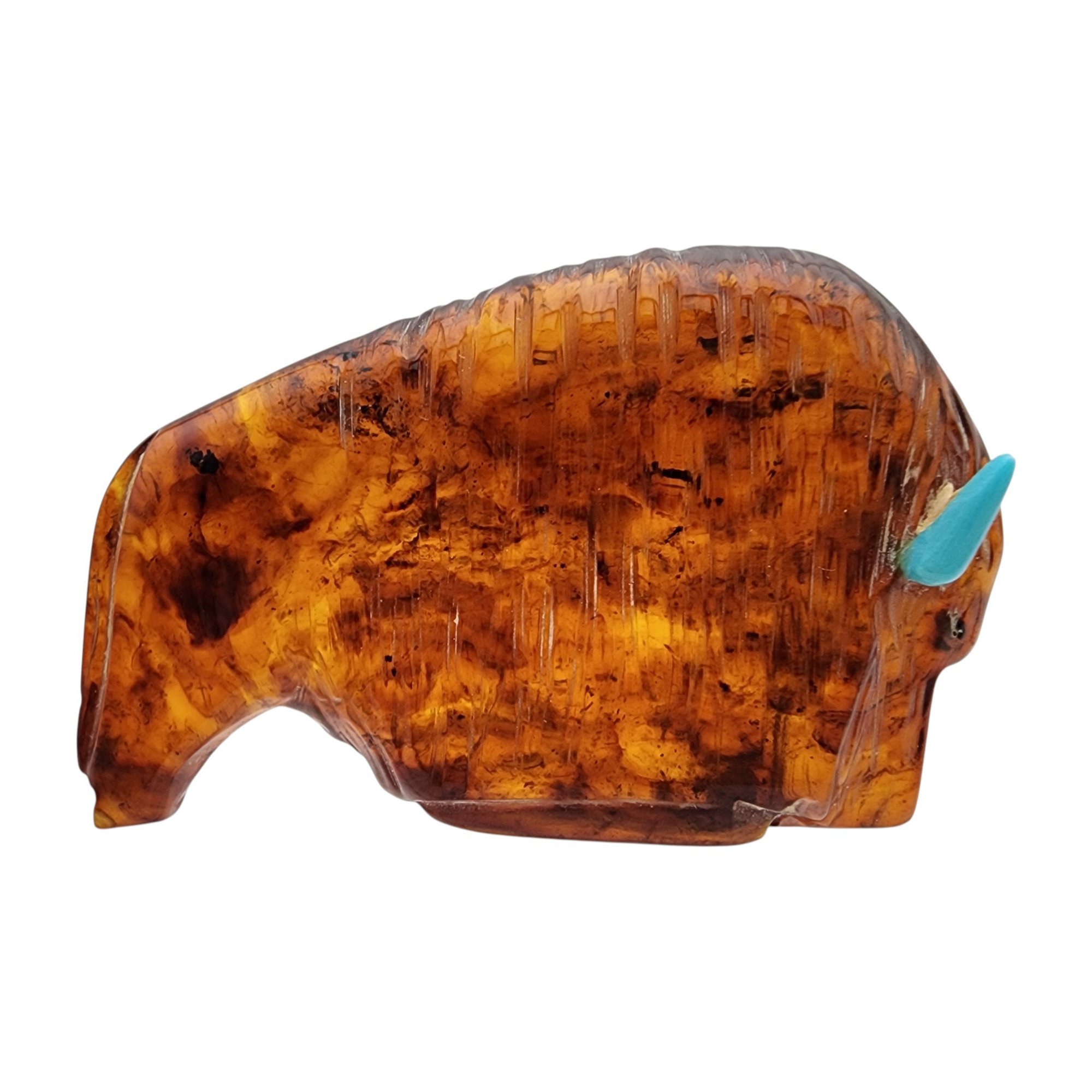Stewart Quandelacy Zuni Amber and Inlaid Turquoise Buffalo Fetish