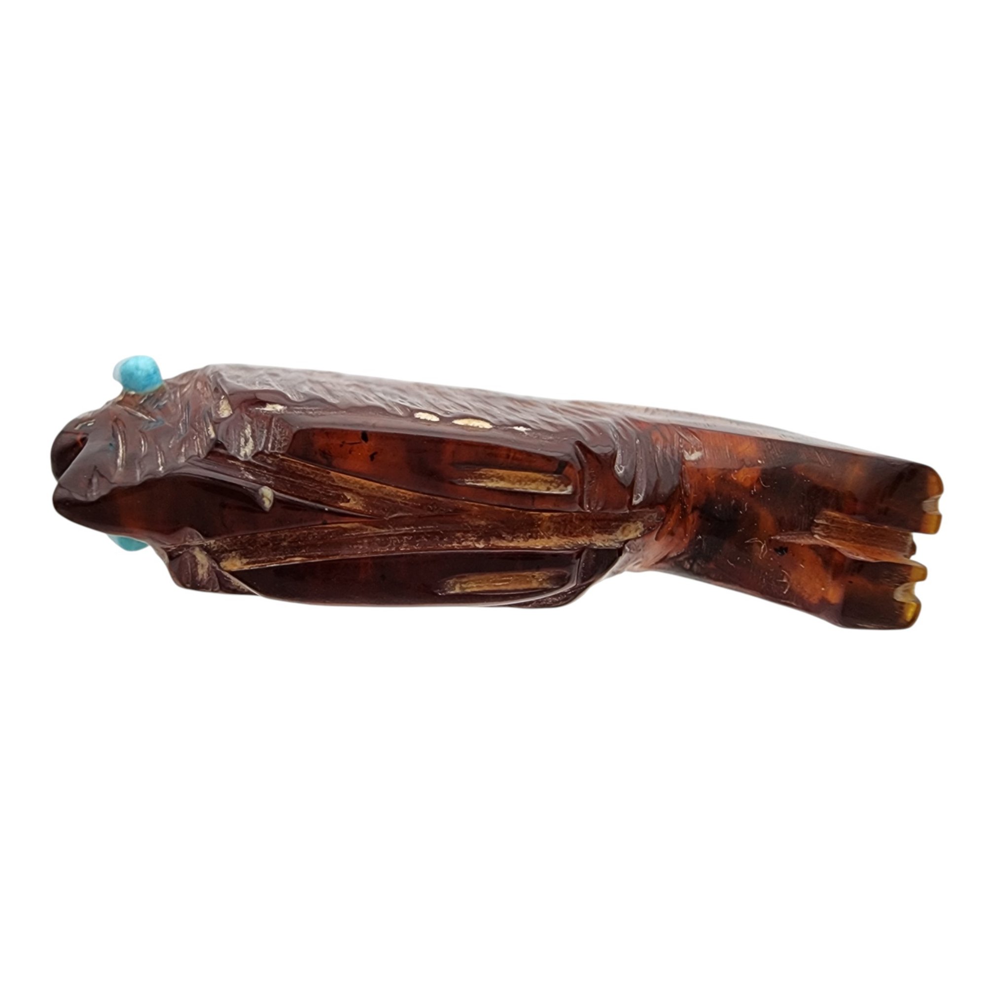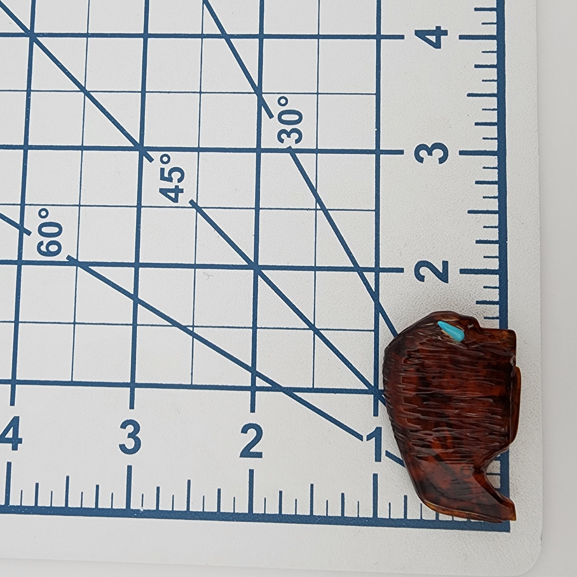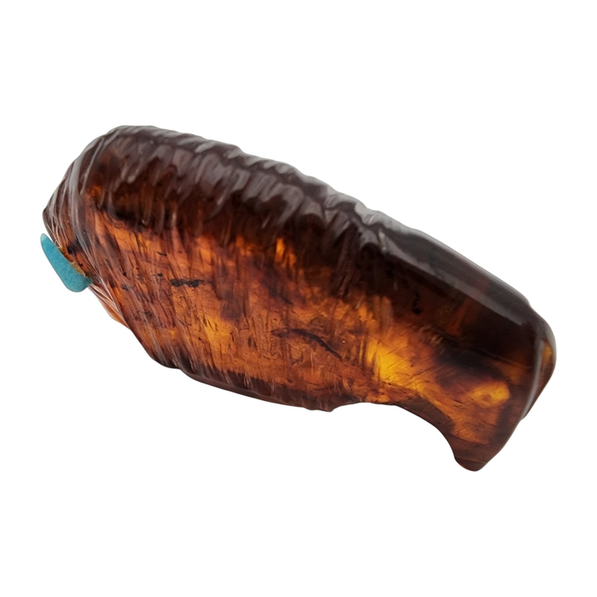 Stewart Quandelacy Zuni Amber and Inlaid Turquoise Buffalo Fetish