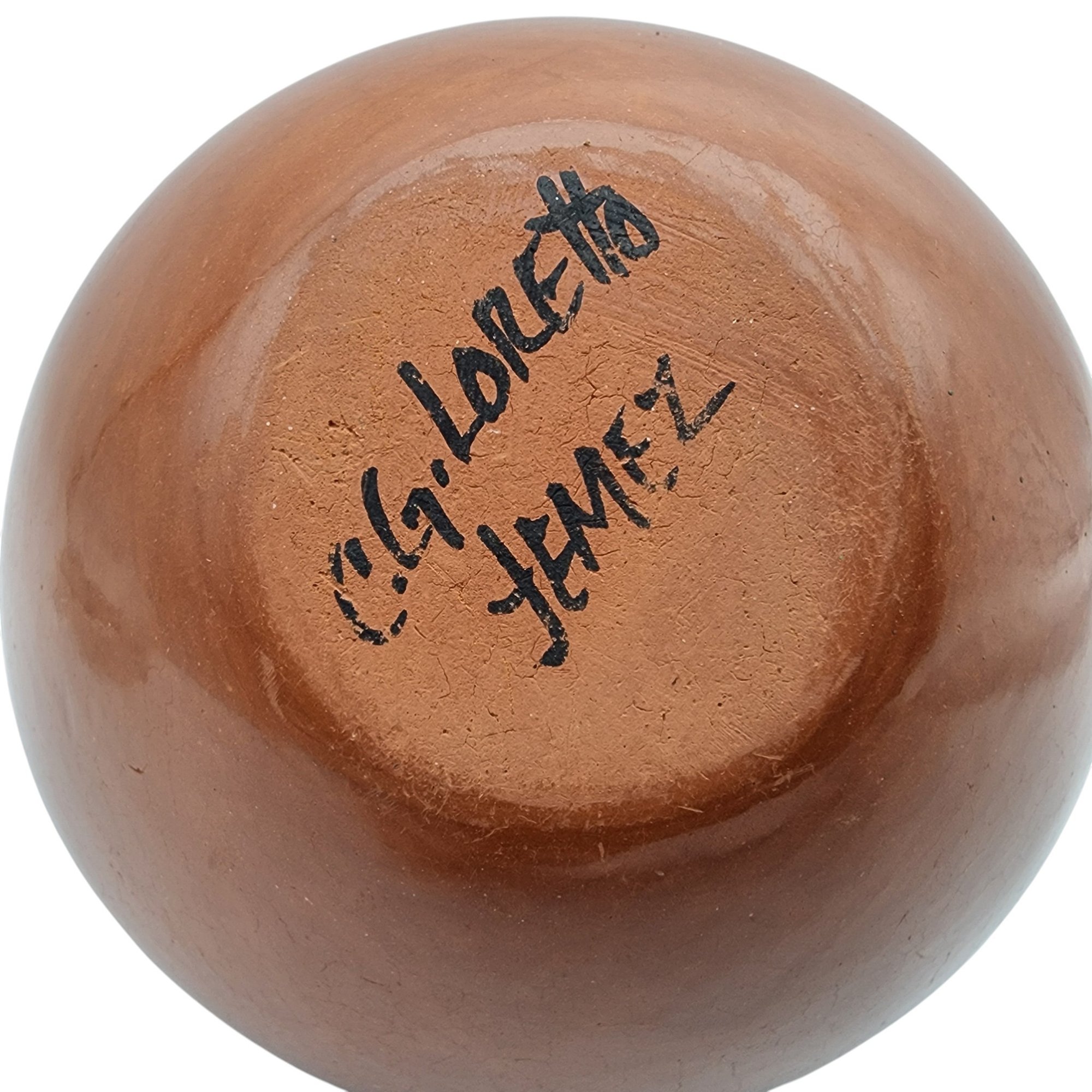 Carol G. Loretto Native American Jemez Pueblo Geometric Design Native American Seed Pot / 142g / Approx. 2.53"h x 3.36"d /