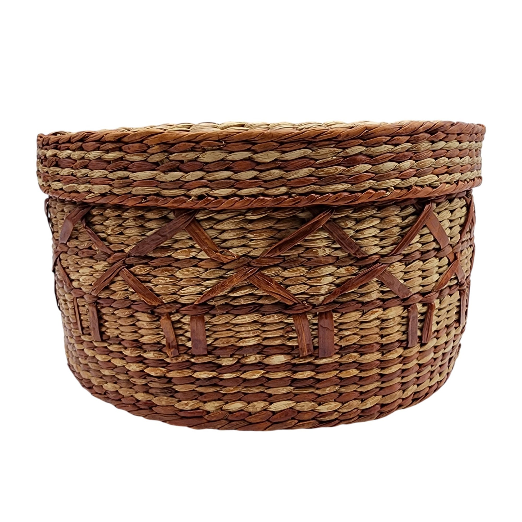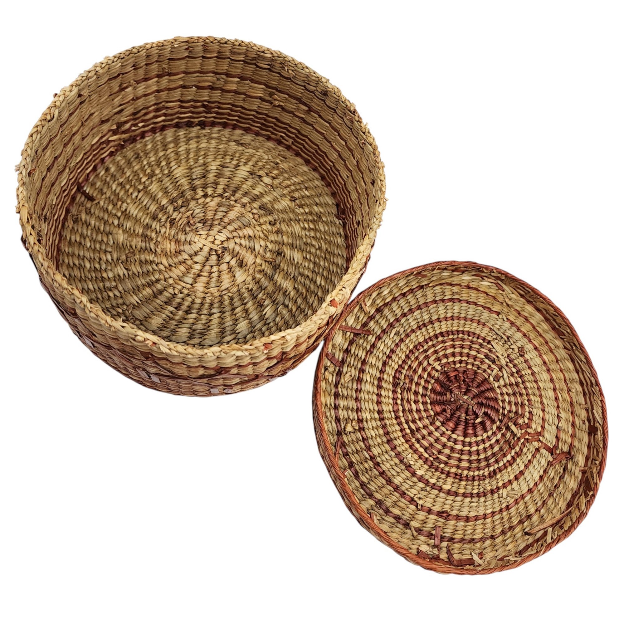 Native American Lidded Basket / 109g / 3.5″h x 6.5″d / Note: This item is part of an estate collection of Native American fetishes, pottery, baskets, and rugs acquired by a collector who traveled throughout the Southwest between the 1970s and early 2000s. Many pieces were purchased from trading posts in Arizona and New Mexico. Artist attributions are based on available documentation, including receipts, tags, stickers, and signatures where present. Select items include original or copied receipts and original tags identifying artists pricing at the time of purchase, primarily from the 1970s through the 1990s. Non-jewelry/large items in this auction ship for the cost of postage plus $20 for handling/materials per invoice. Please ask any questions prior to bidding. Thank you!