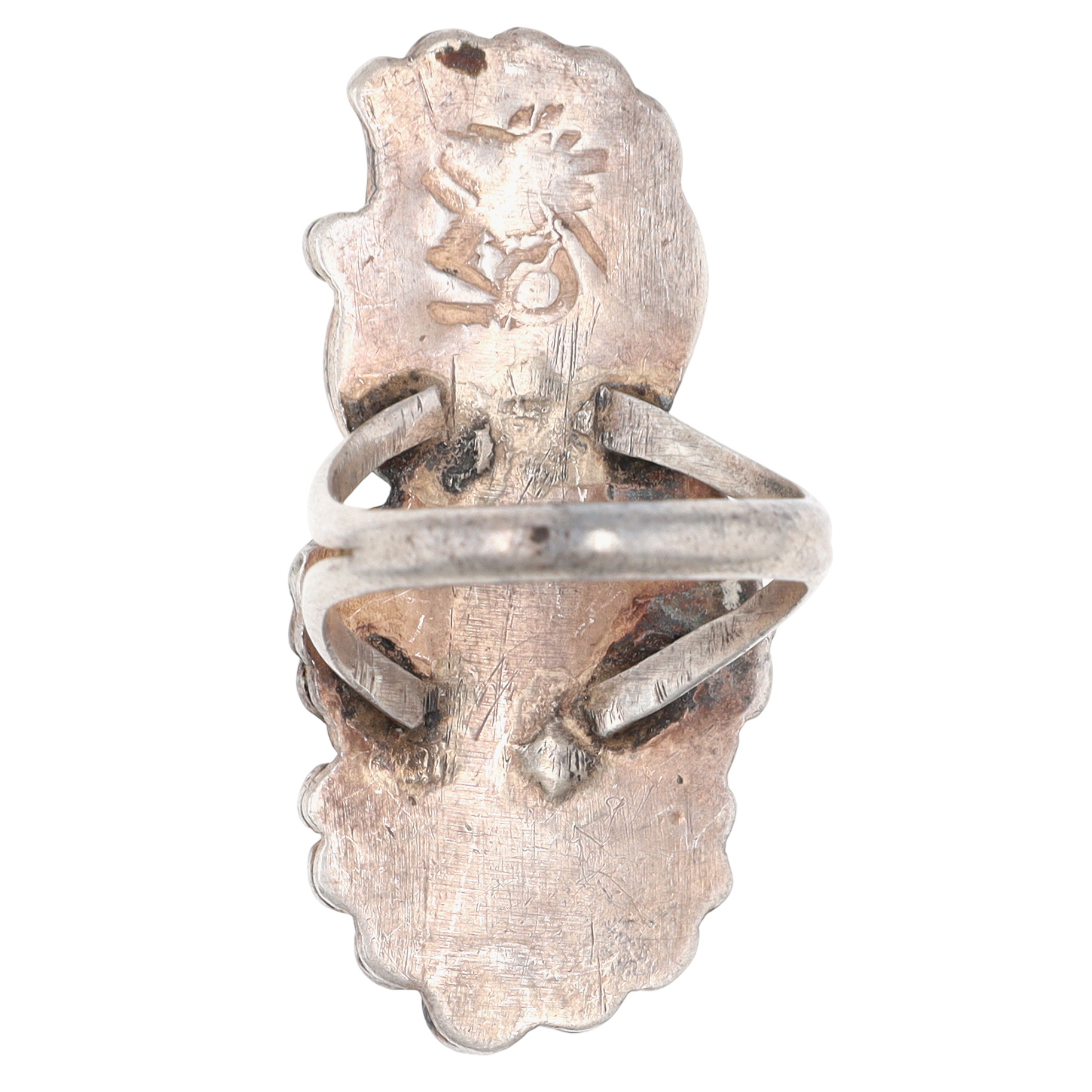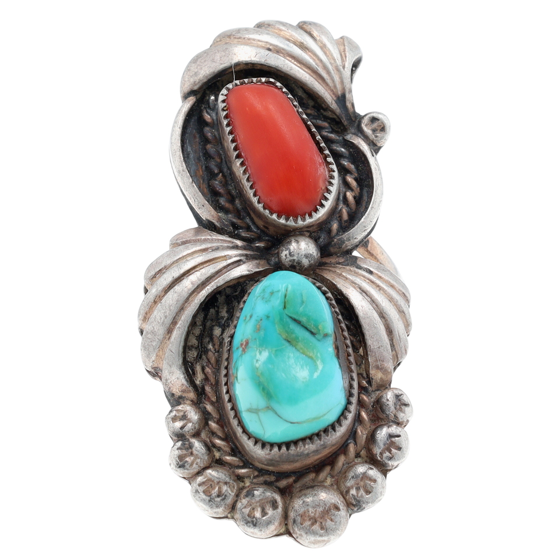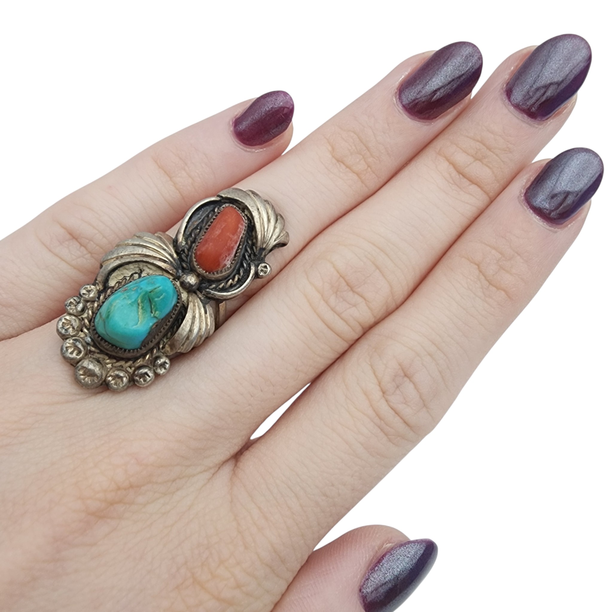 Vintage Signed Navajo Sterling Turquoise and Coral Ring Sz 6 – 10.8g