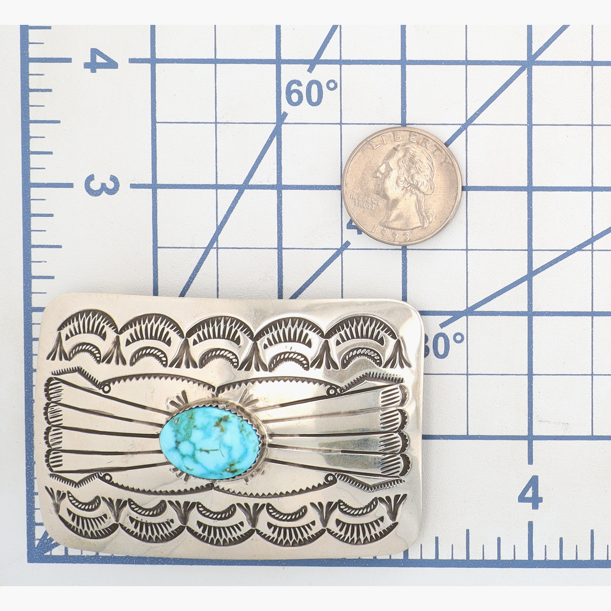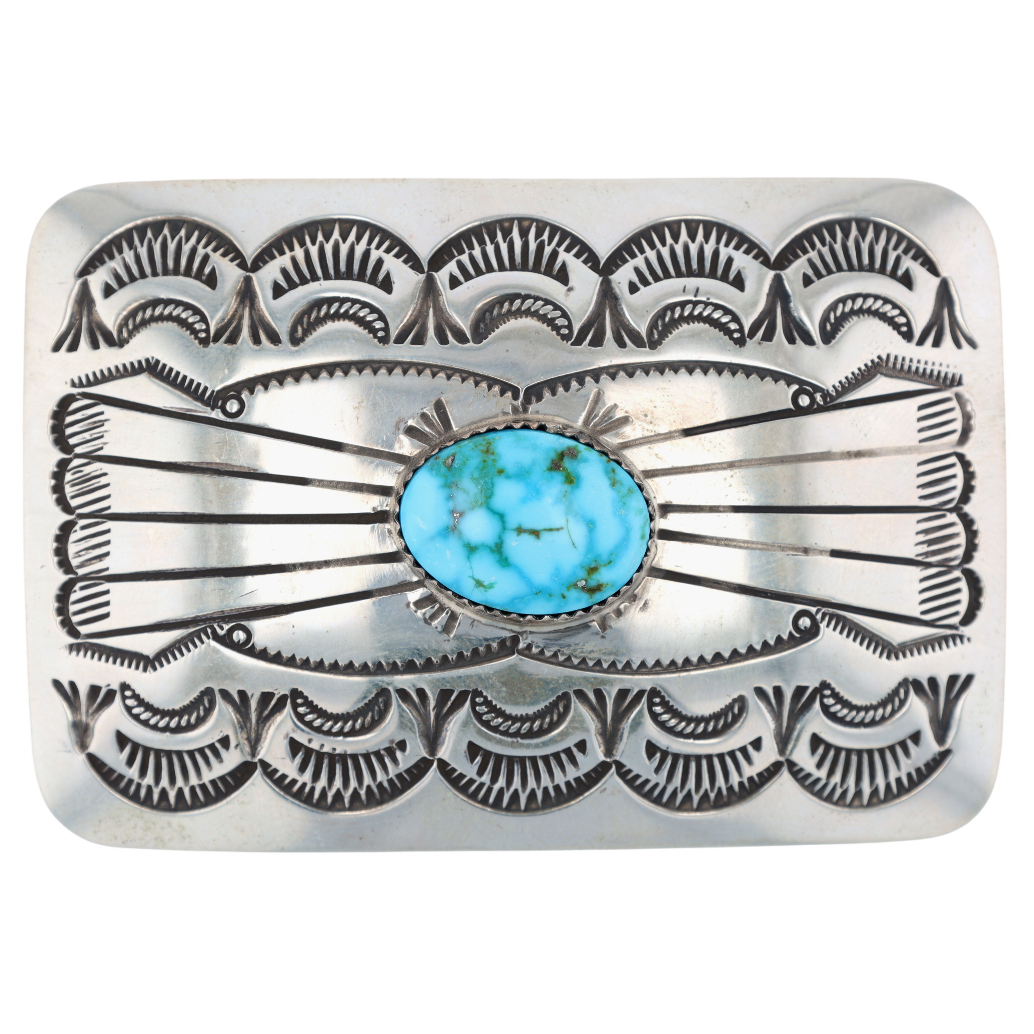James Shay Navajo Turquoise Stamped Belt Buckle