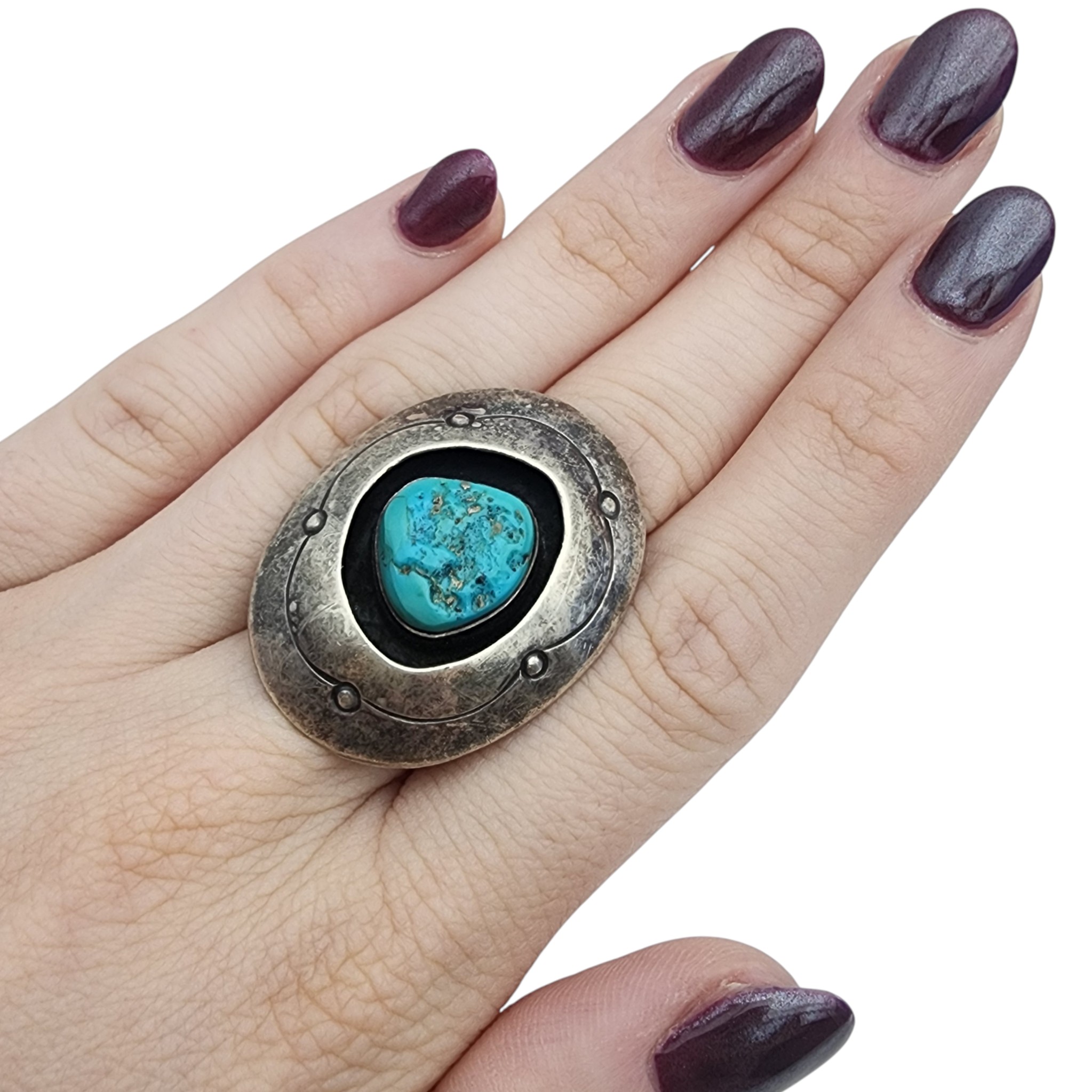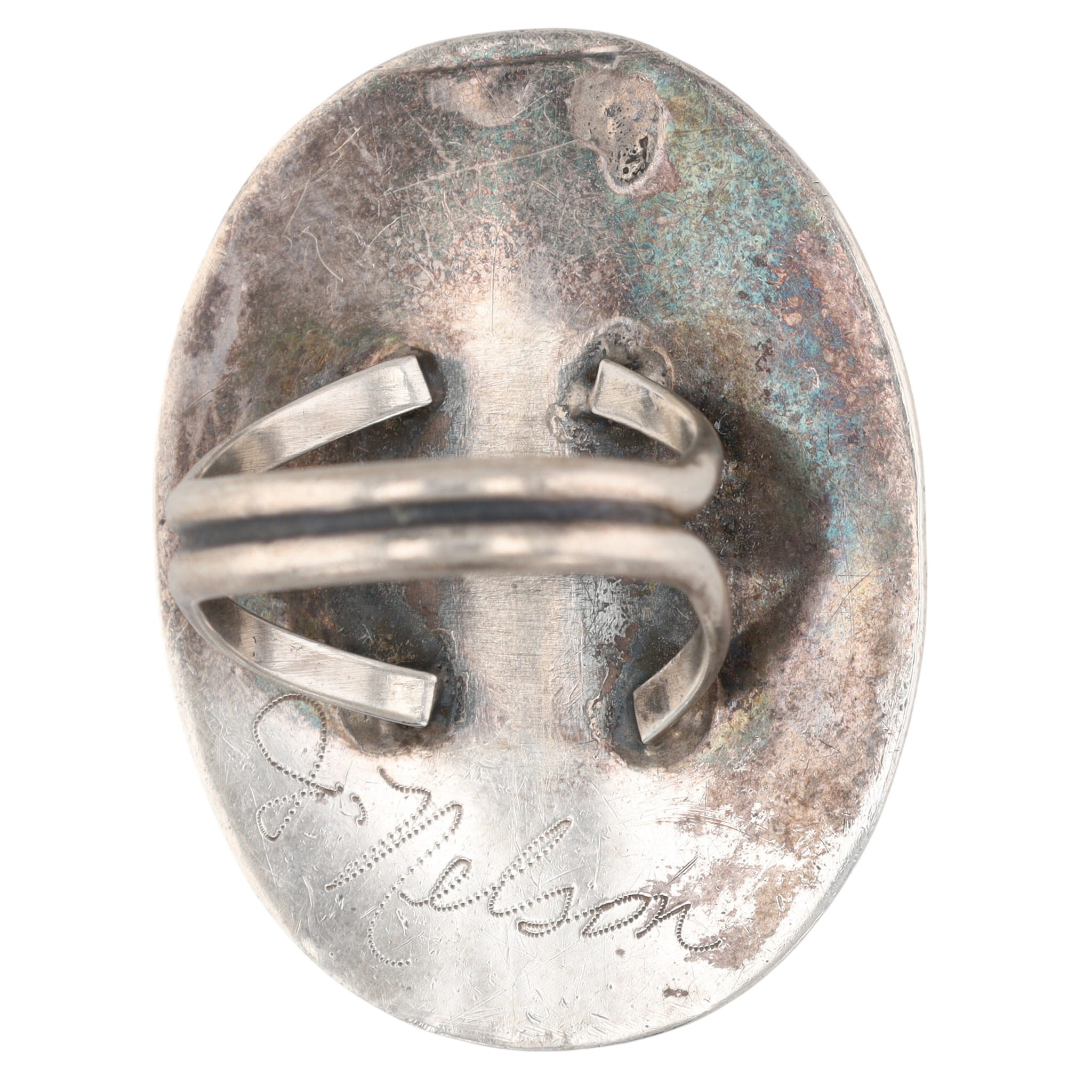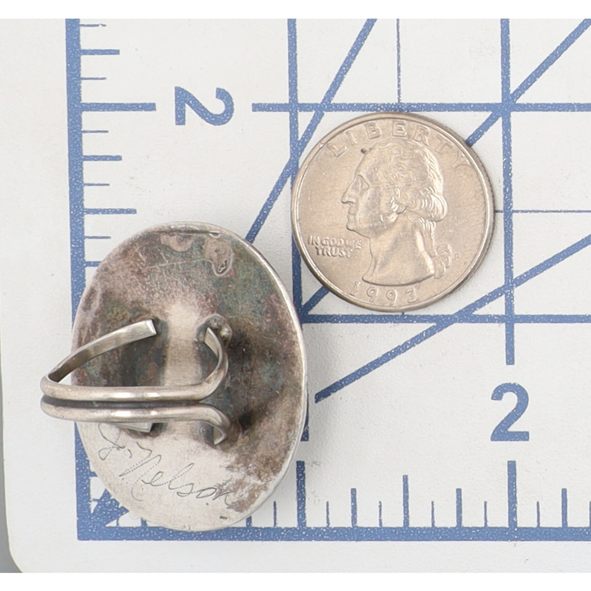 Hand Signed J. Nelson Navajo Sterling Stamped Turquoise Shadow Box Ring Sz 6.5 – 11.3g
