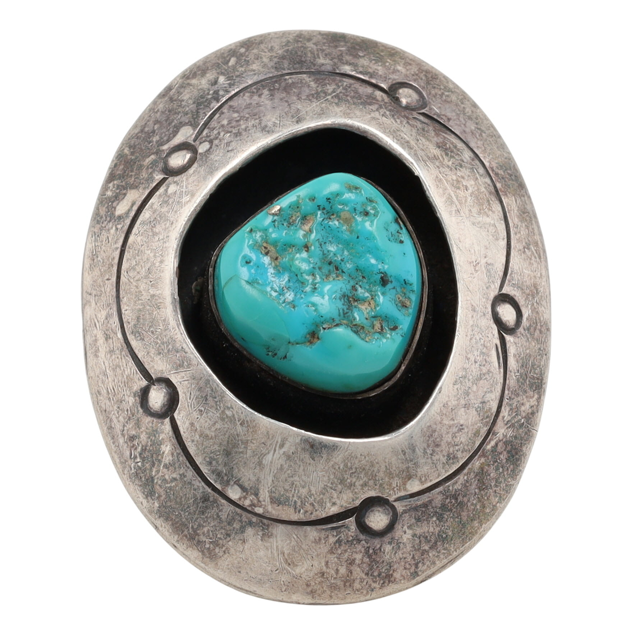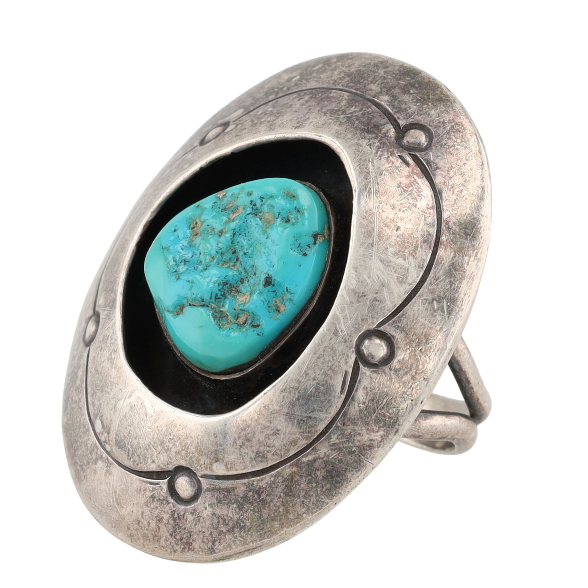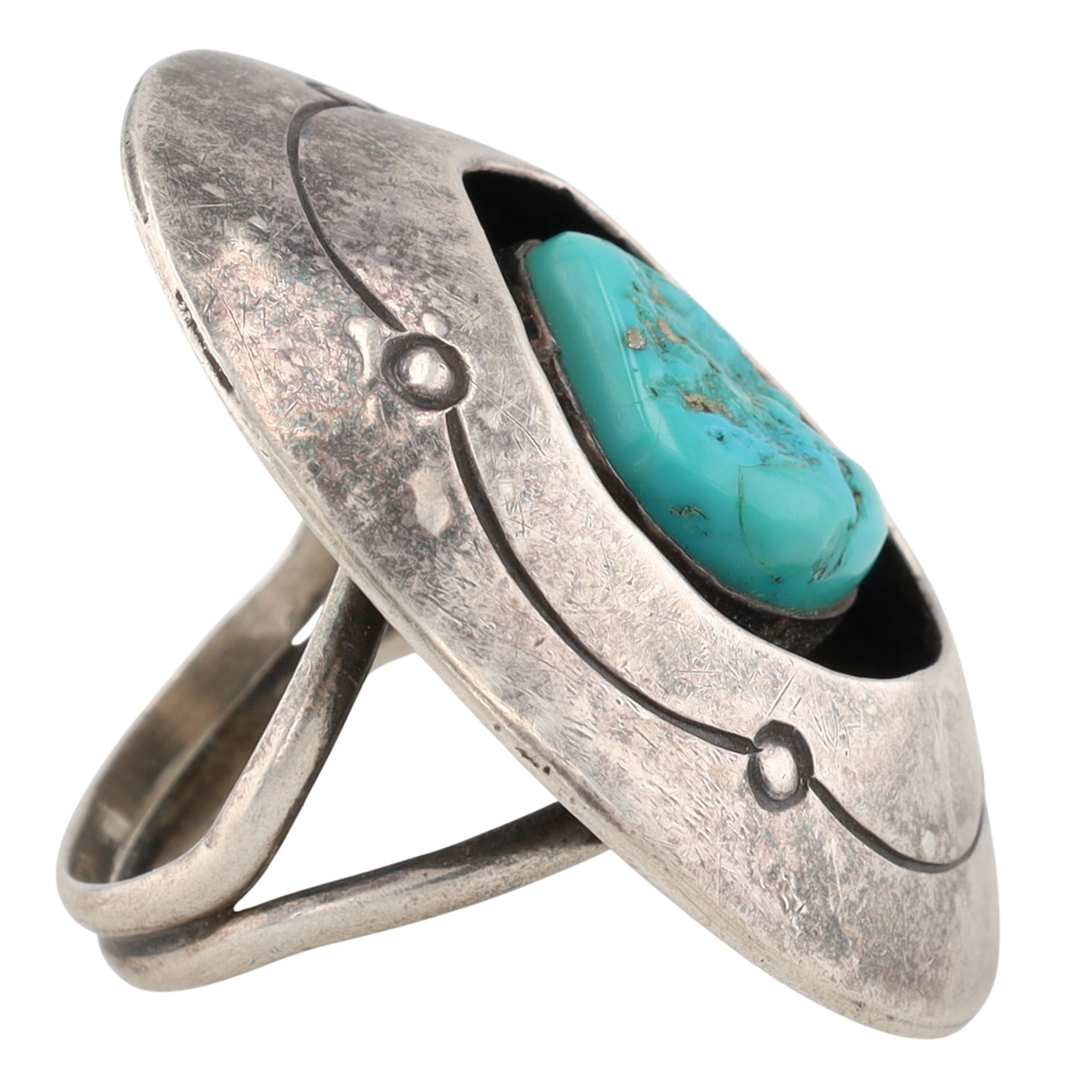 Hand Signed J. Nelson Navajo Sterling Stamped Turquoise Shadow Box Ring Sz 6.5 – 11.3g