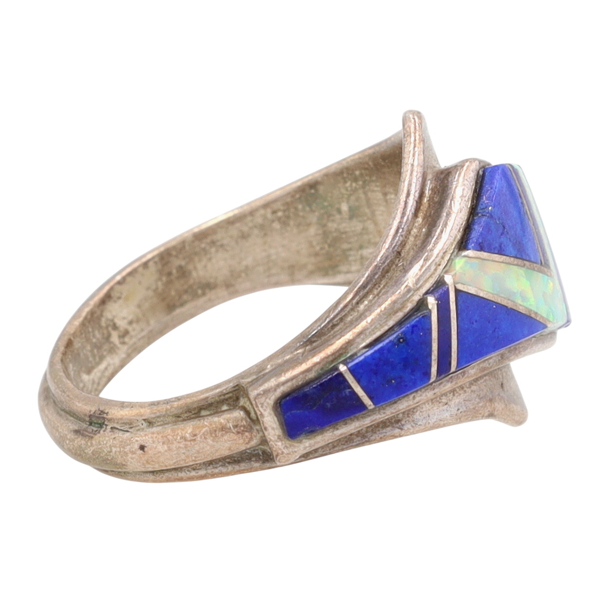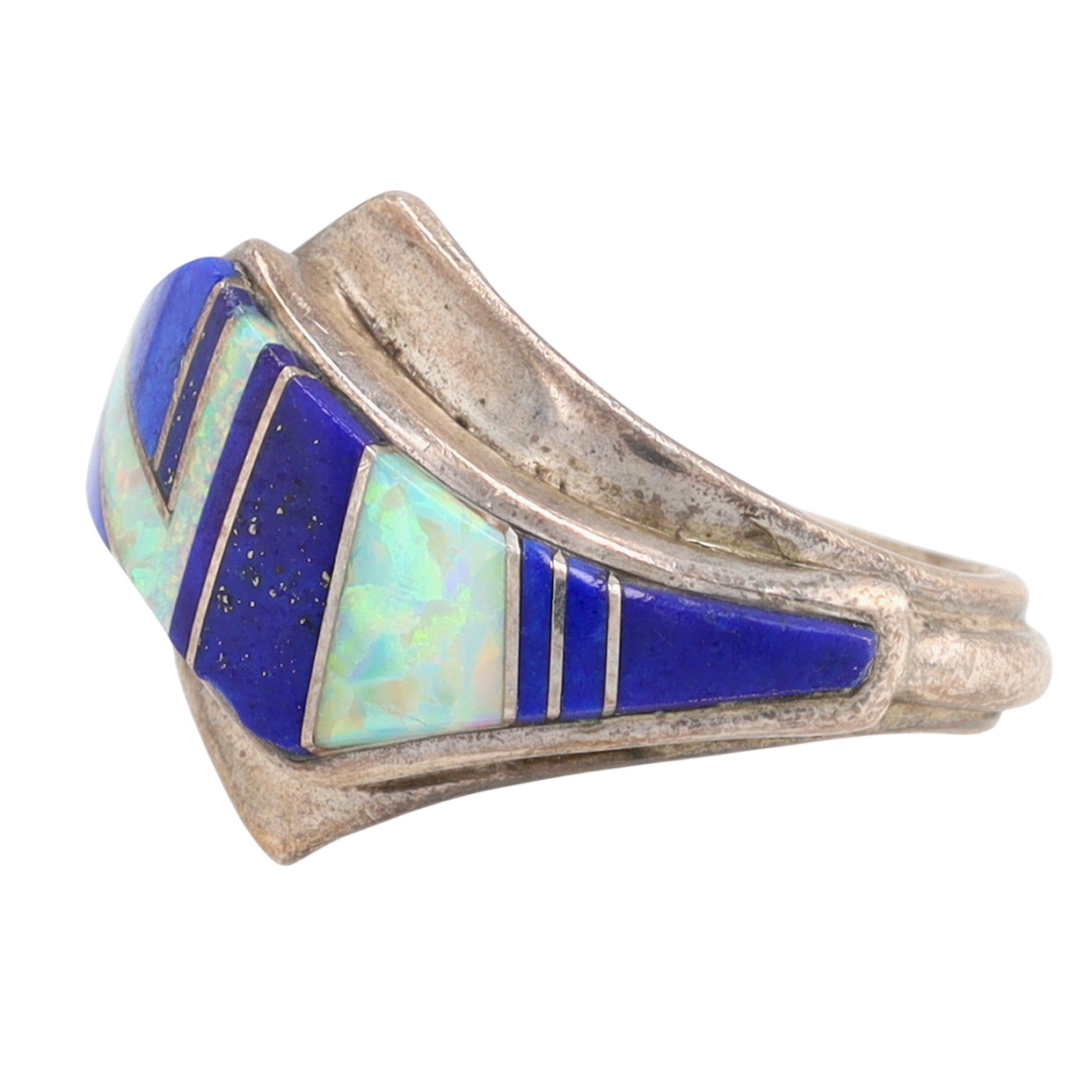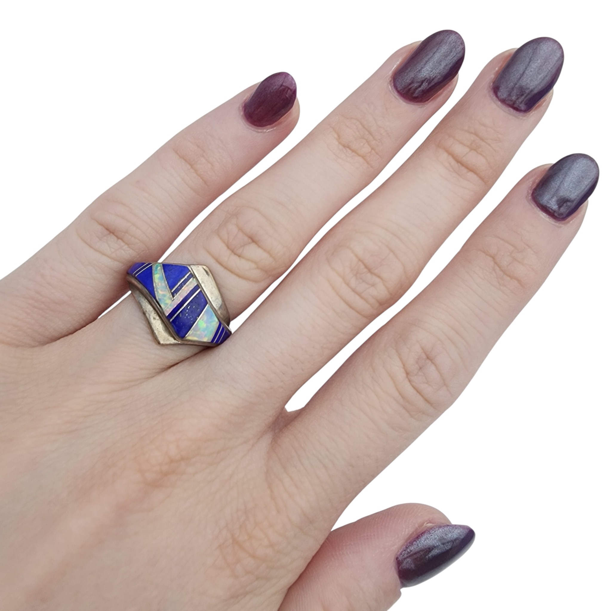 Ervin Hoskie Navajo Sterling Lapis Lazuli and Opal Inlay Ring Sz 6 – 5.3g