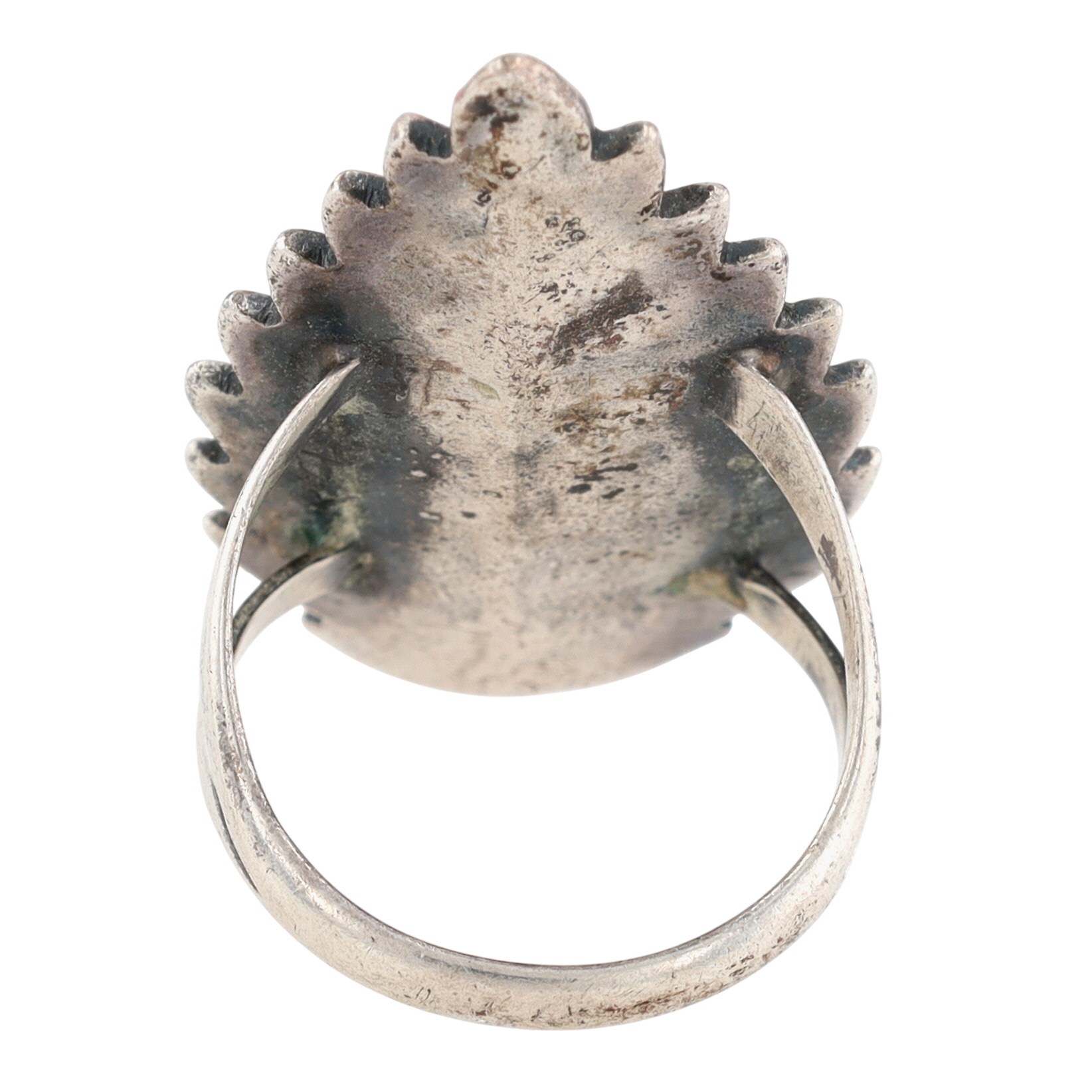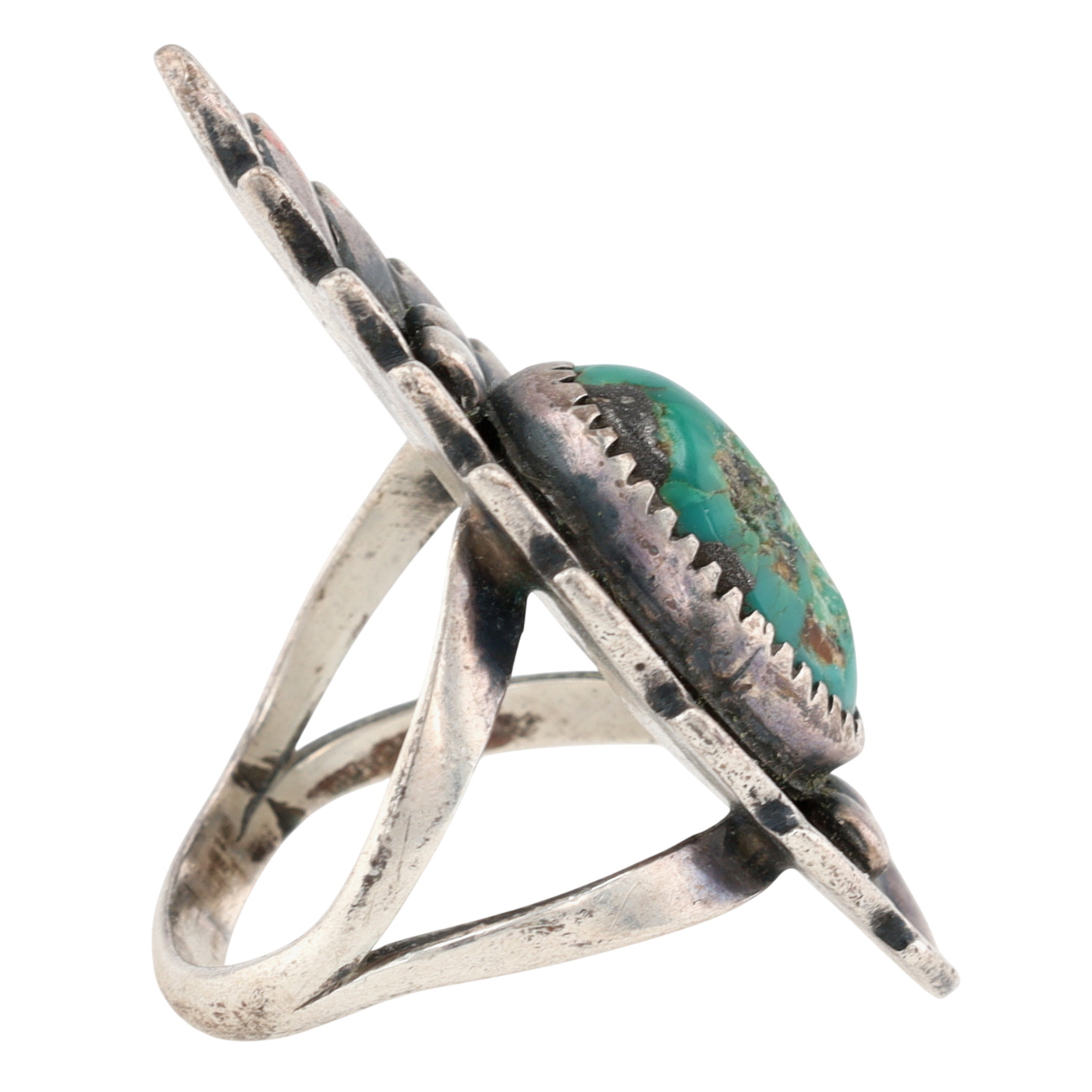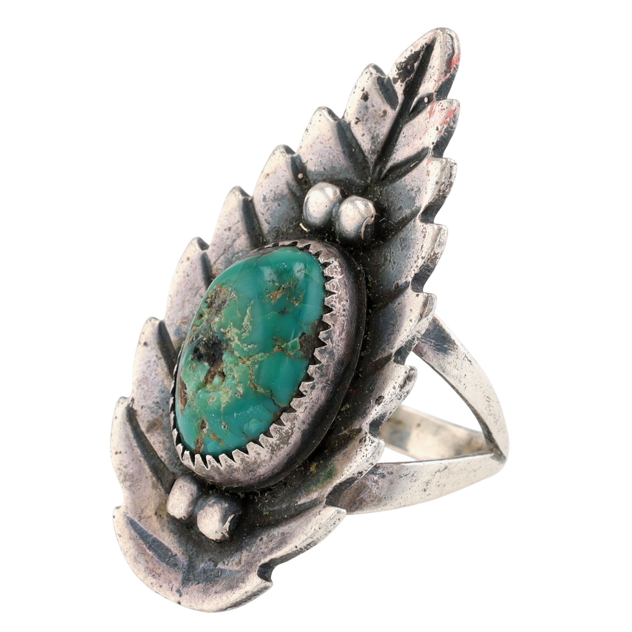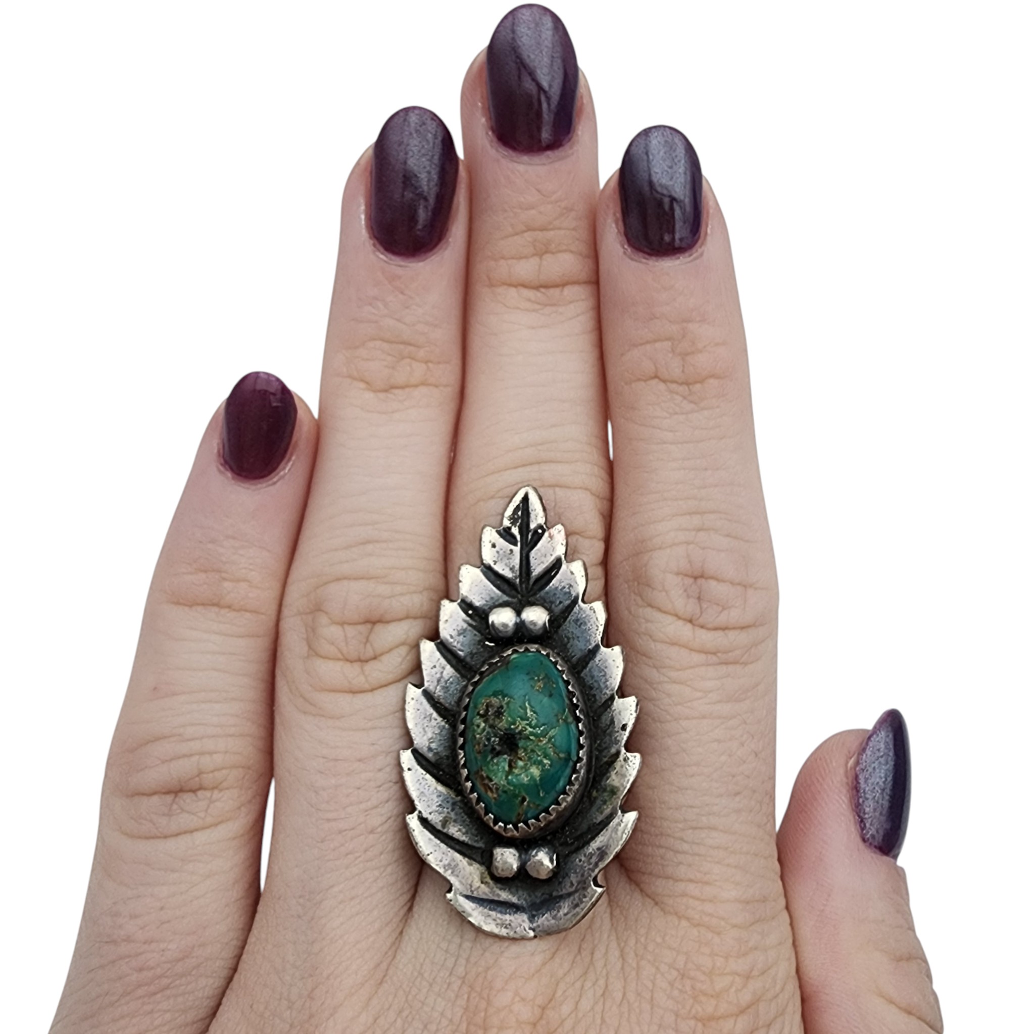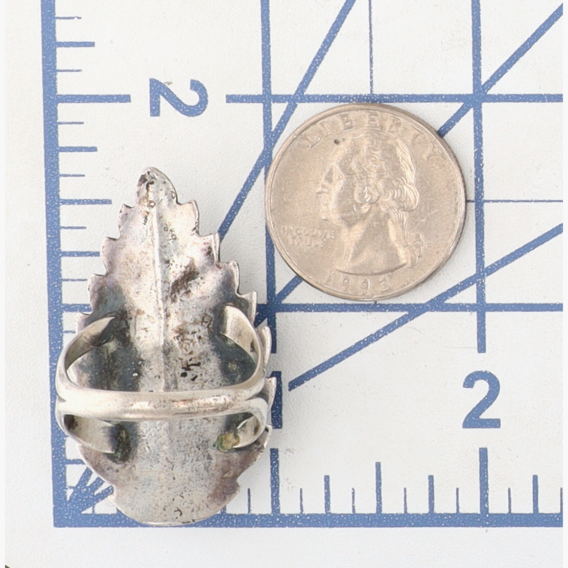 Vintage Navajo Sterling Turquoise Leaf Ring Sz 6.5 – 13.3g – center of turquoise with imperfections in stone, see photos – intact, stable