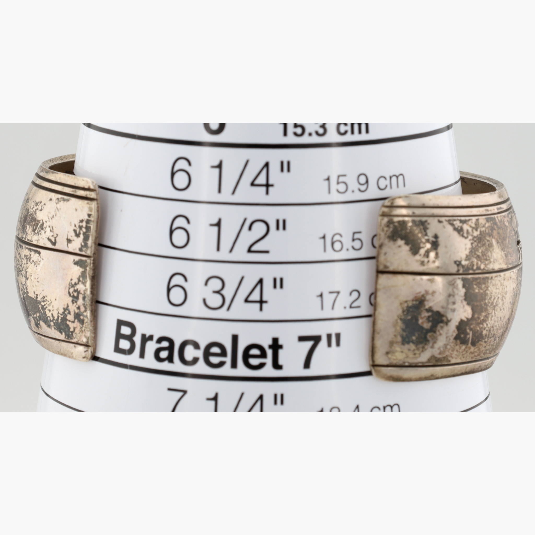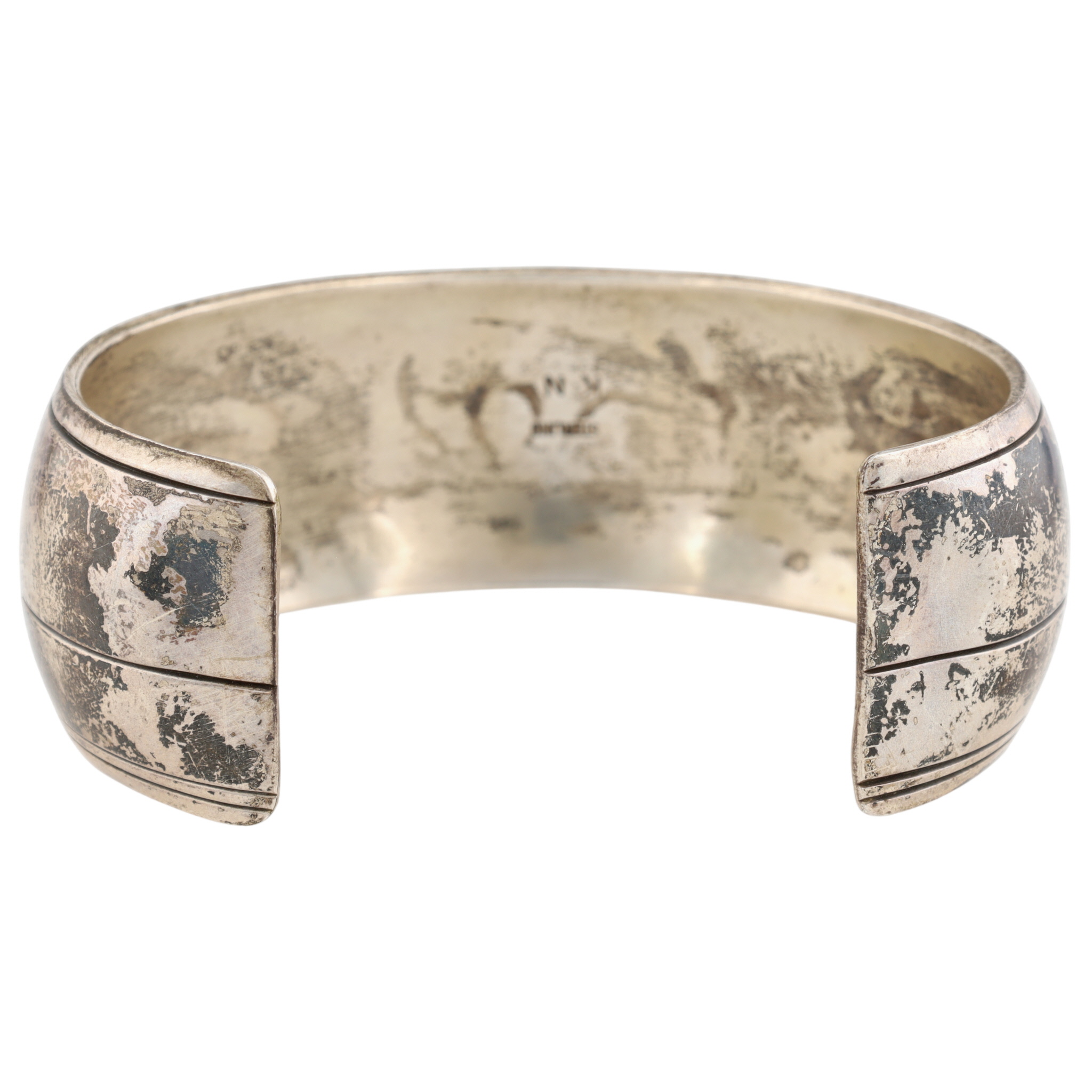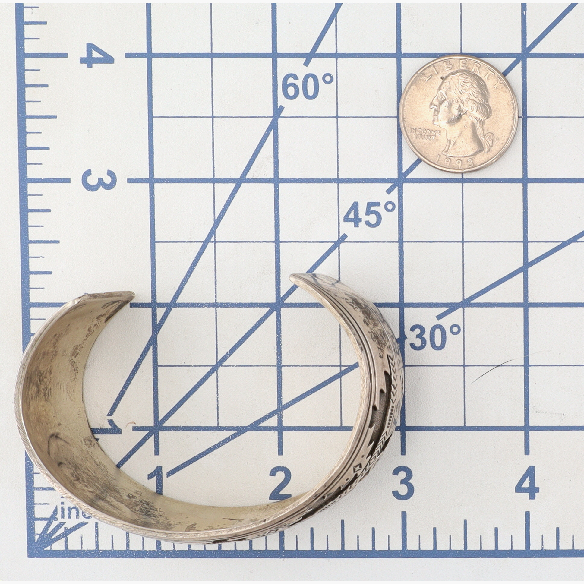 Signed KN – possibly Kirby Nez – Navajo Sterling Stamped Overlay Spirit Bear Cuff Bracelet – 46.9g