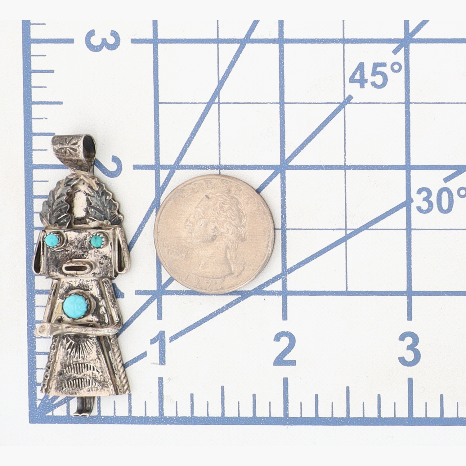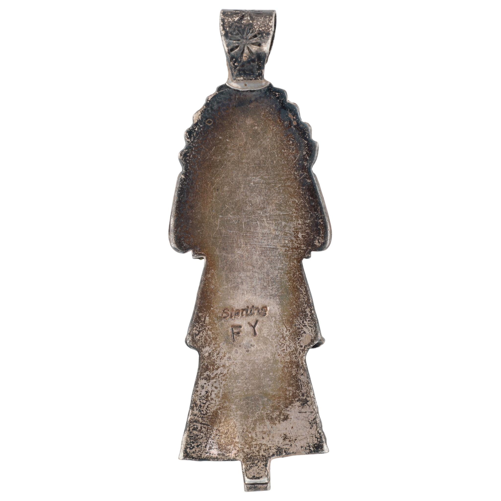 Vintage Frank Yazzie Navajo Sterling and Turquoise Kachina Doll Pendant – 6.4g