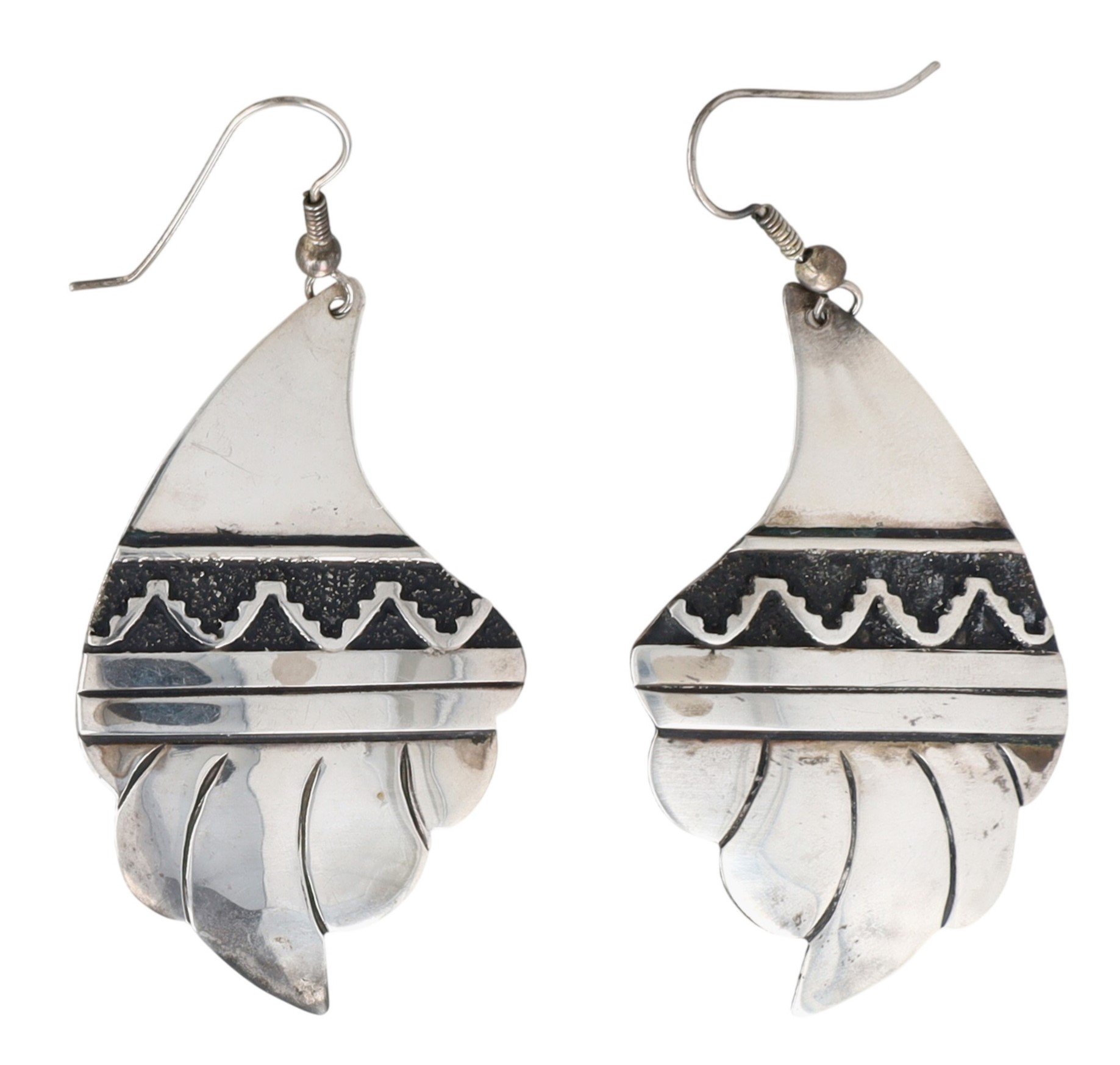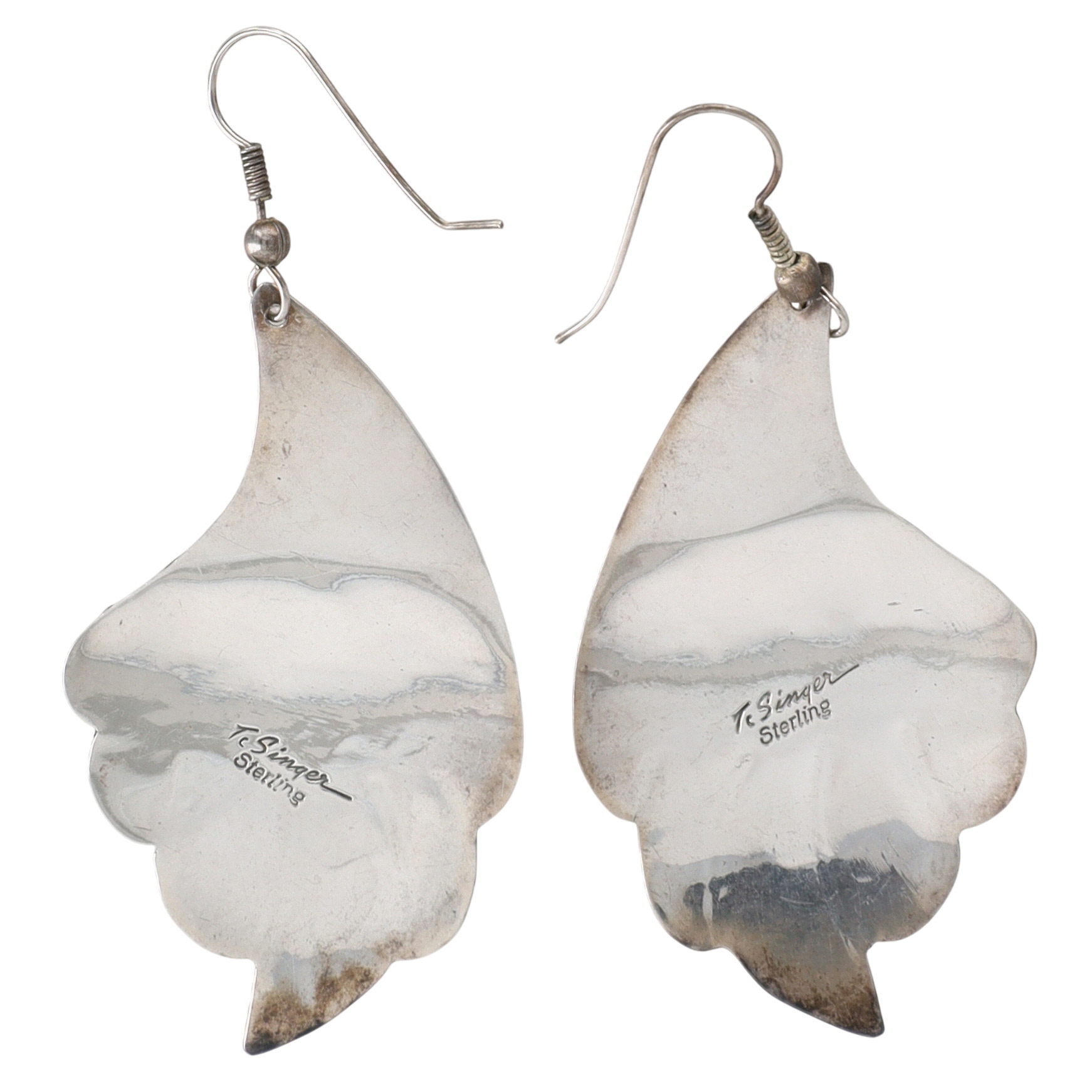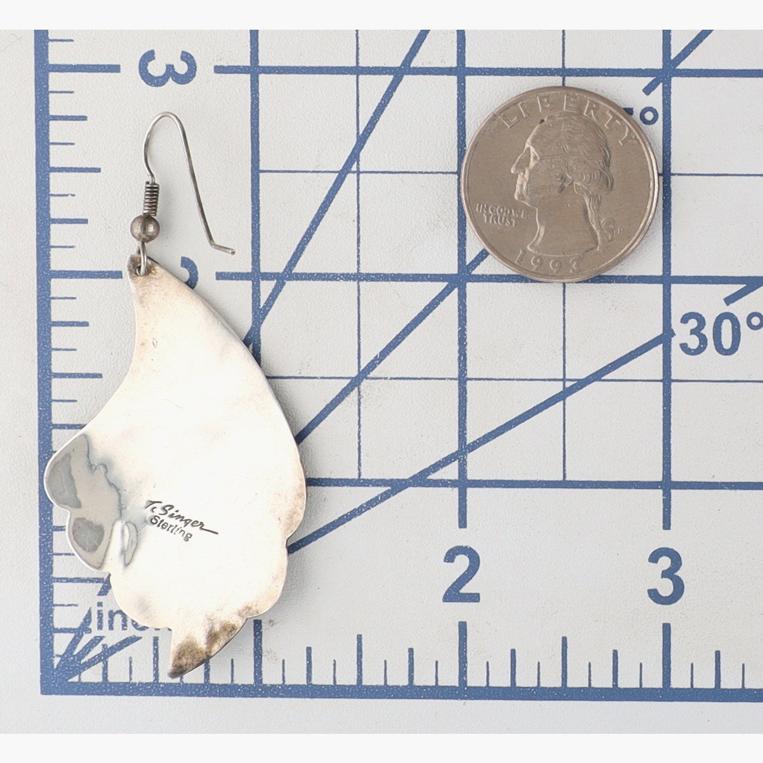 Vintage Thomas Singer Navajo Sterling Overlay Dangle Earrings – 13.9g
