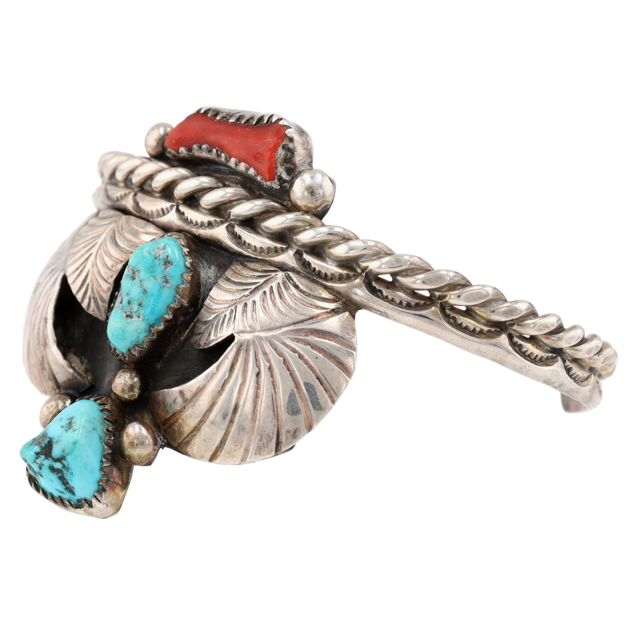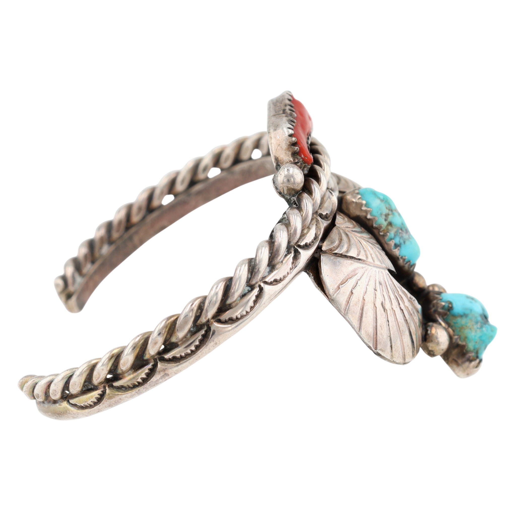 Vintage Navajo Sterling Turquoise and Coral Cuff Bracelet – 23.5g