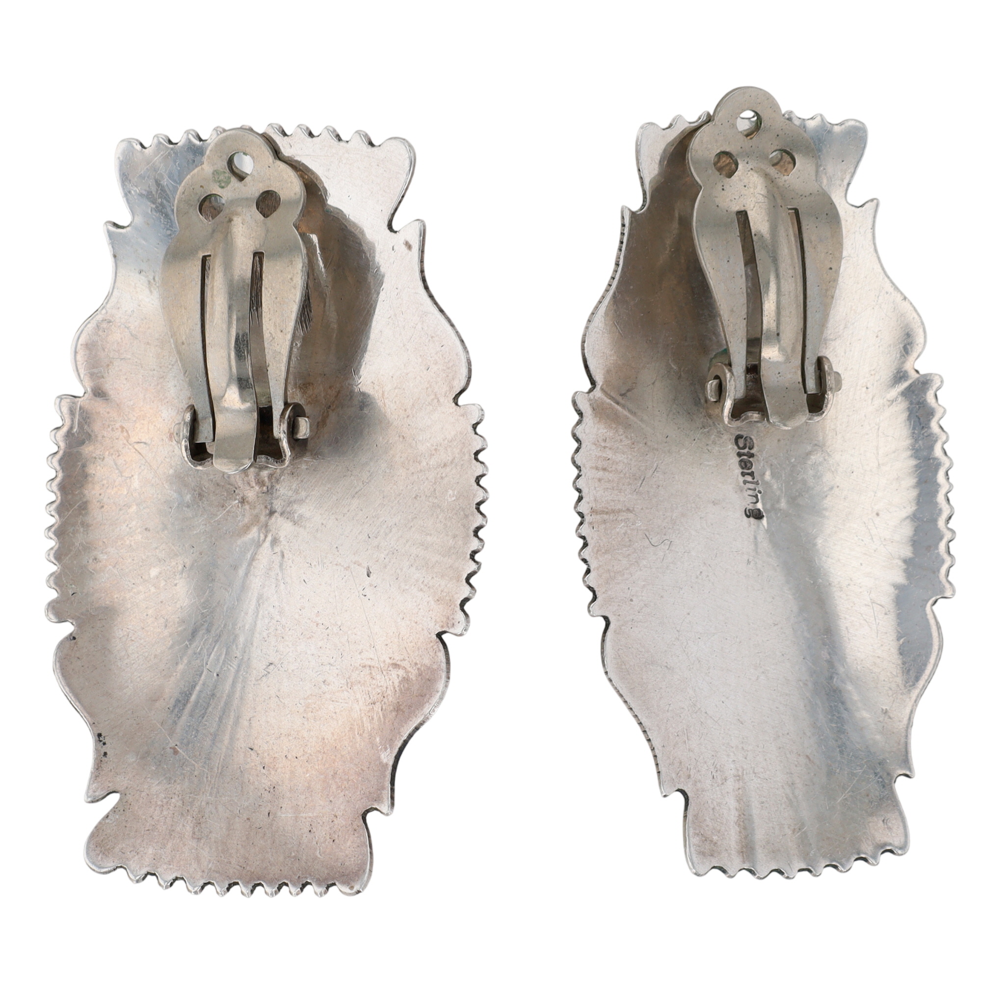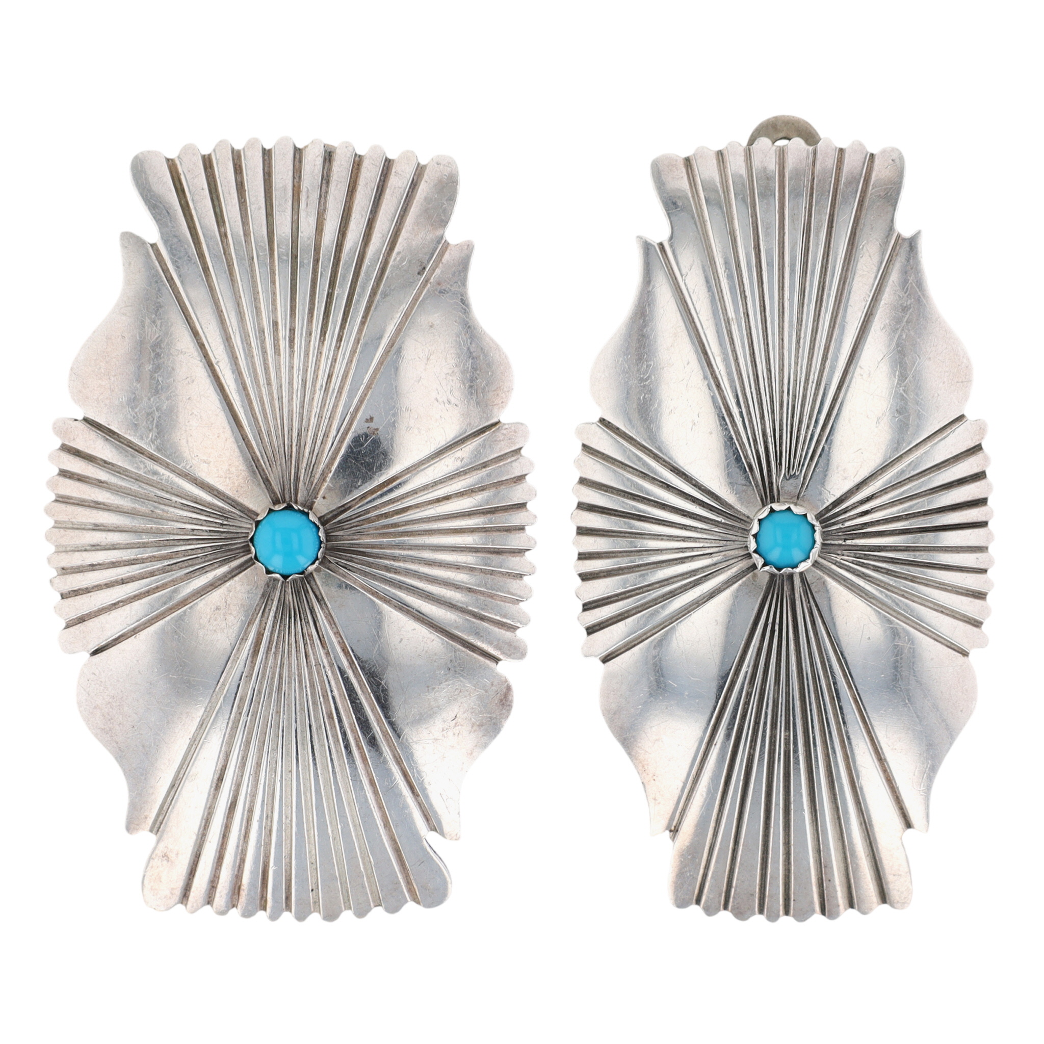 Oversized Navajo Sterling Sleeping Beauty Turquoise Concho-Style Earrings – 14.6g
