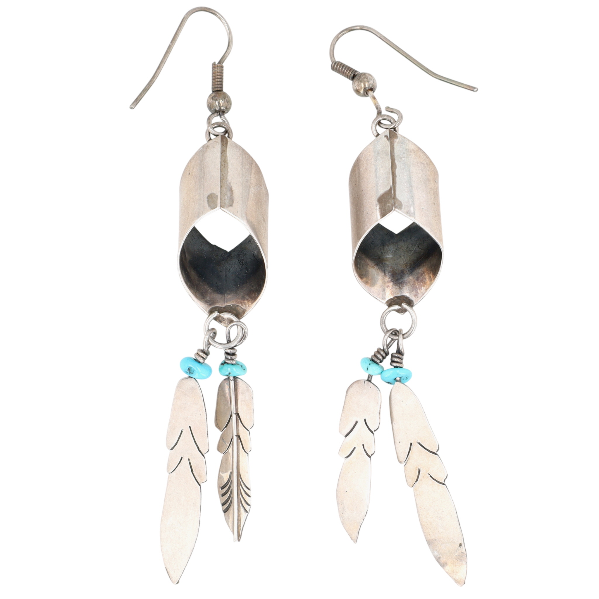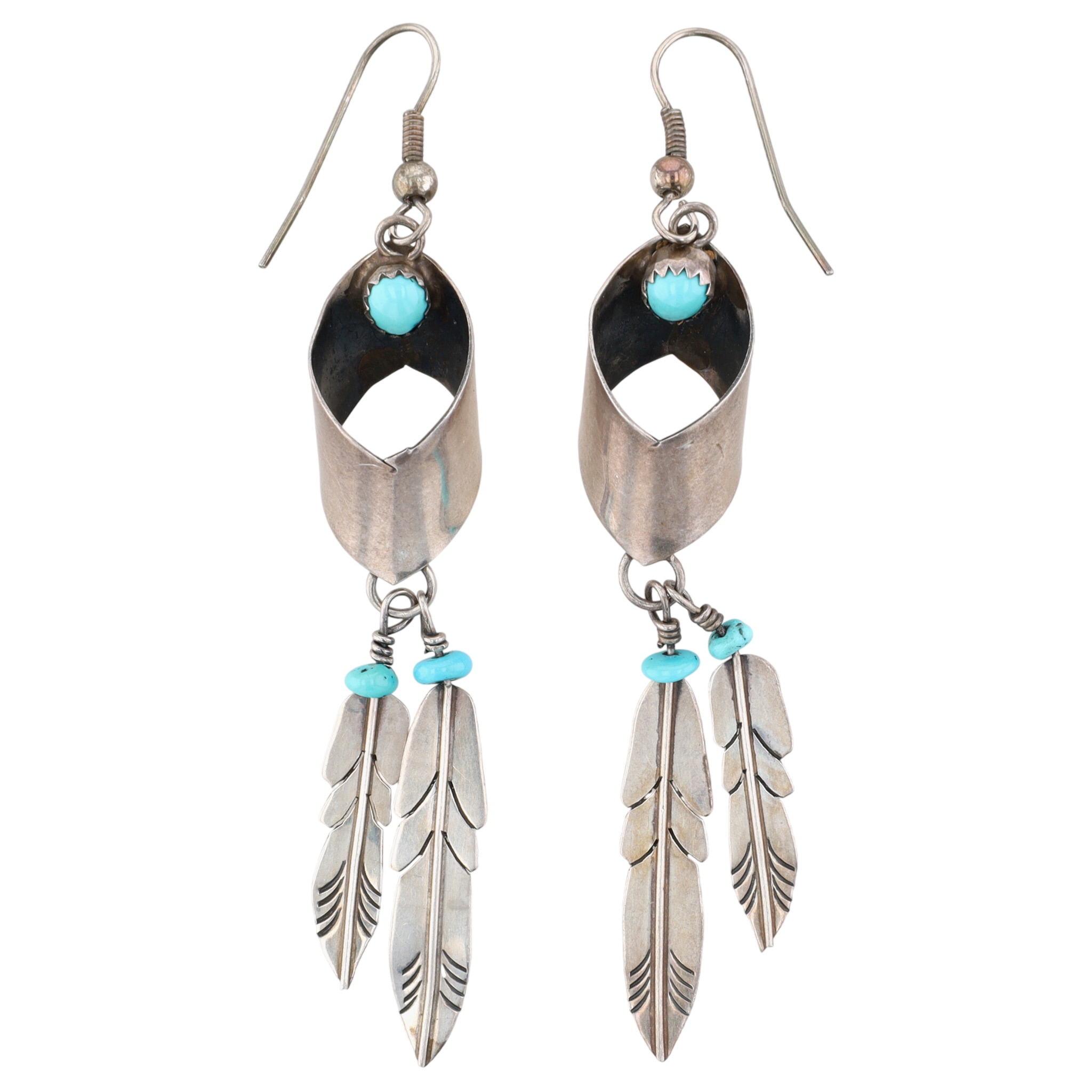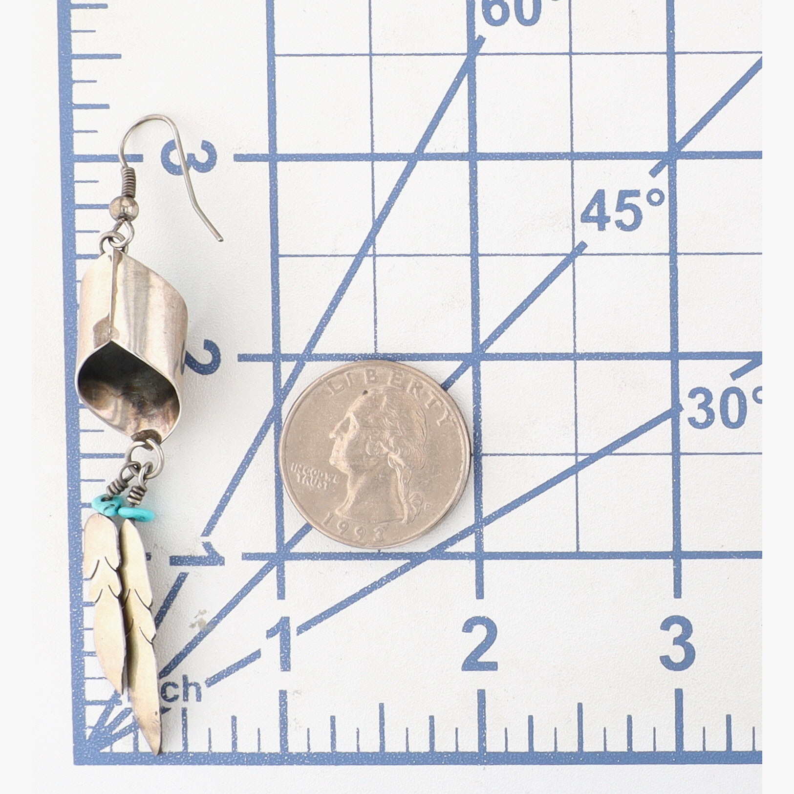 Navajo Sterling and Turquoise Feather Dangle Earrings – 8.6g