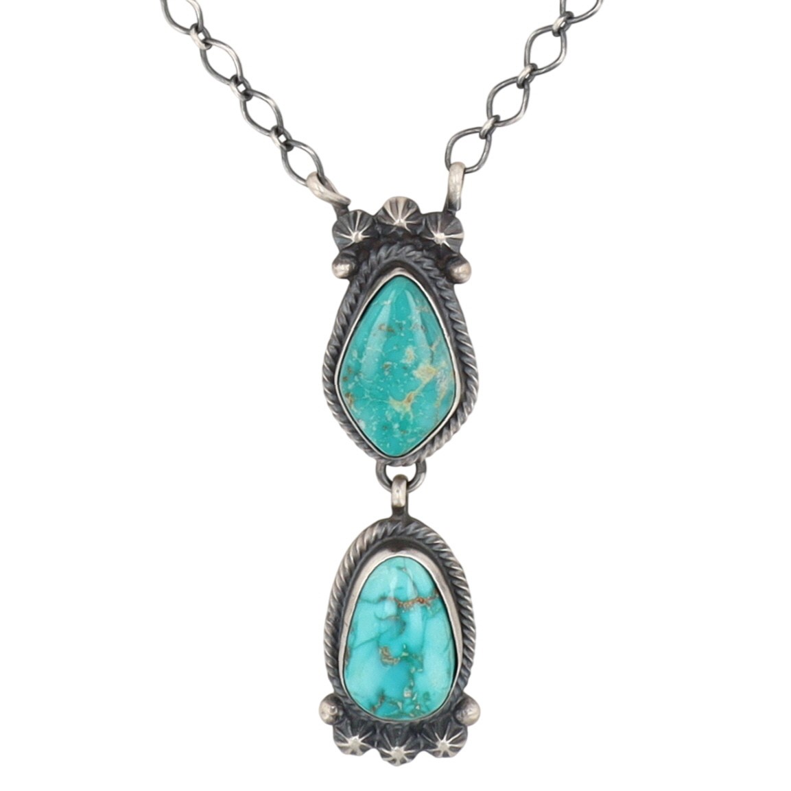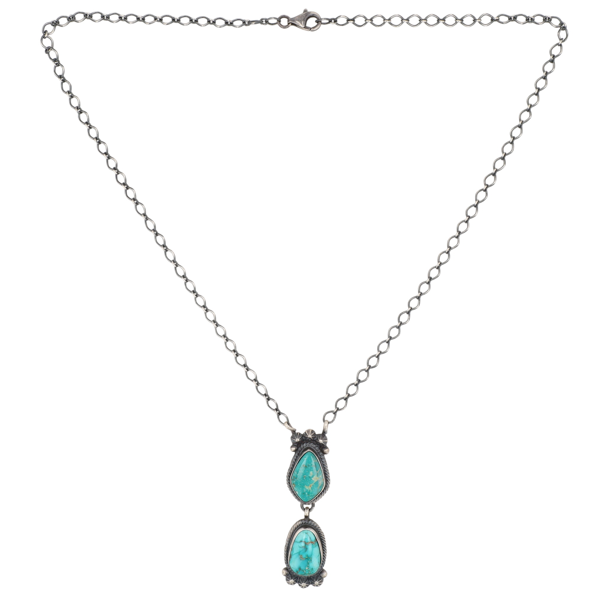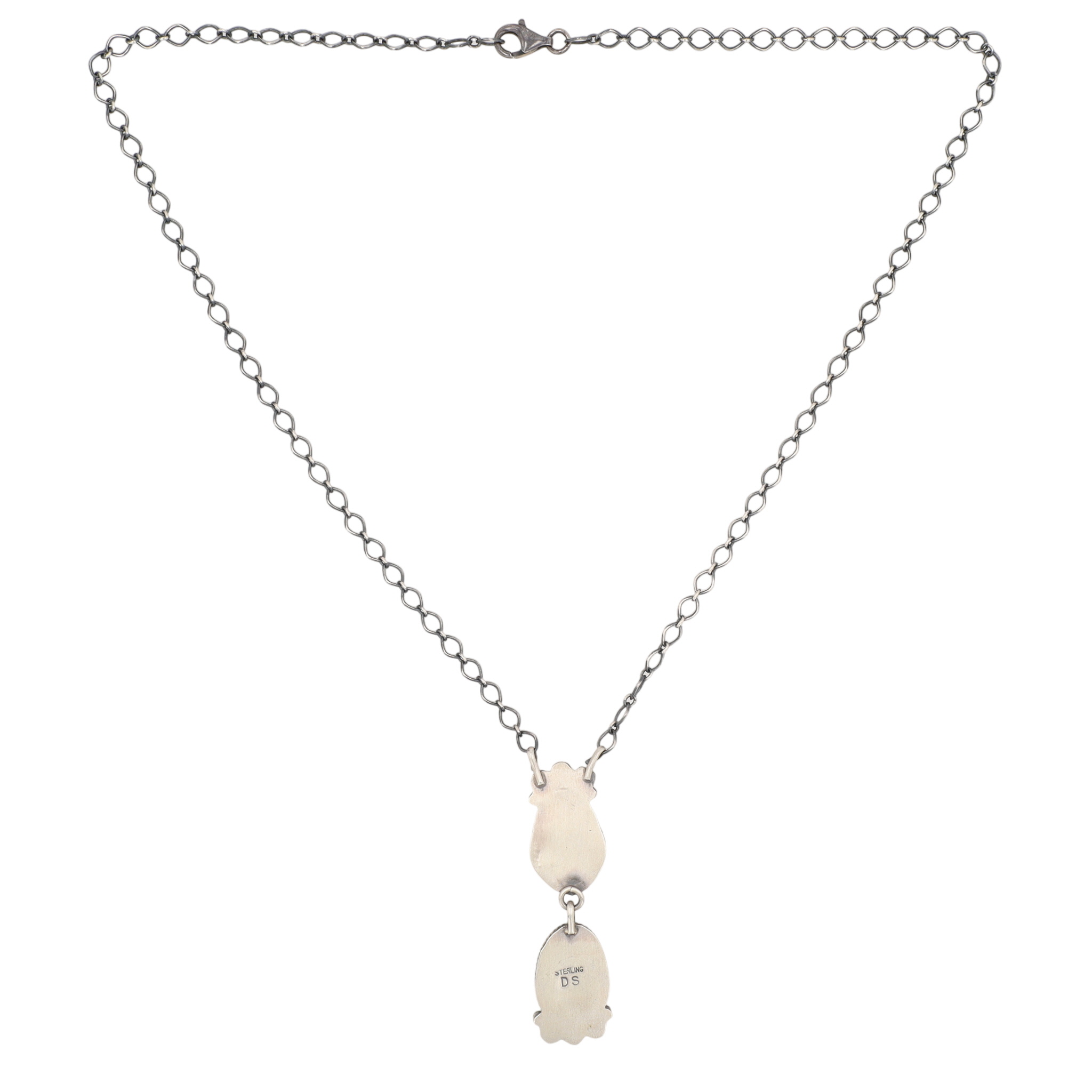 Signed DS Navajo Sterling Turquoise Drop Necklace – 13.9g – approx. 19″, pendant approx. 2.3″ tall