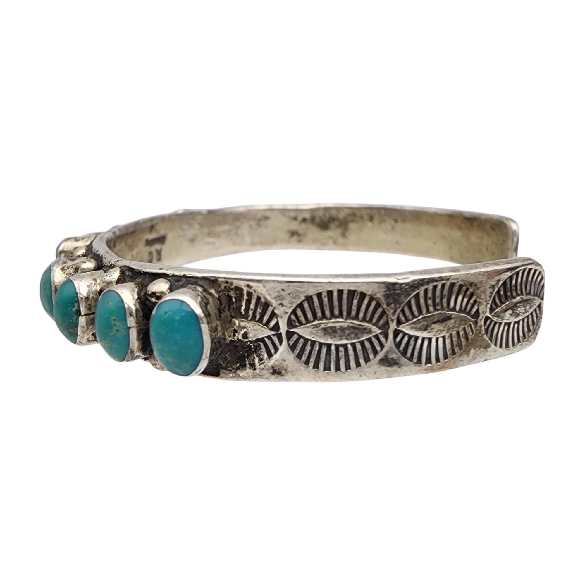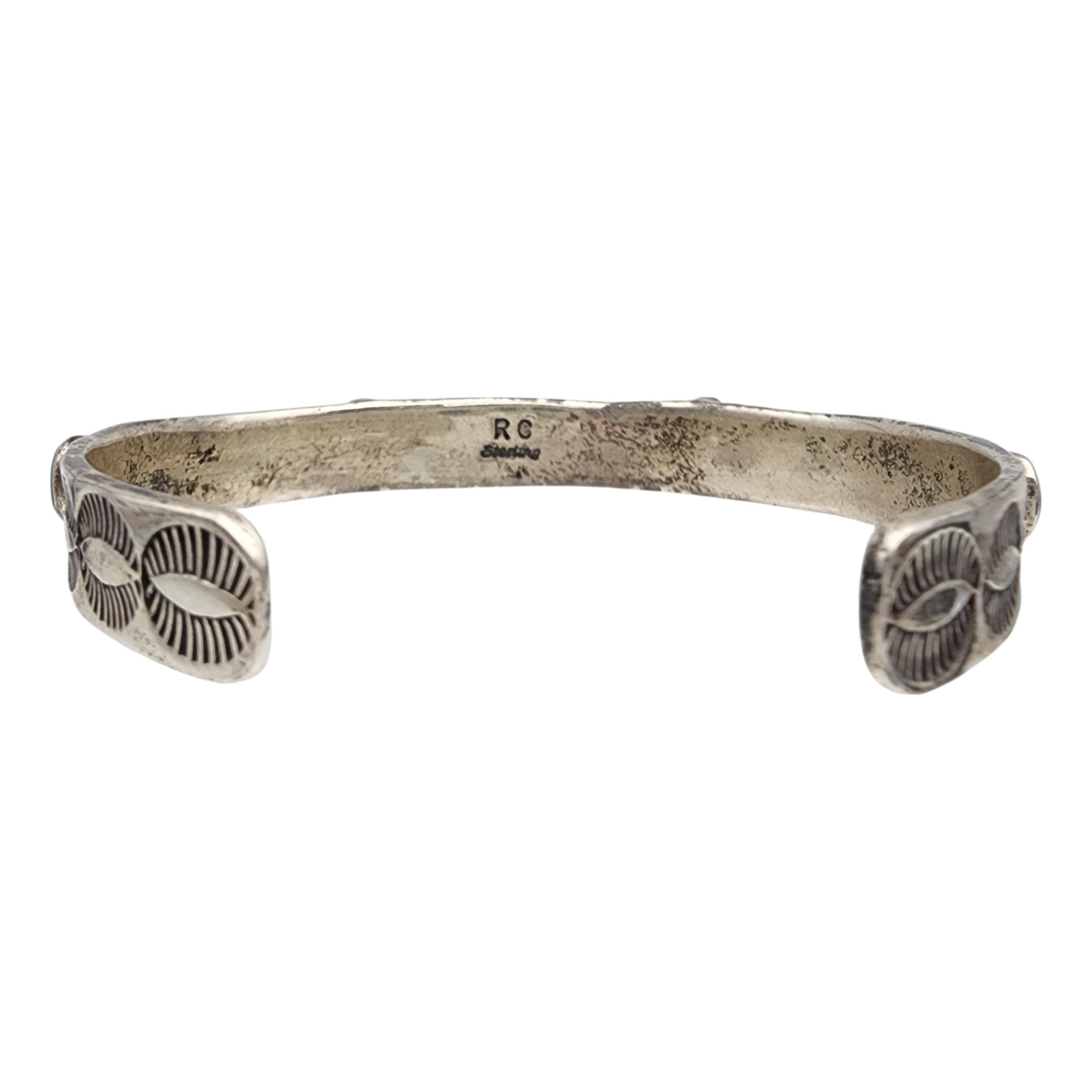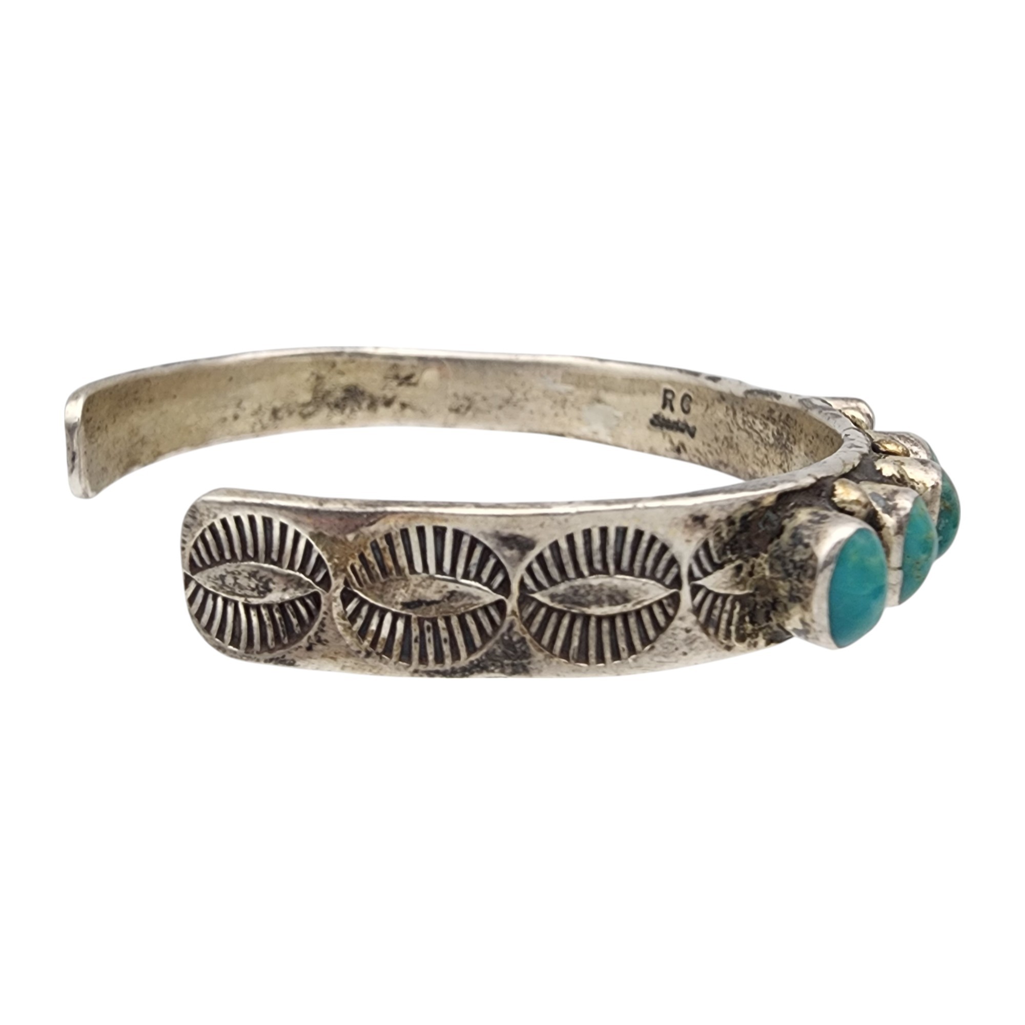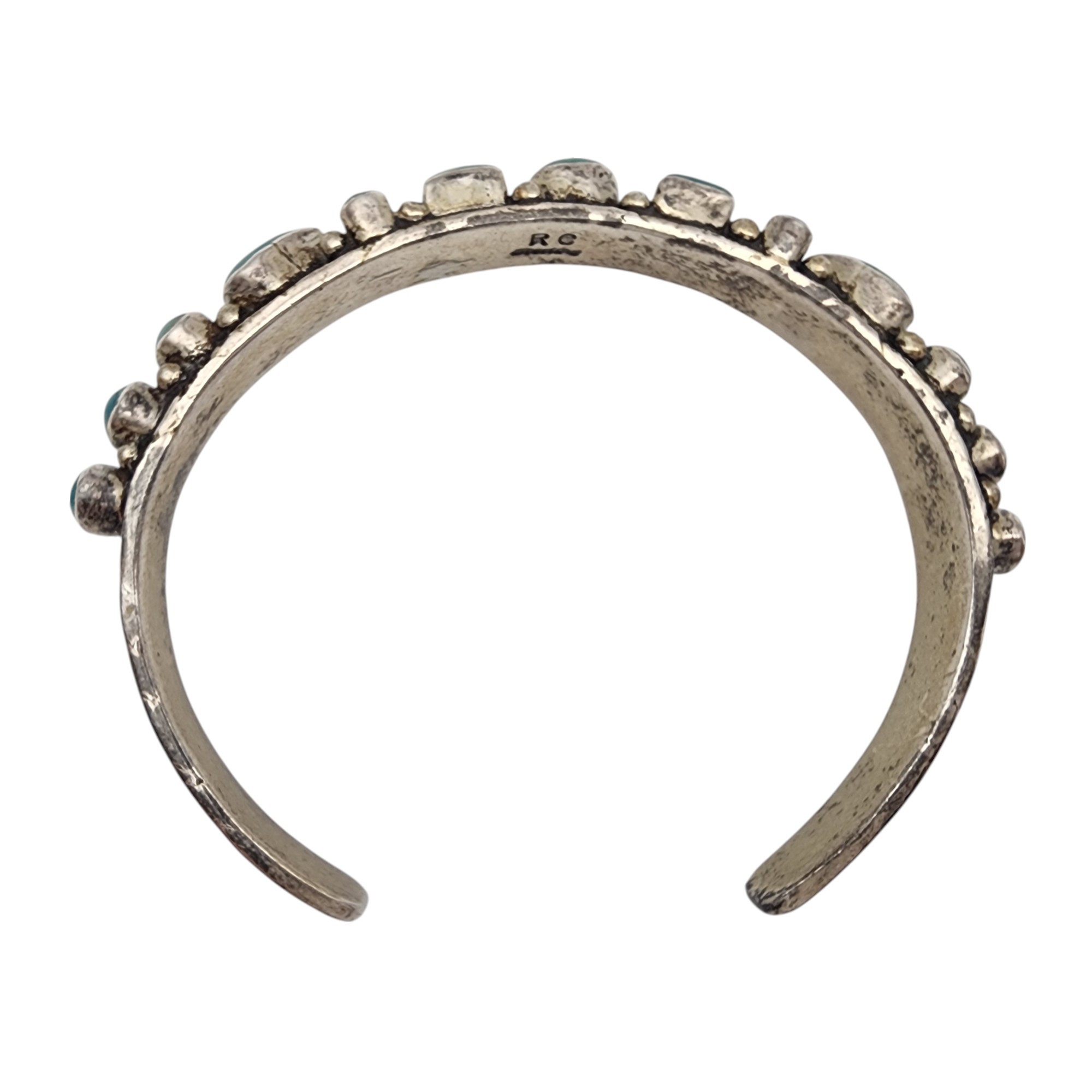 Beautiful! Signed RC Navajo Sterling Turquoise Cluster Stamped Cuff Bracelet | 26.2g