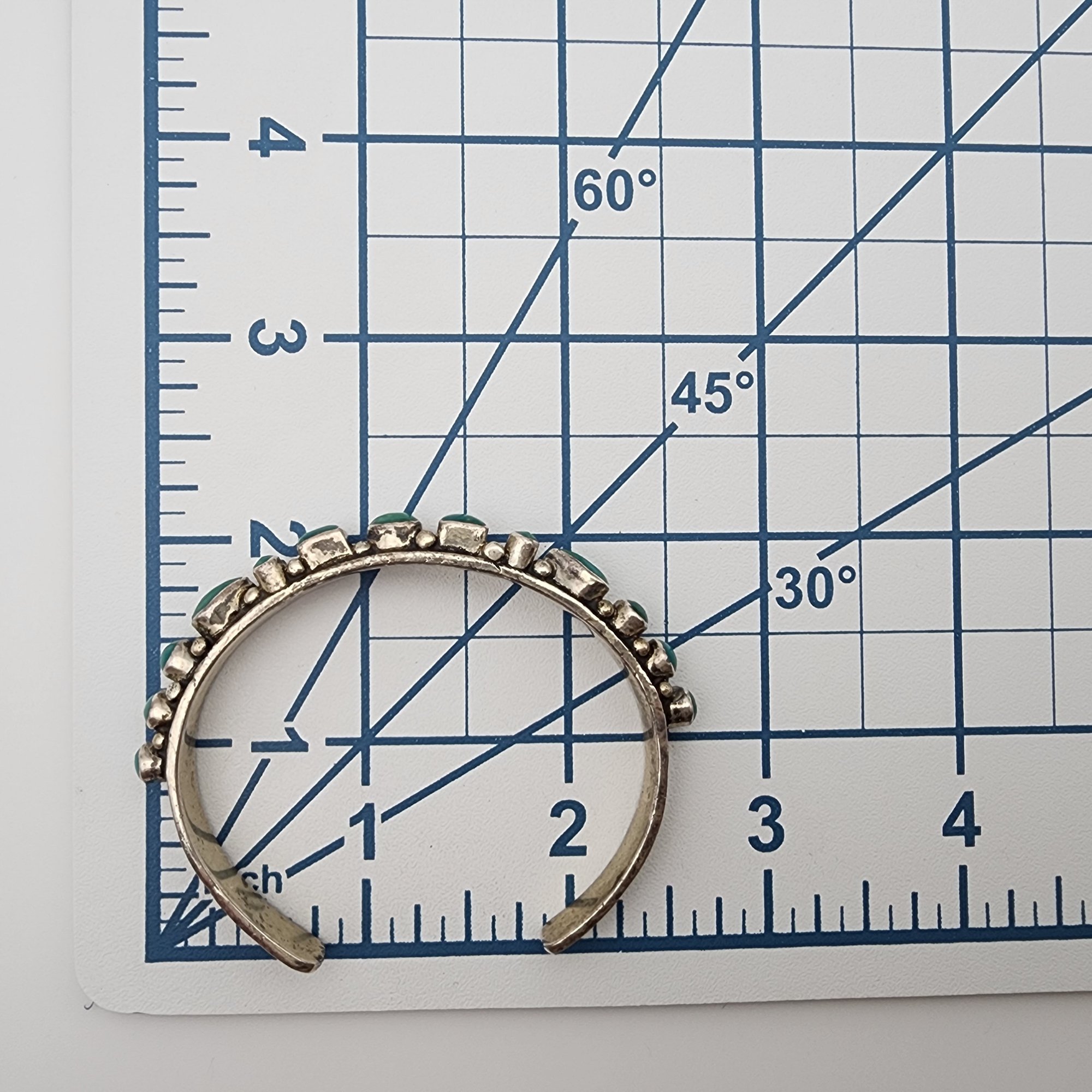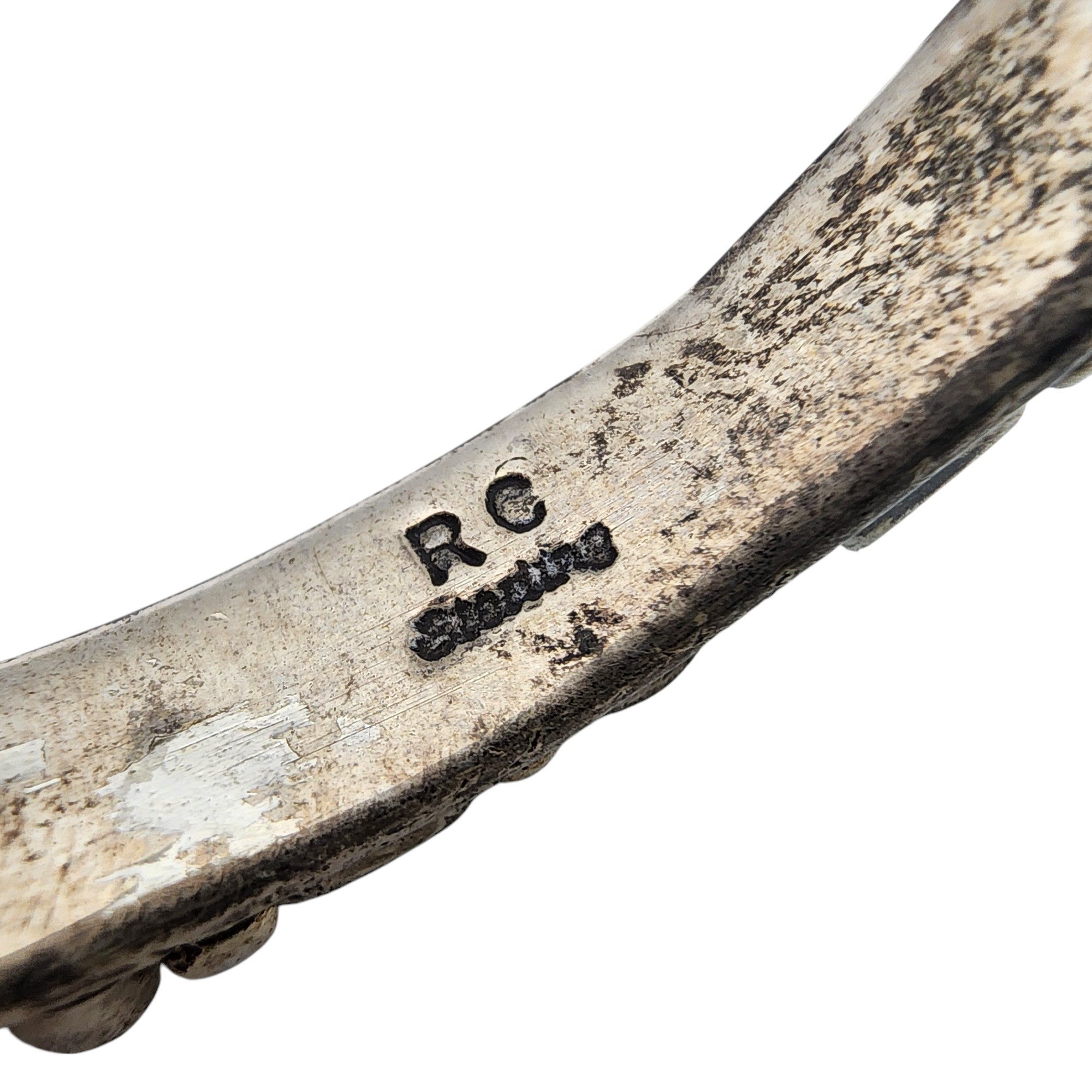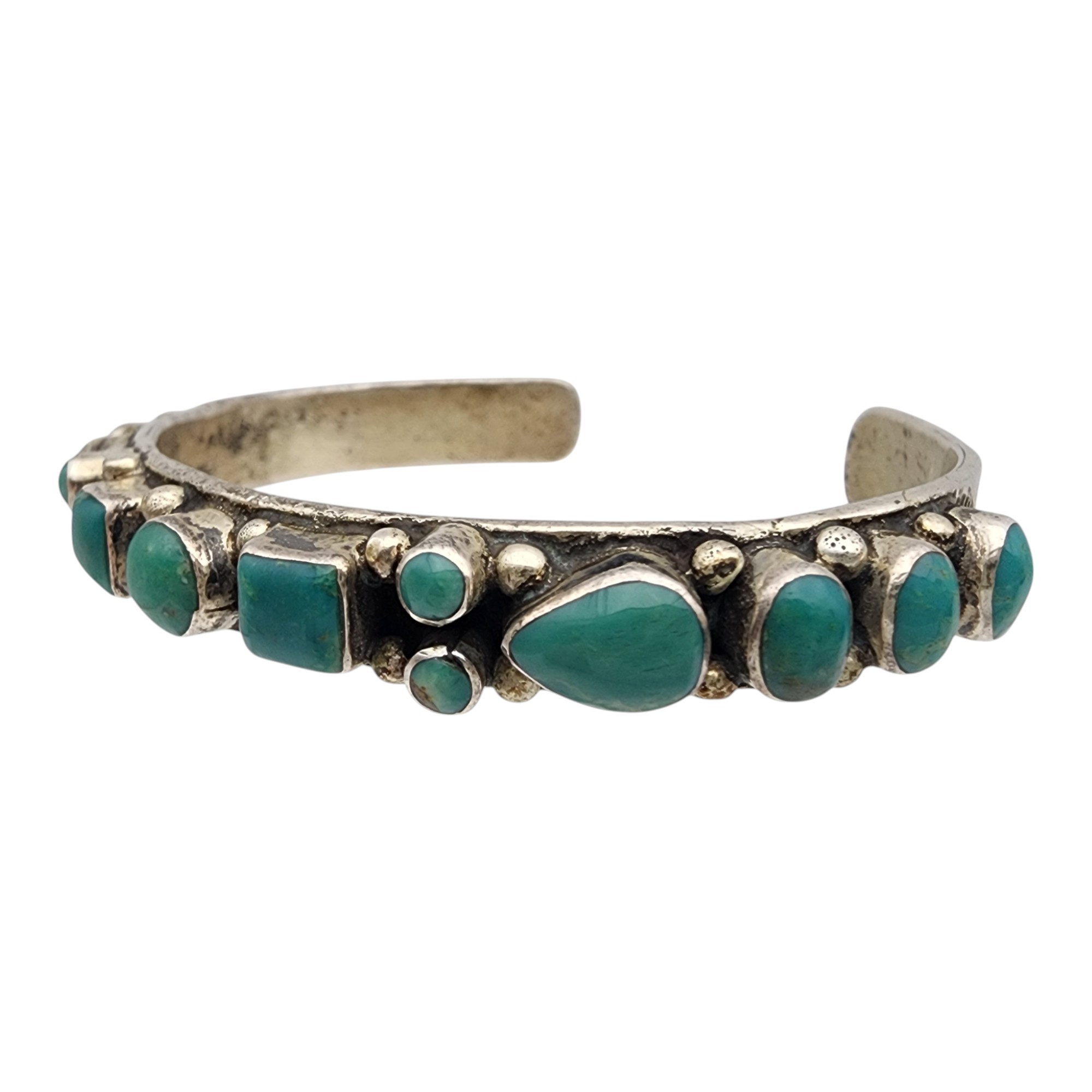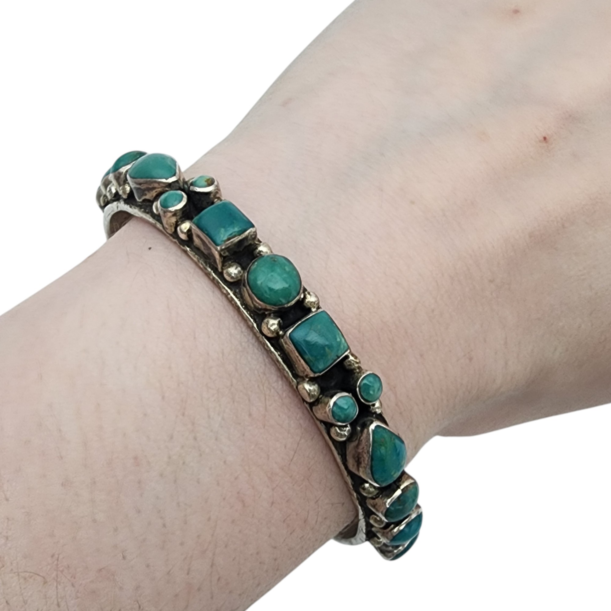 Beautiful! Signed RC Navajo Sterling Turquoise Cluster Stamped Cuff Bracelet | 26.2g