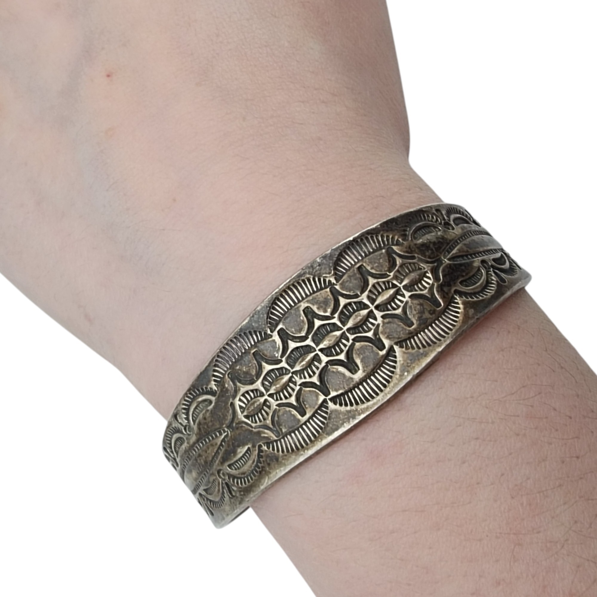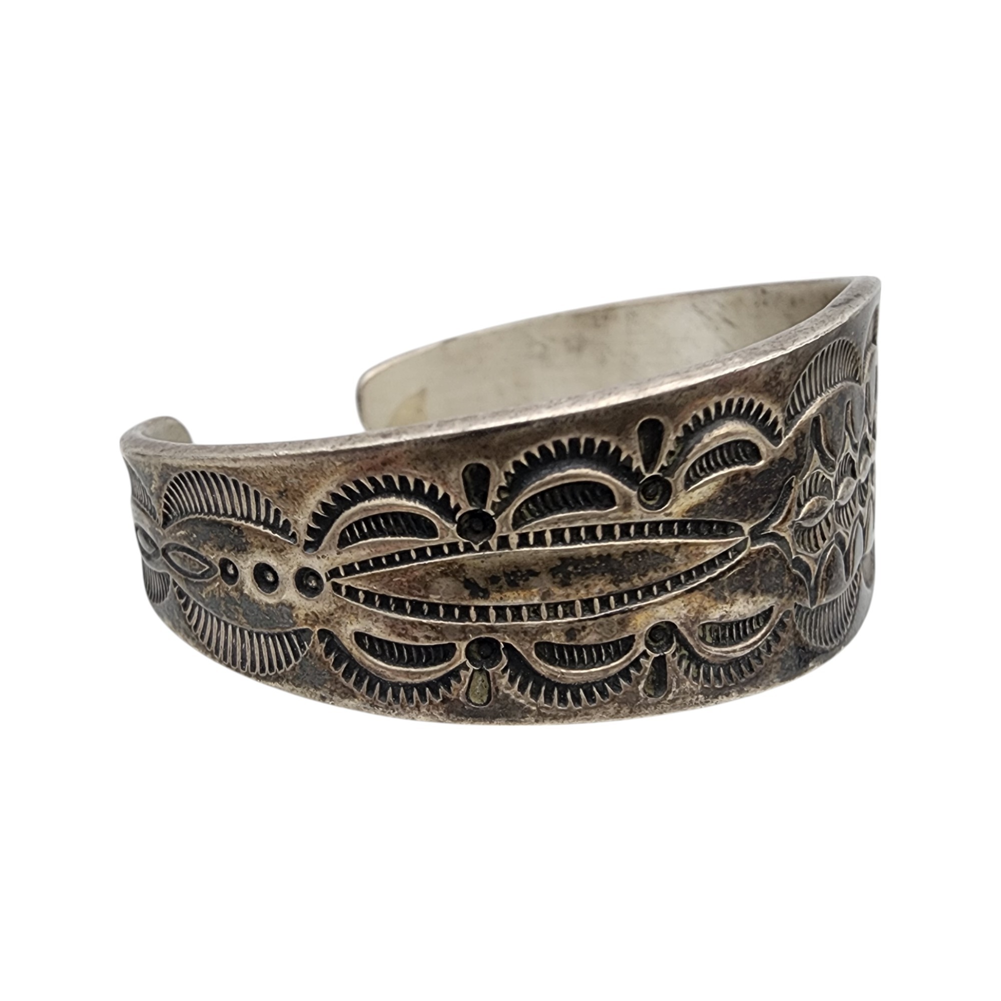 Vintage Navajo Sterling Stamped Cuff Bracelet | 29.9g