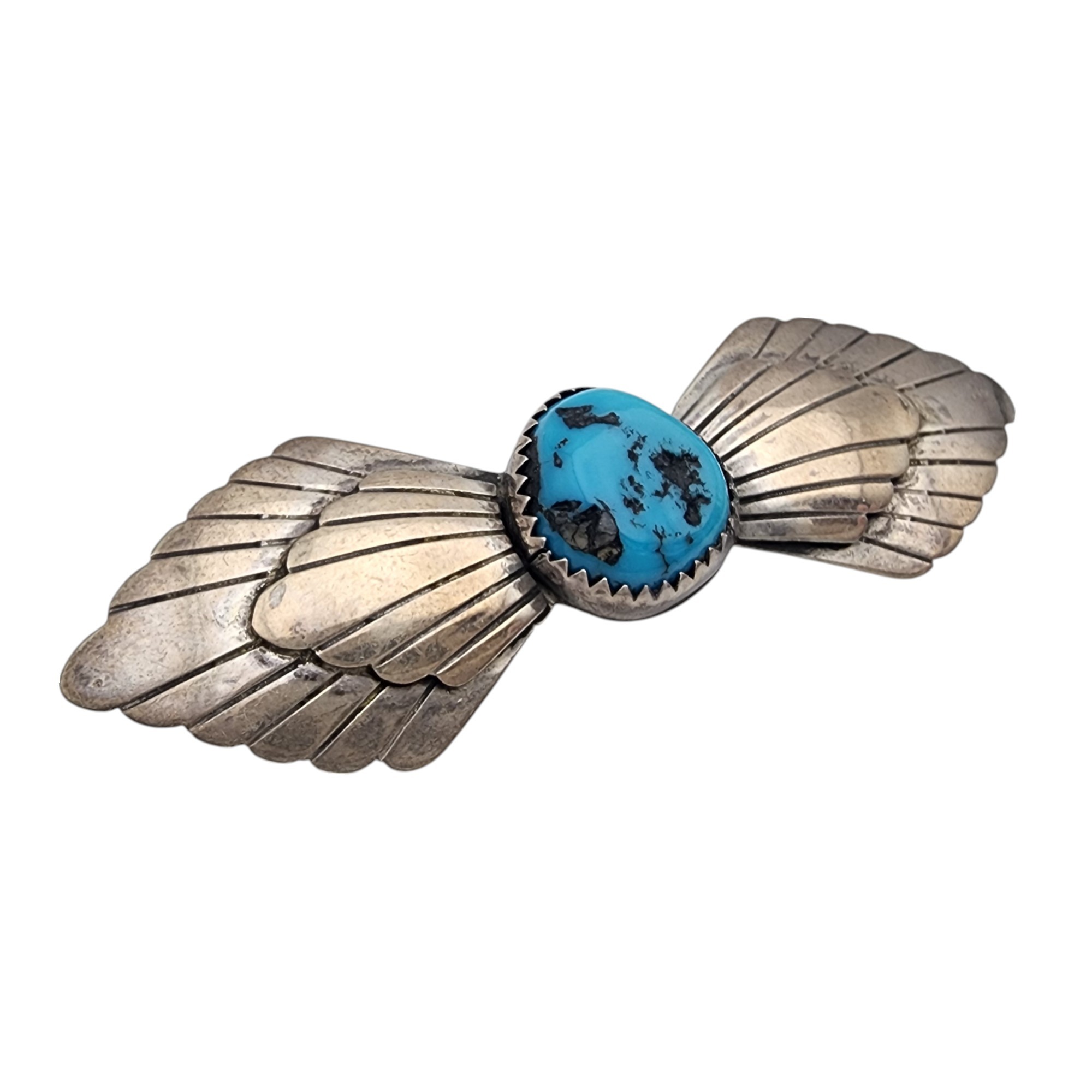 Johnny Johnson Navajo Sterling Turquoise Bow Brooch | 7.3g