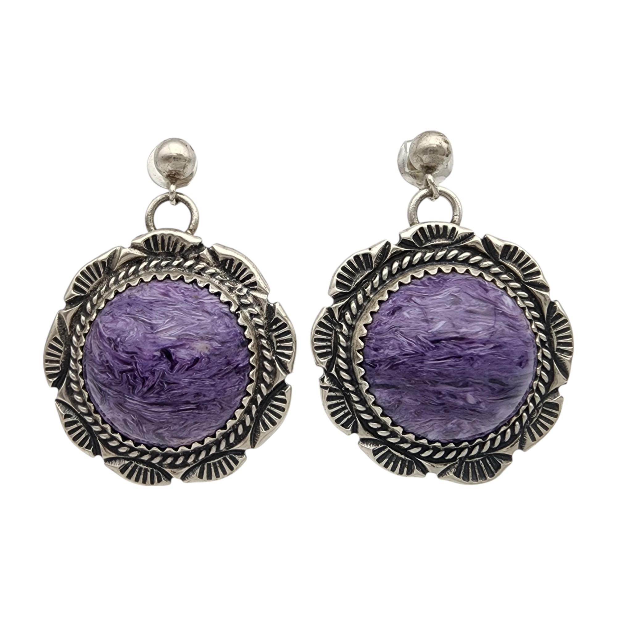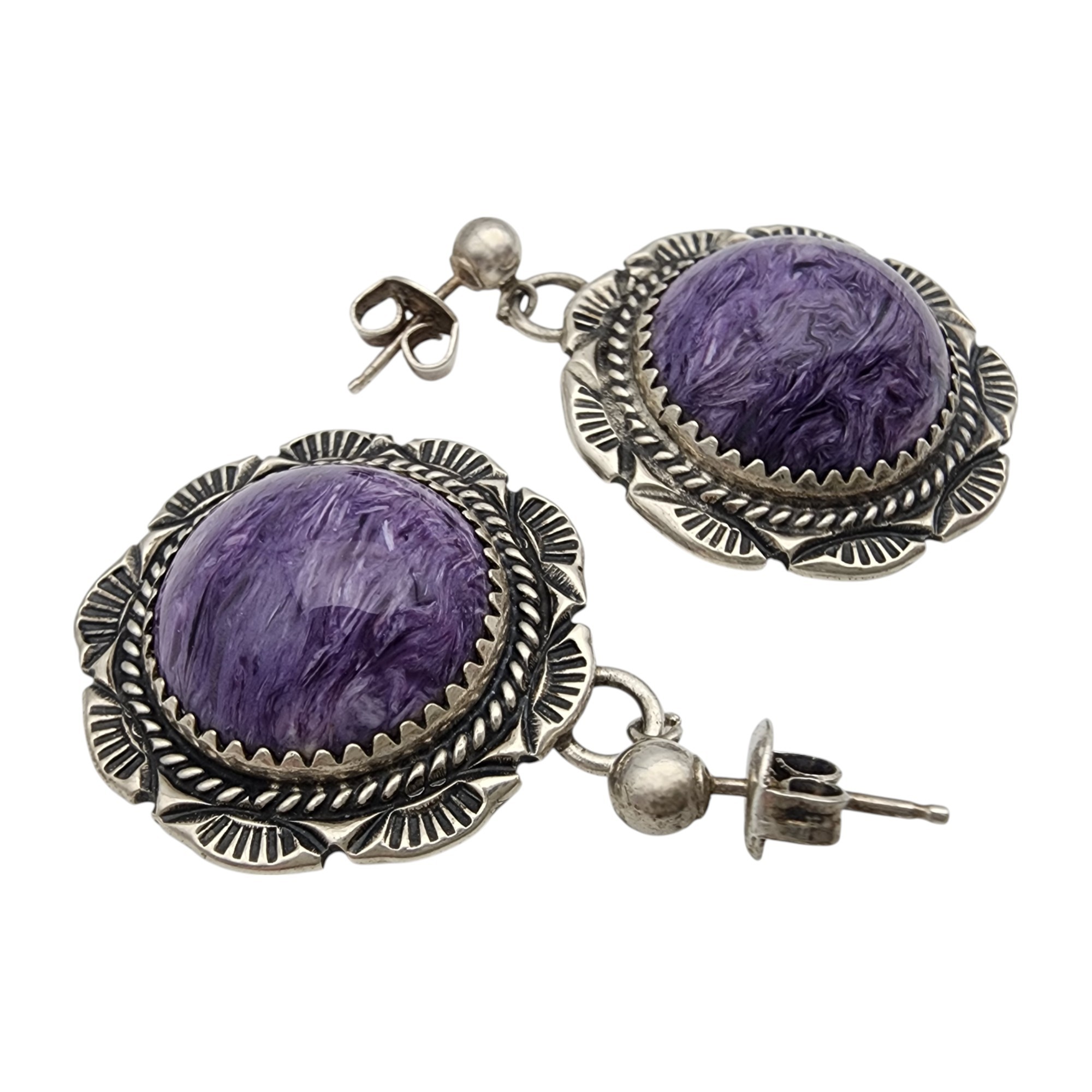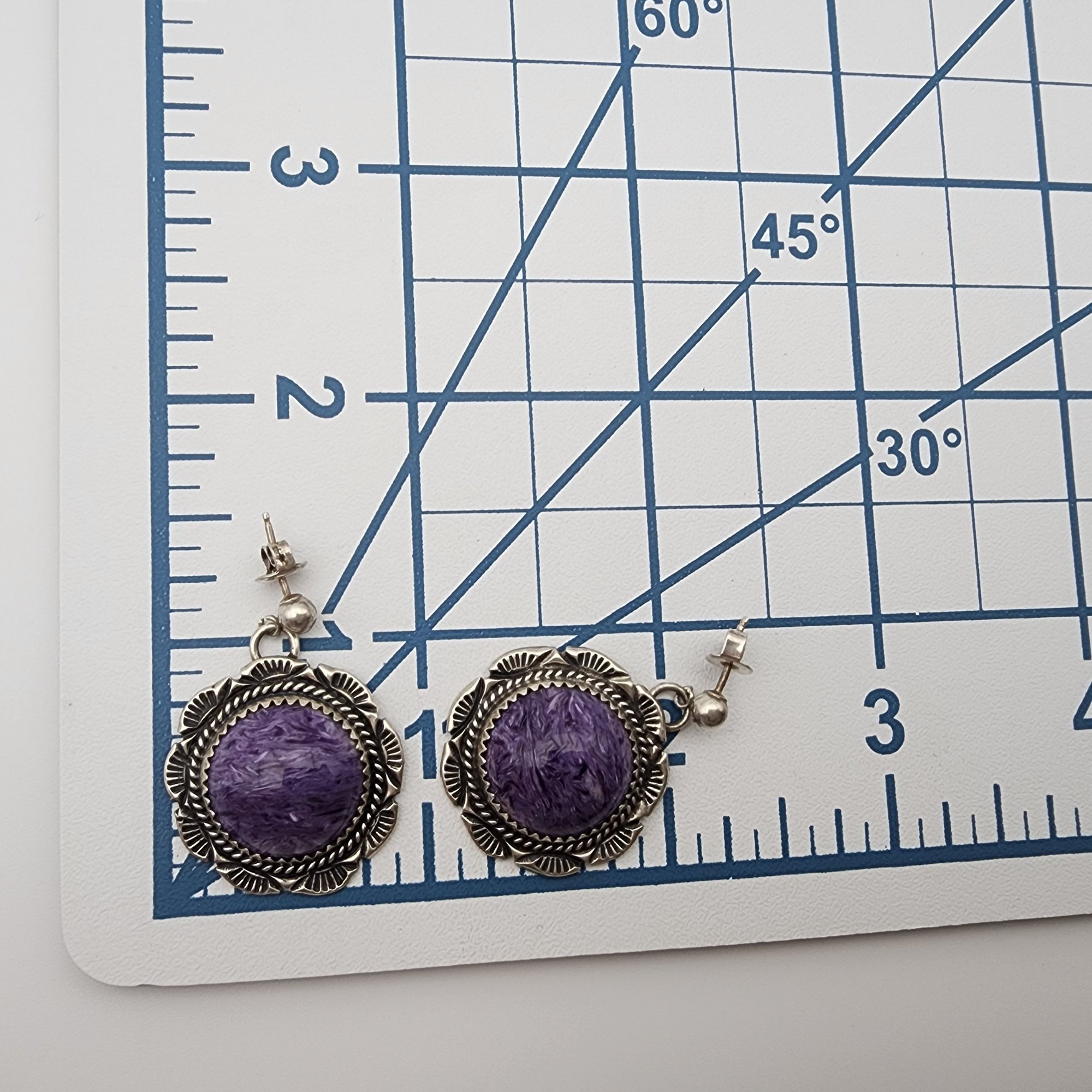 Signed RB Navajo Sterling Charoite Earrings | 11.1g