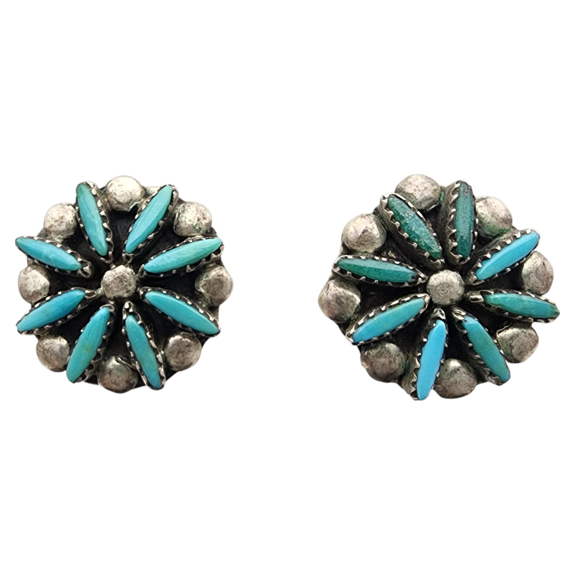 Vintage Zuni Sterling Turquoise Needlepoint Earrings | 3.8g