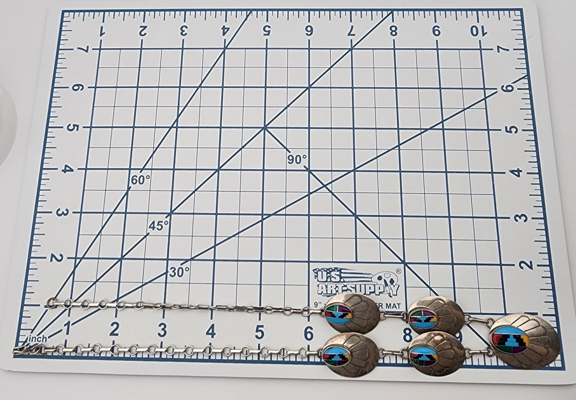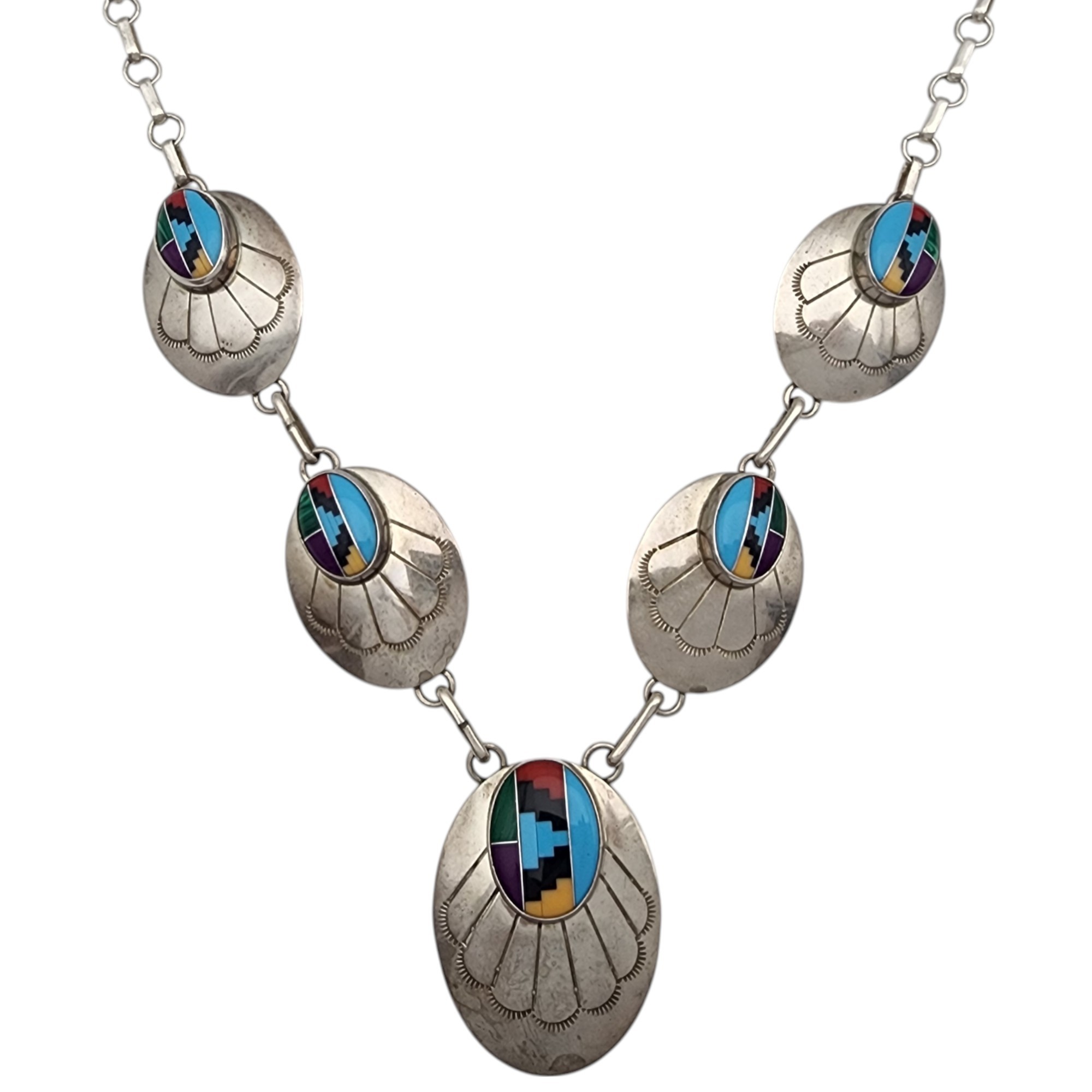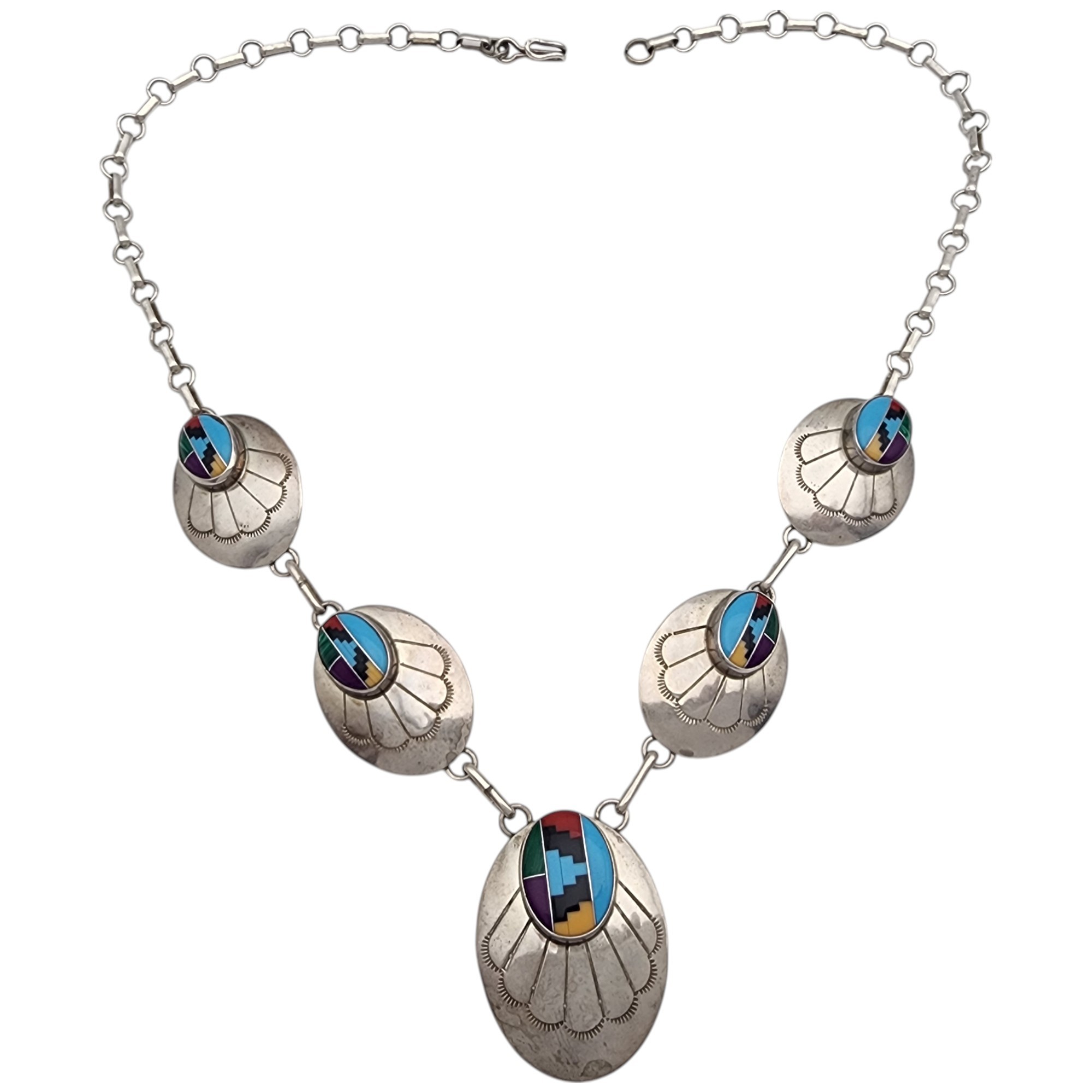 Navajo Sterling Multistone Inlay Concho Necklace | 24.4g