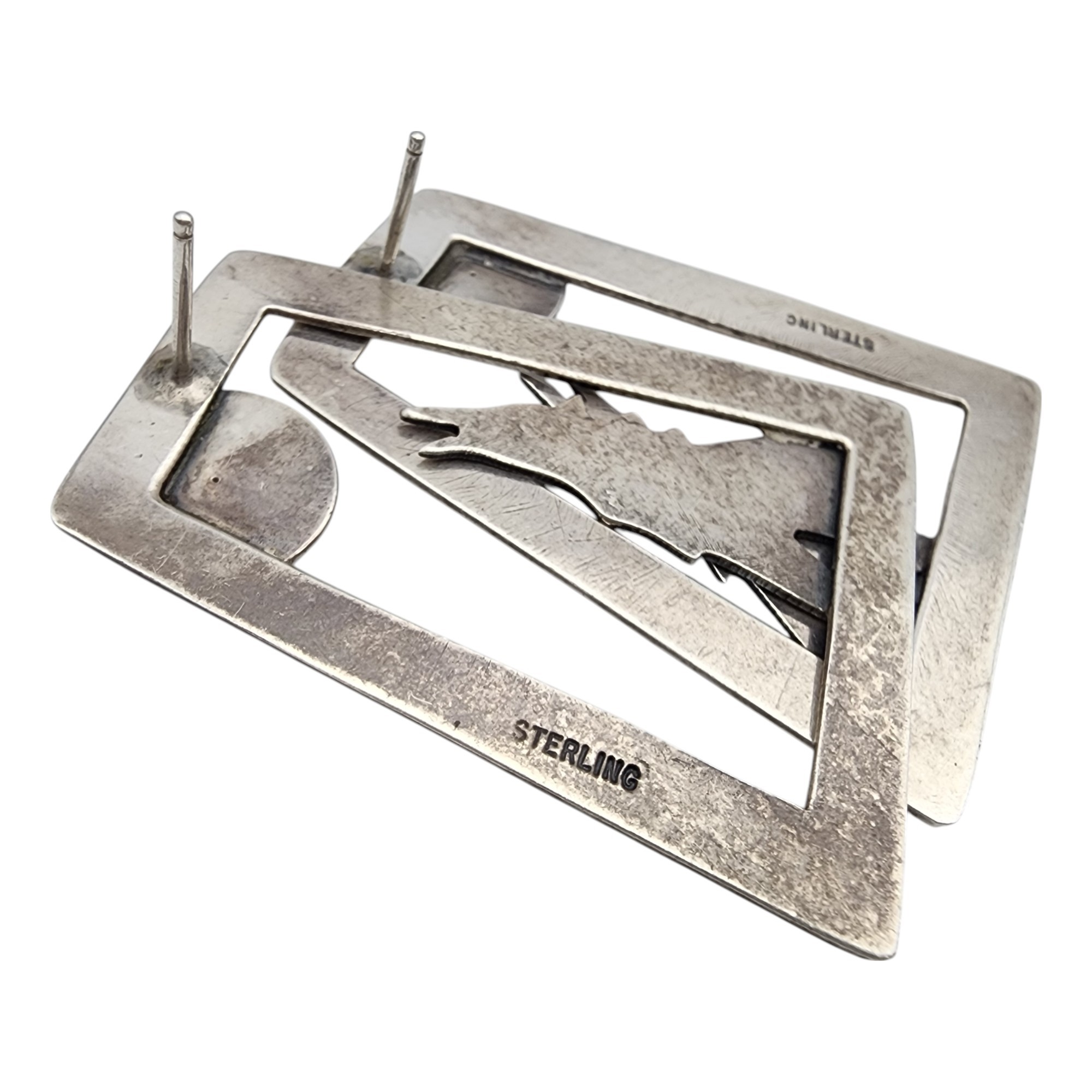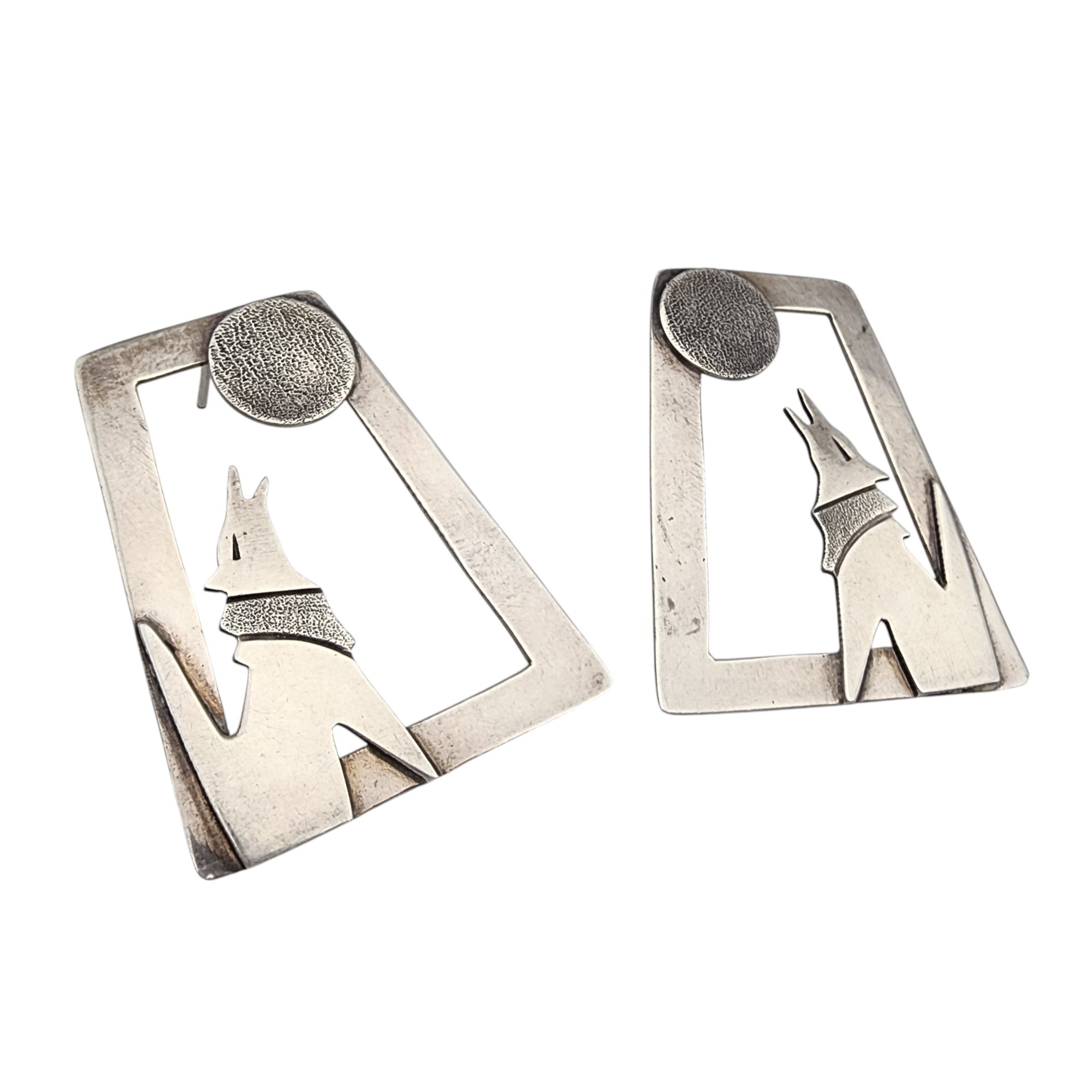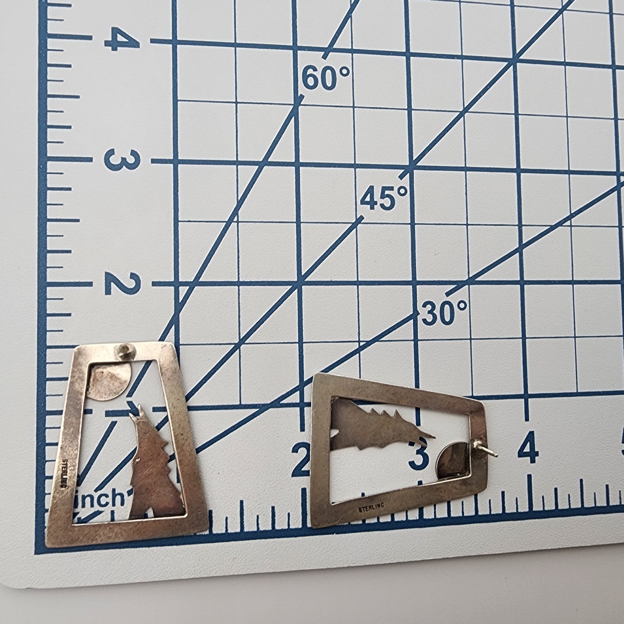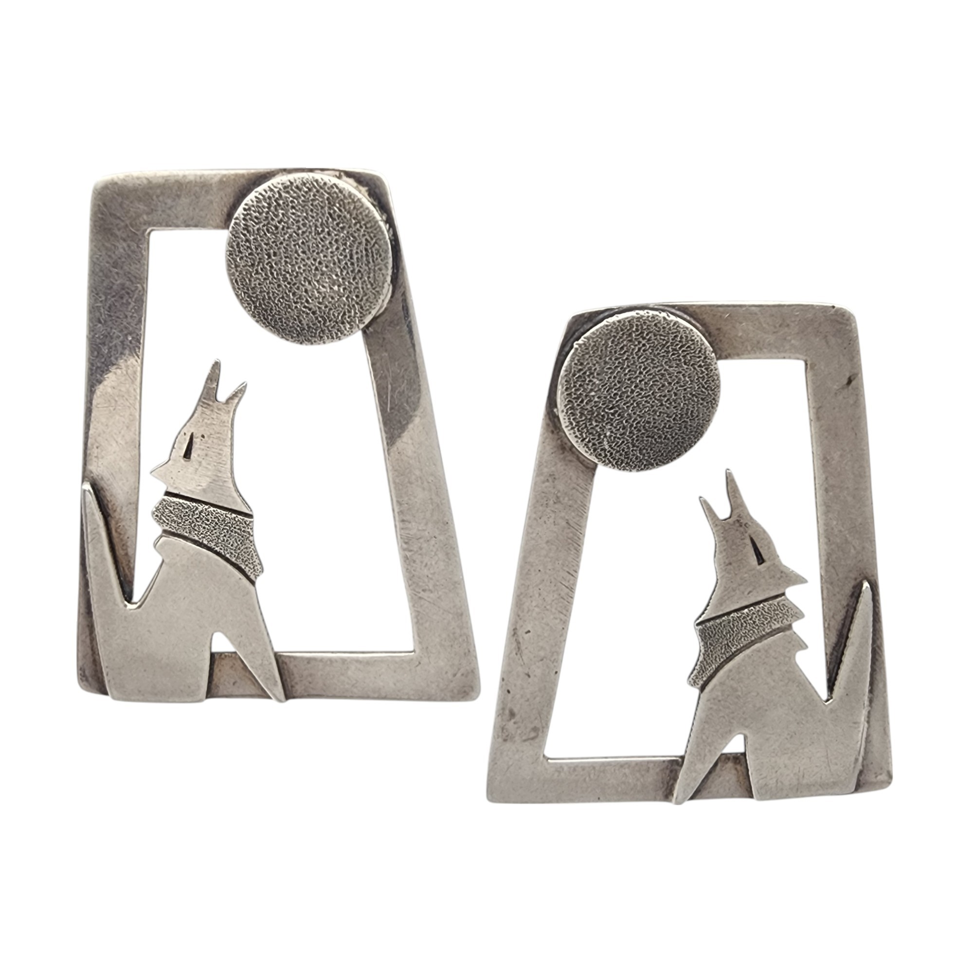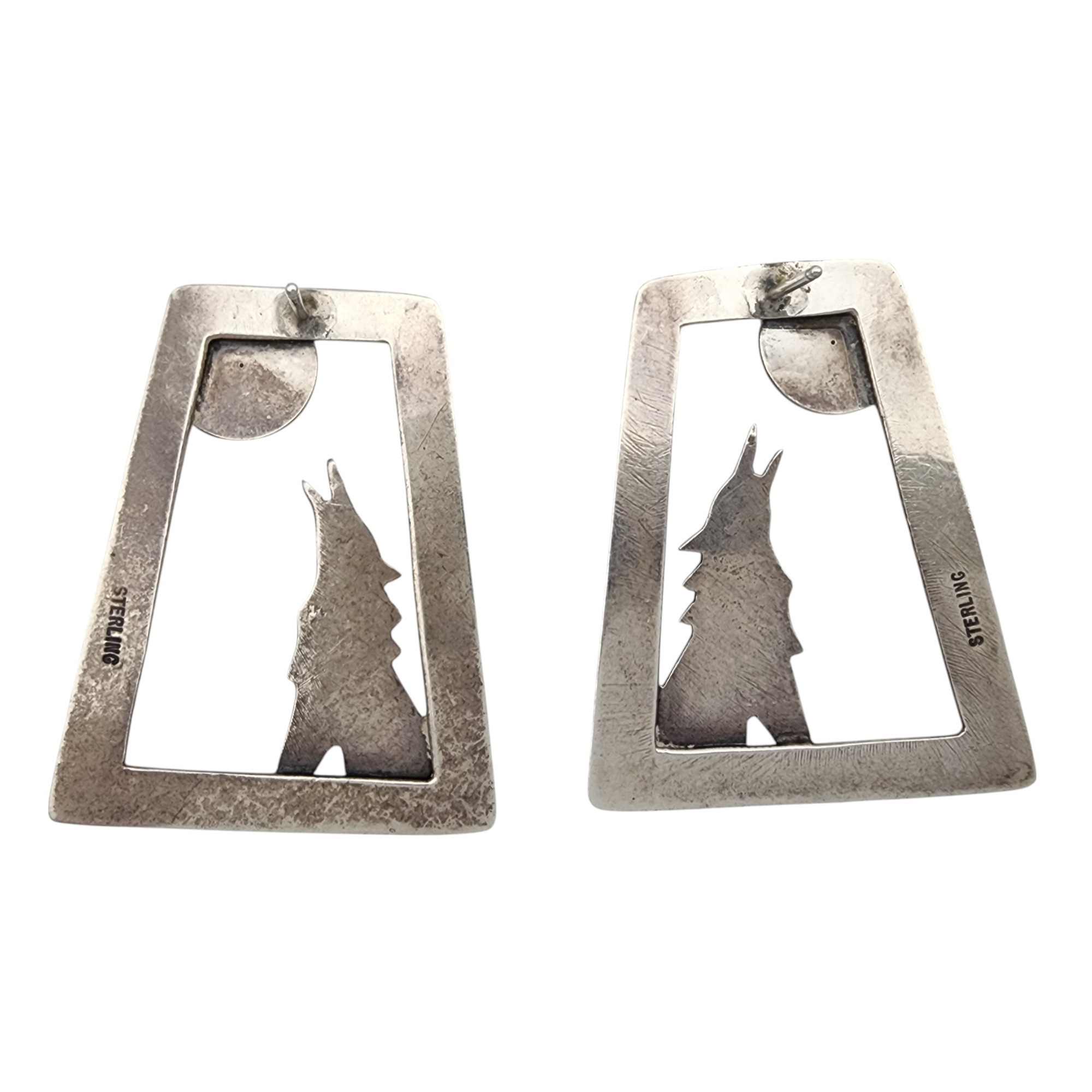 Navajo Sterling Howling Wolf and Moon Earrings | 9.9g