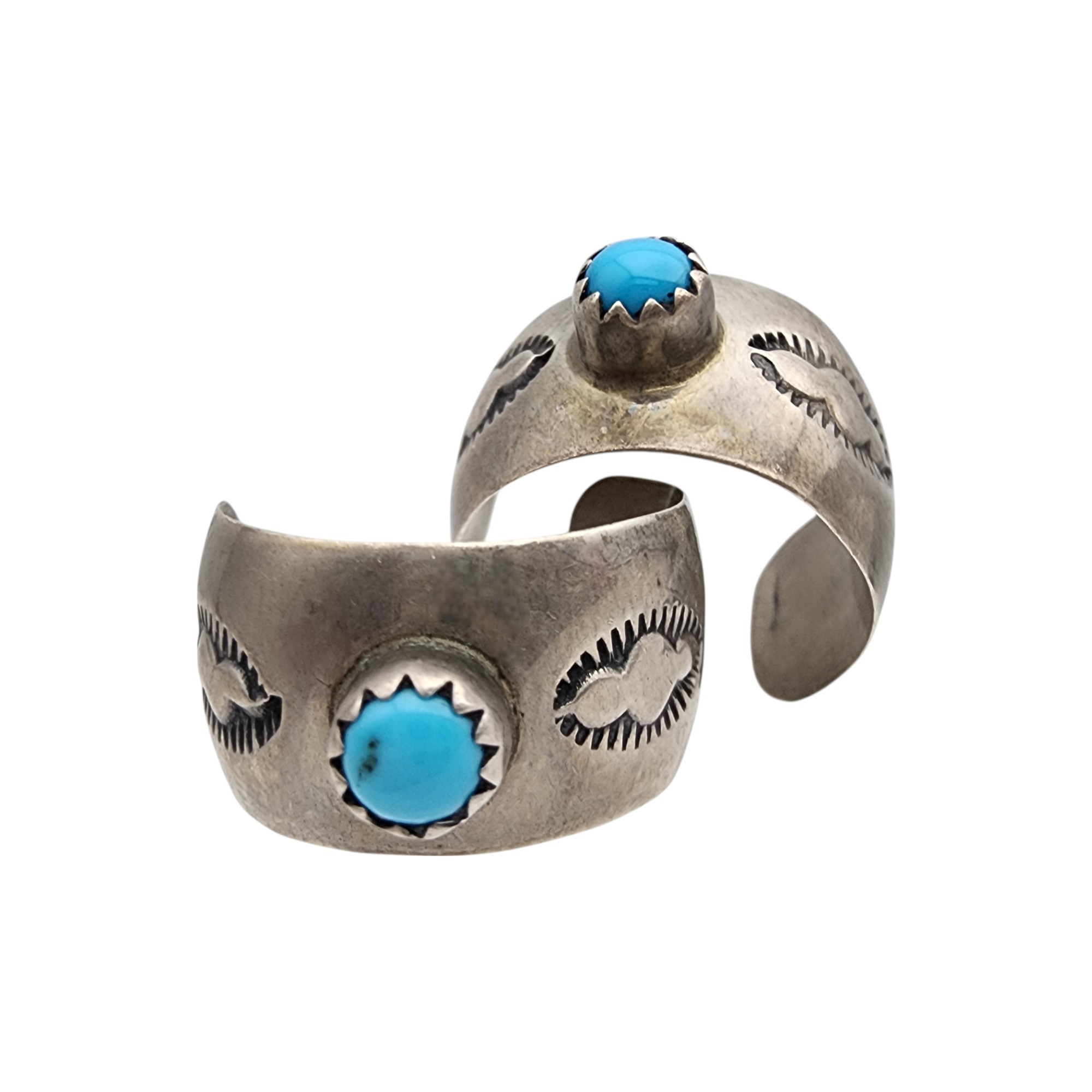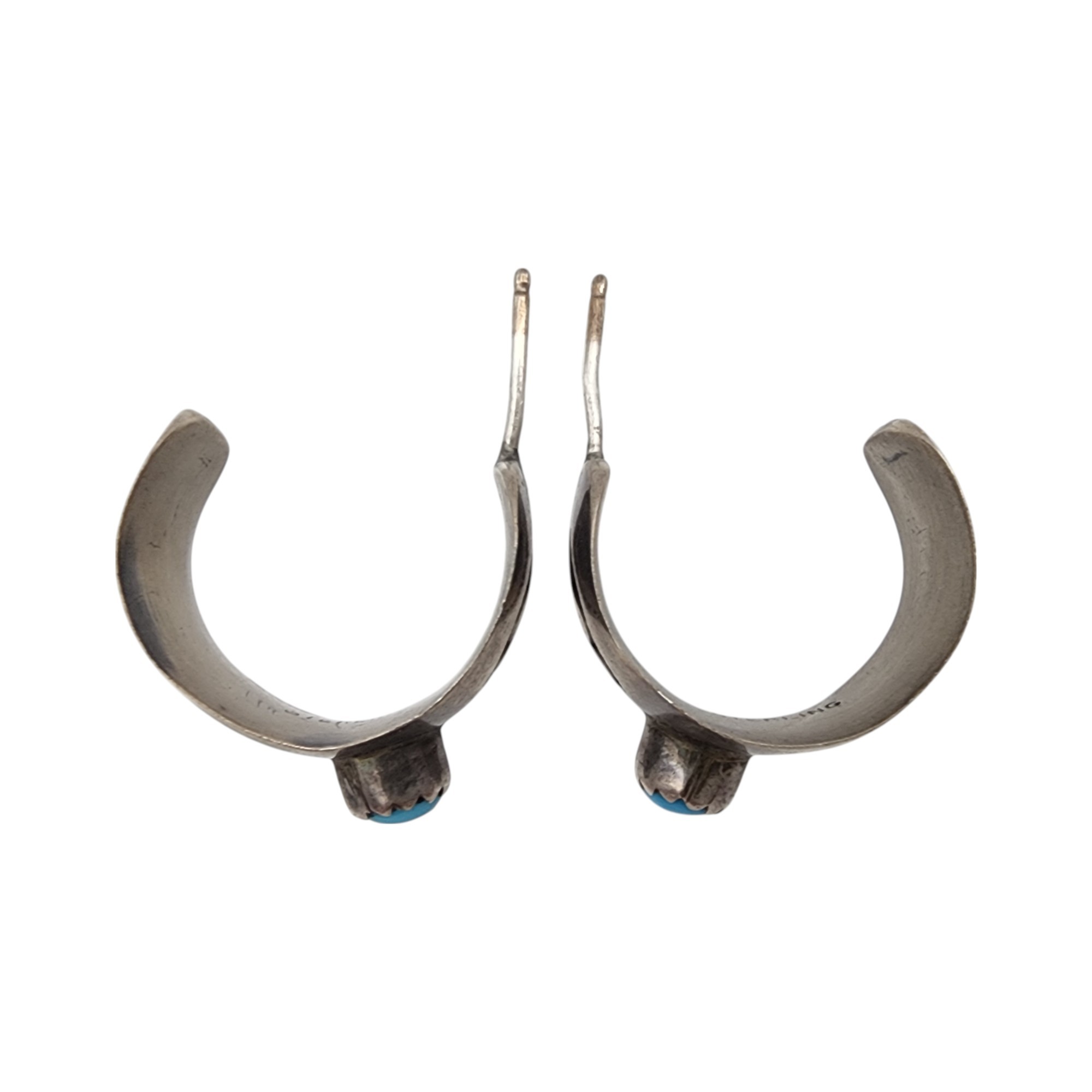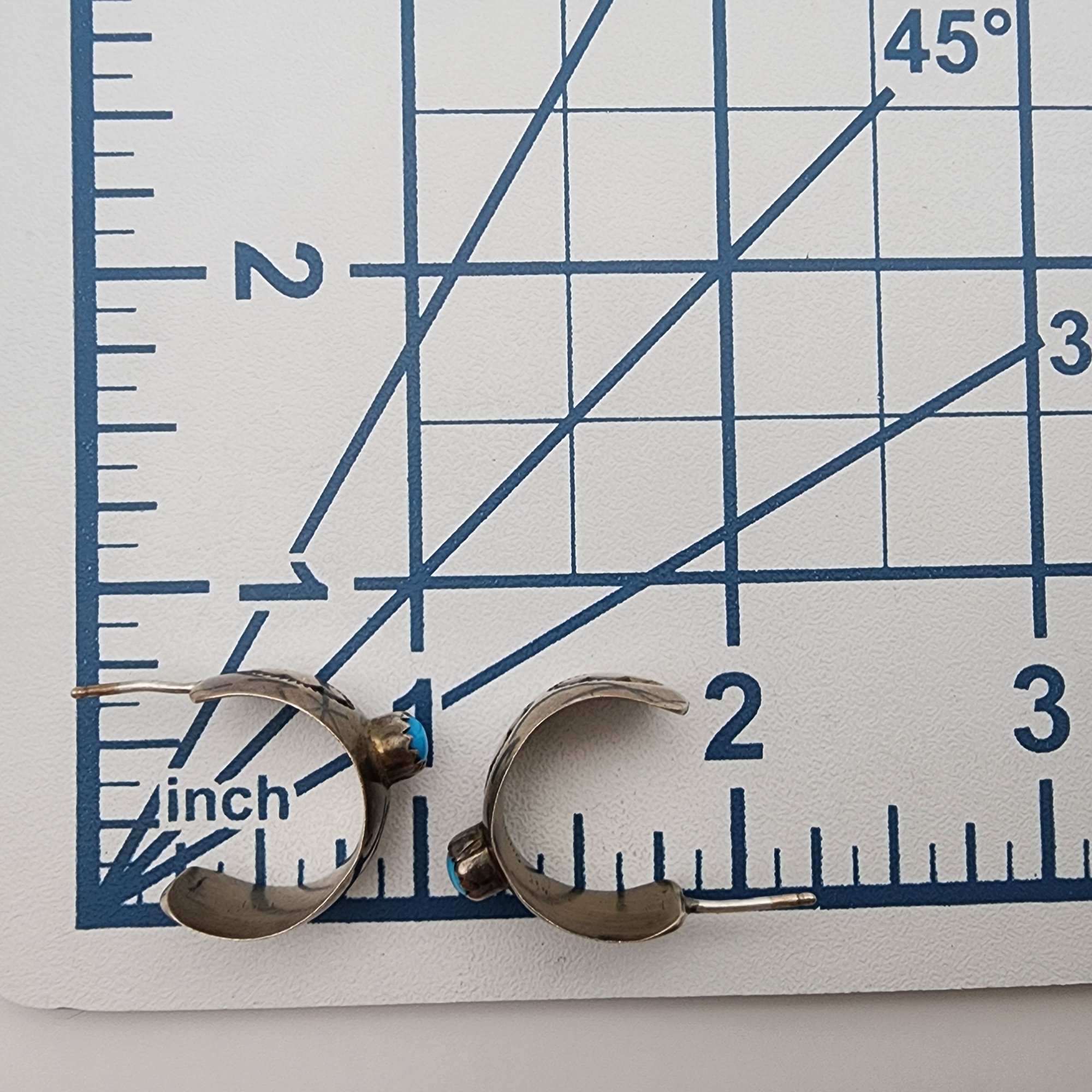 Vintage Navajo Sterling Turquoise Stamped Hoop Earrings