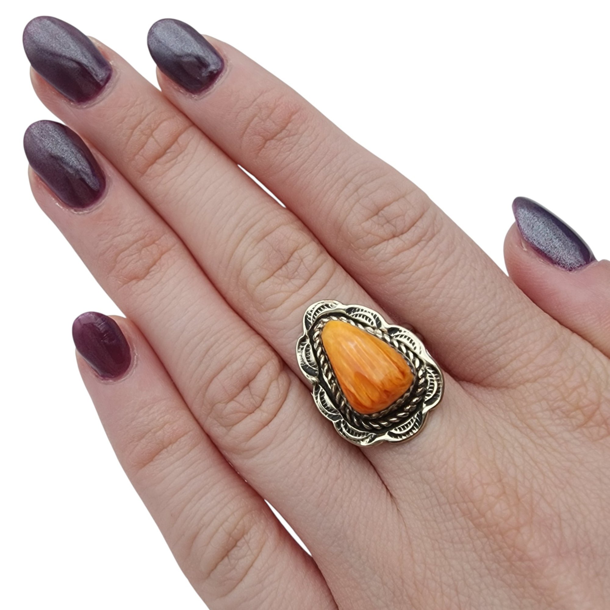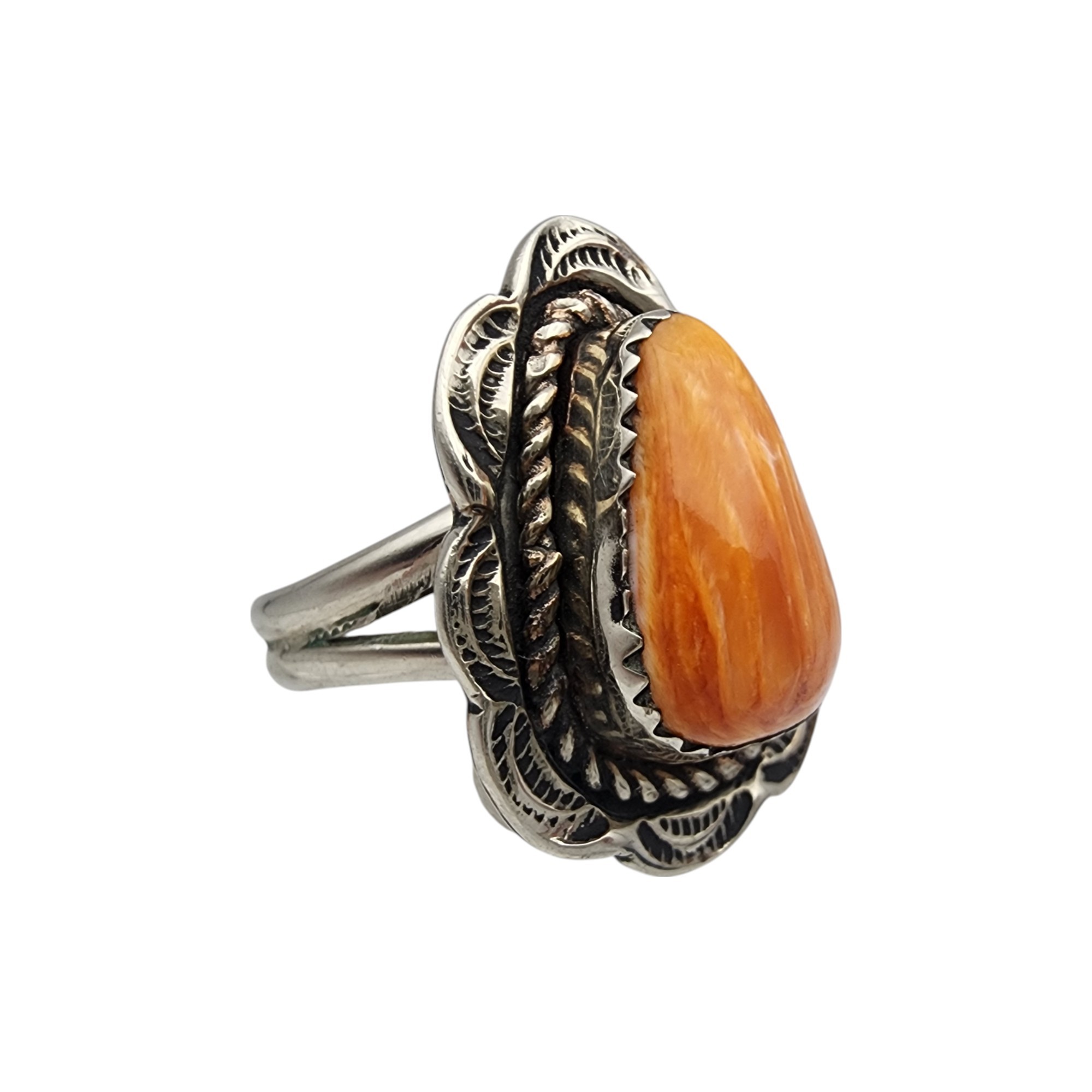 Navajo Sterling Spiny Oyster Ring Sz 8 | 5.8g, as is – scratches on back