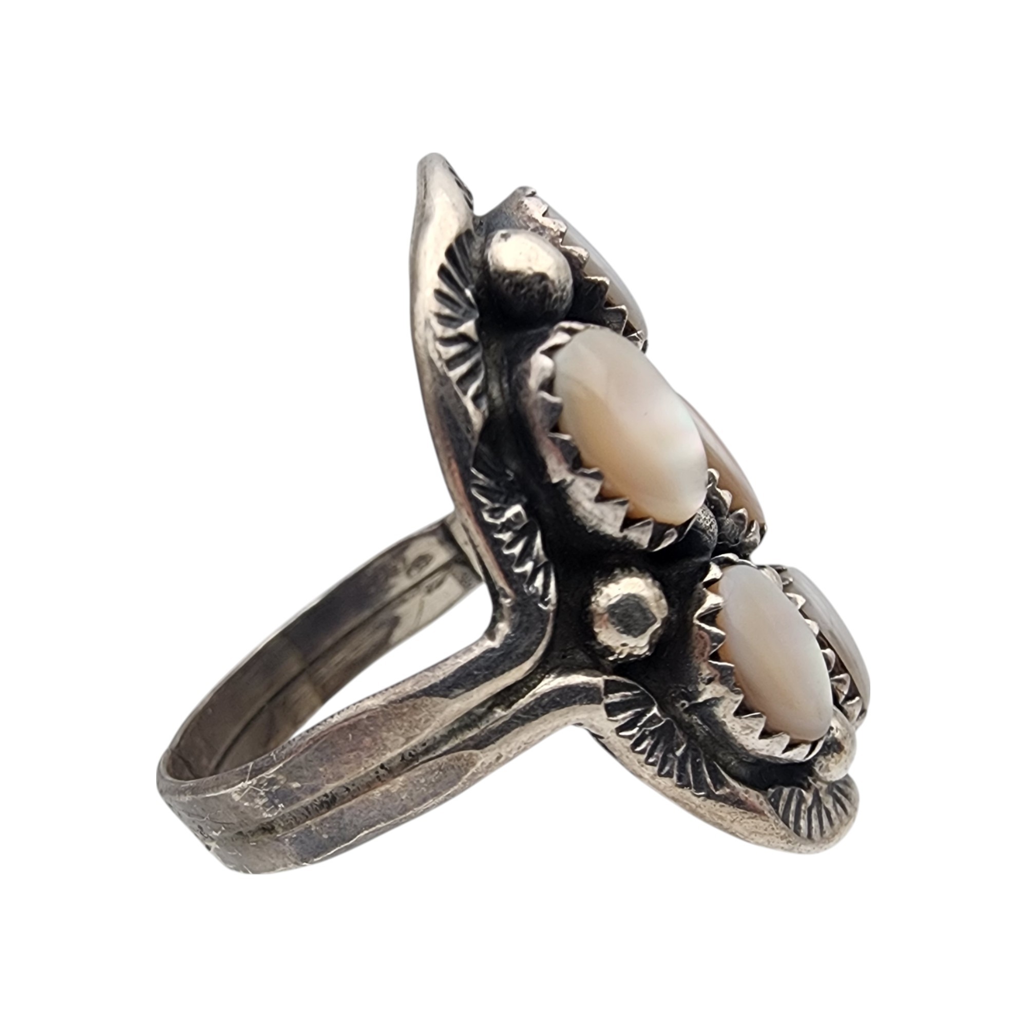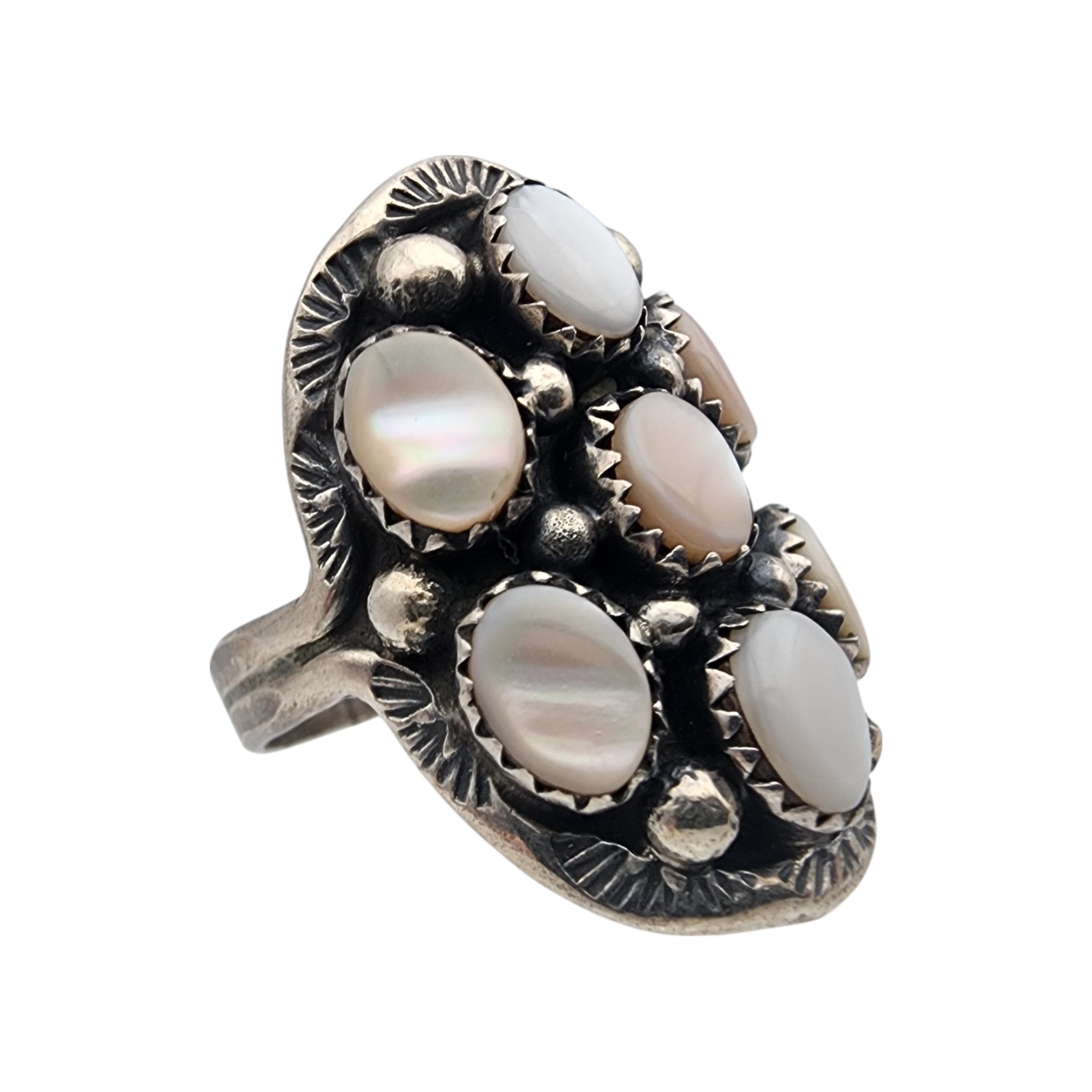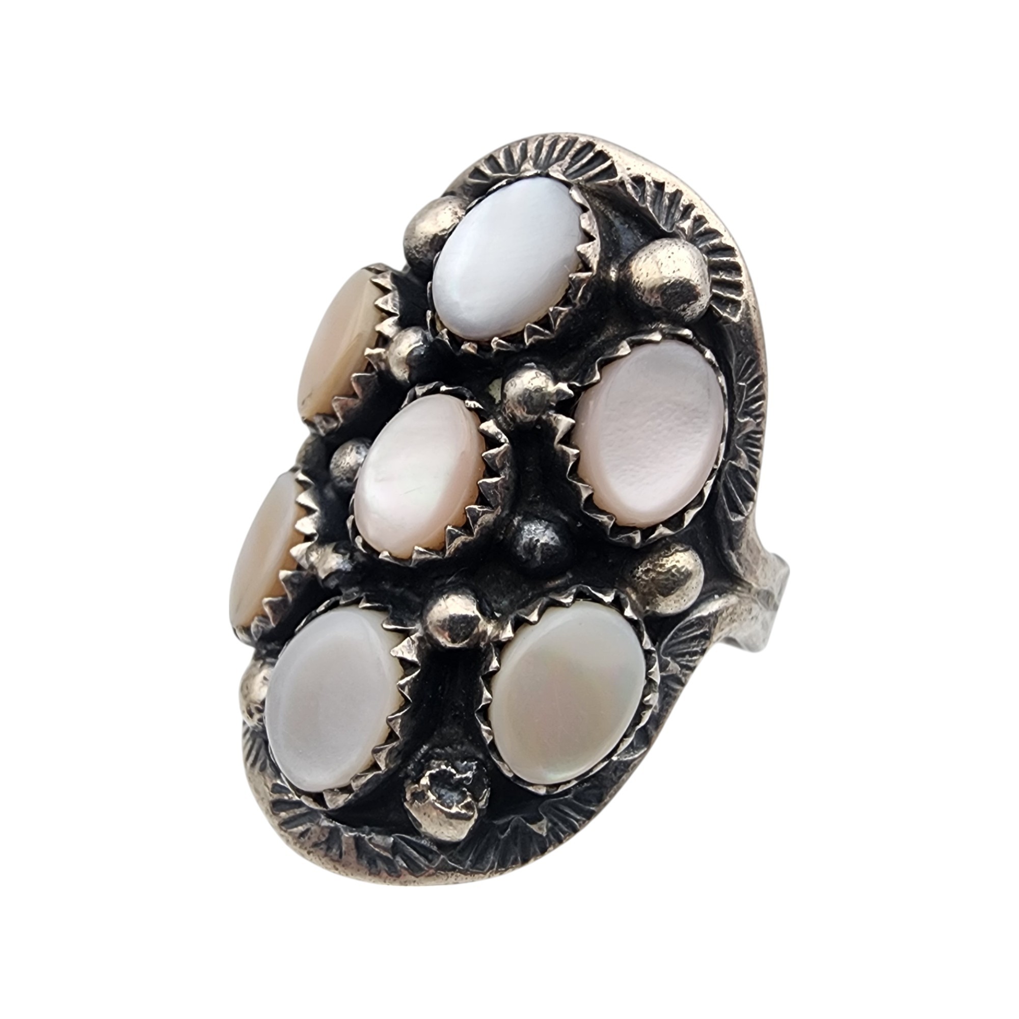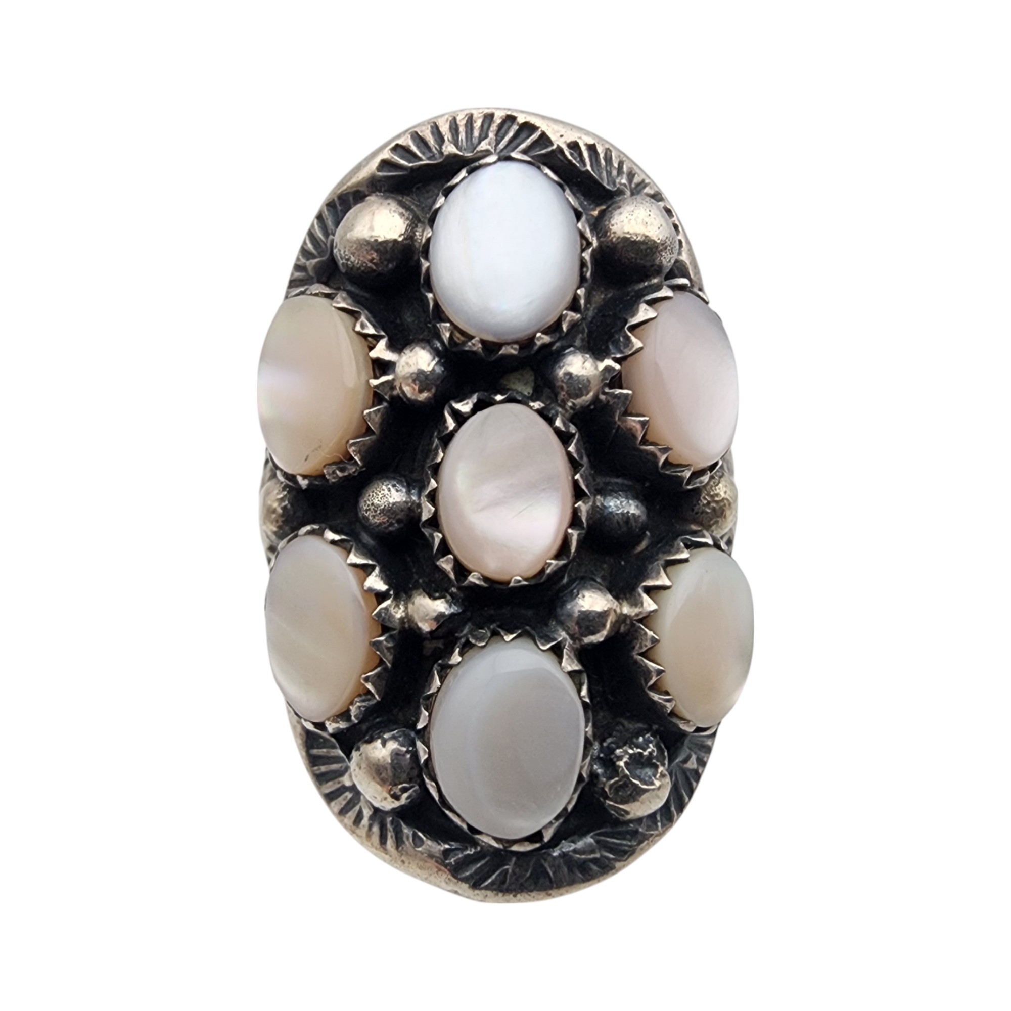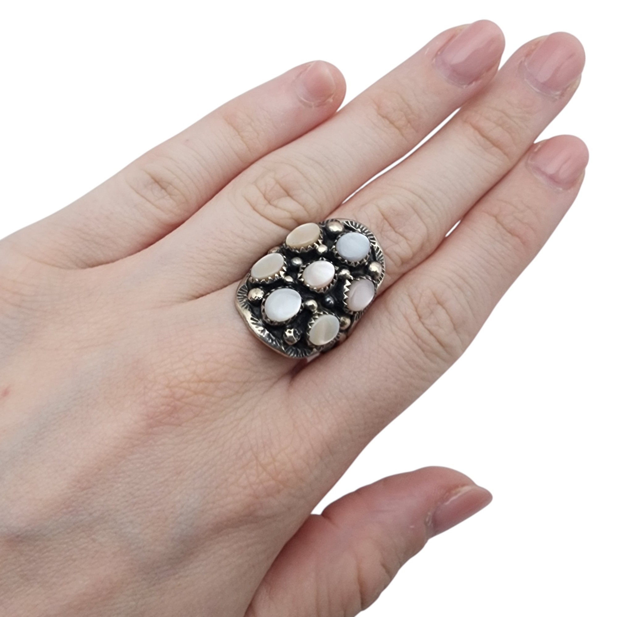 Signed Vintage Navajo Sterling Mother of Pearl Cluster Ring Sz 10 | 8.9g