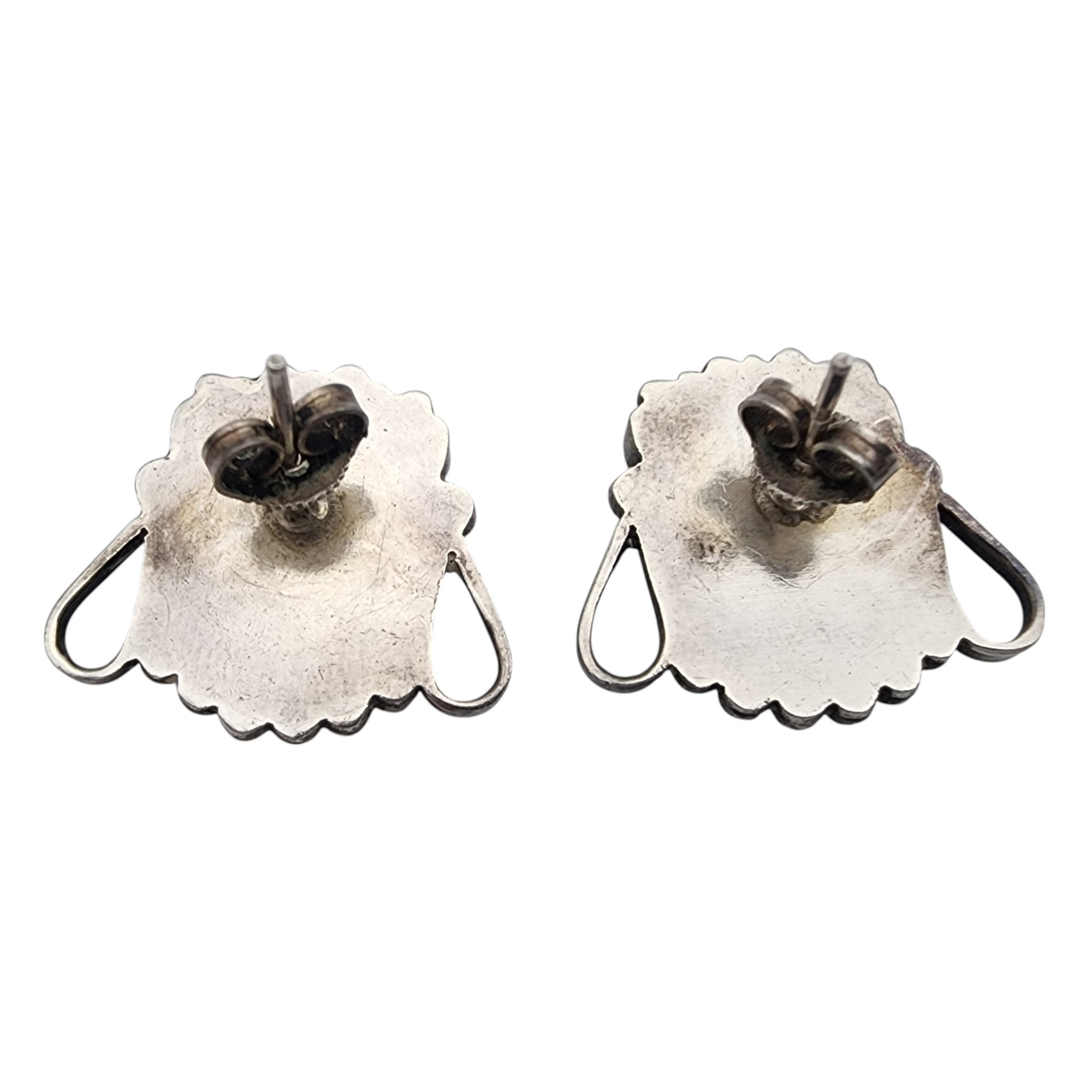 Vintage Zuni Sterling Multistone (Turquoise, Mother of Pearl, Jet, Coral) Inlay Sunface Earrings | 6.1g