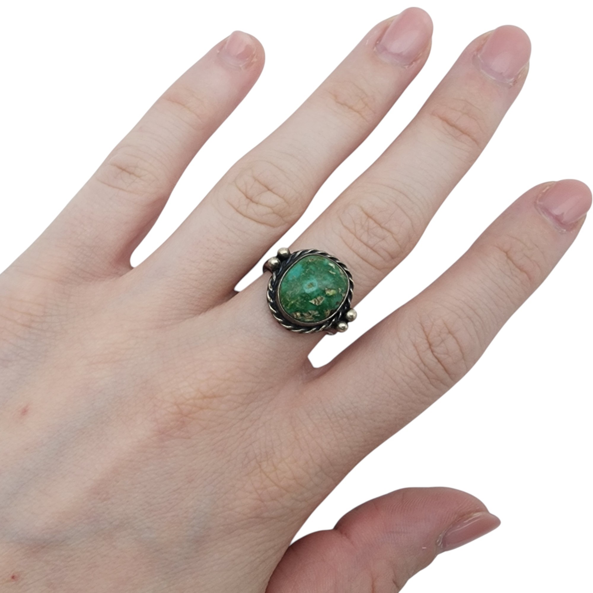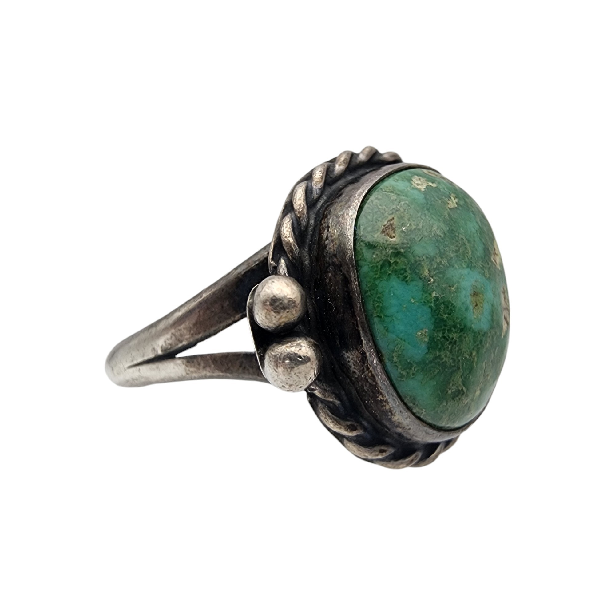 Vintage Navajo Sterling Turquoise Ring Sz 7 | 5.3g – very pretty green blue turquoise stone!