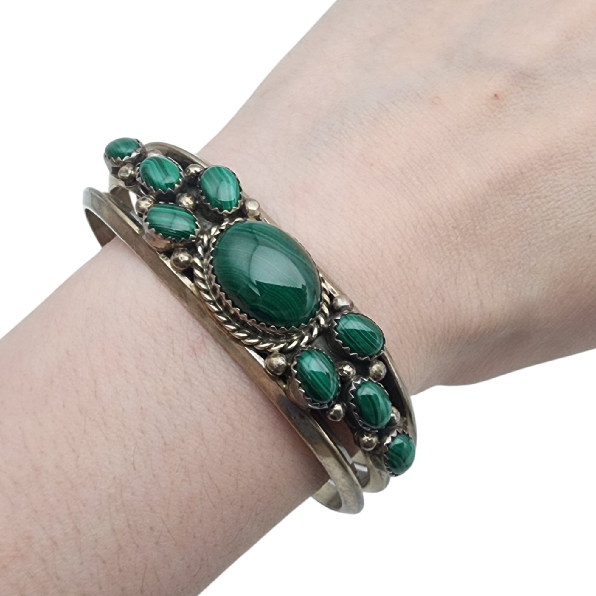 Stunning! First American Traders Gallup Sterling Malachite Cuff Bracelet | 43.5g | Solid, very well made, amazing cuff