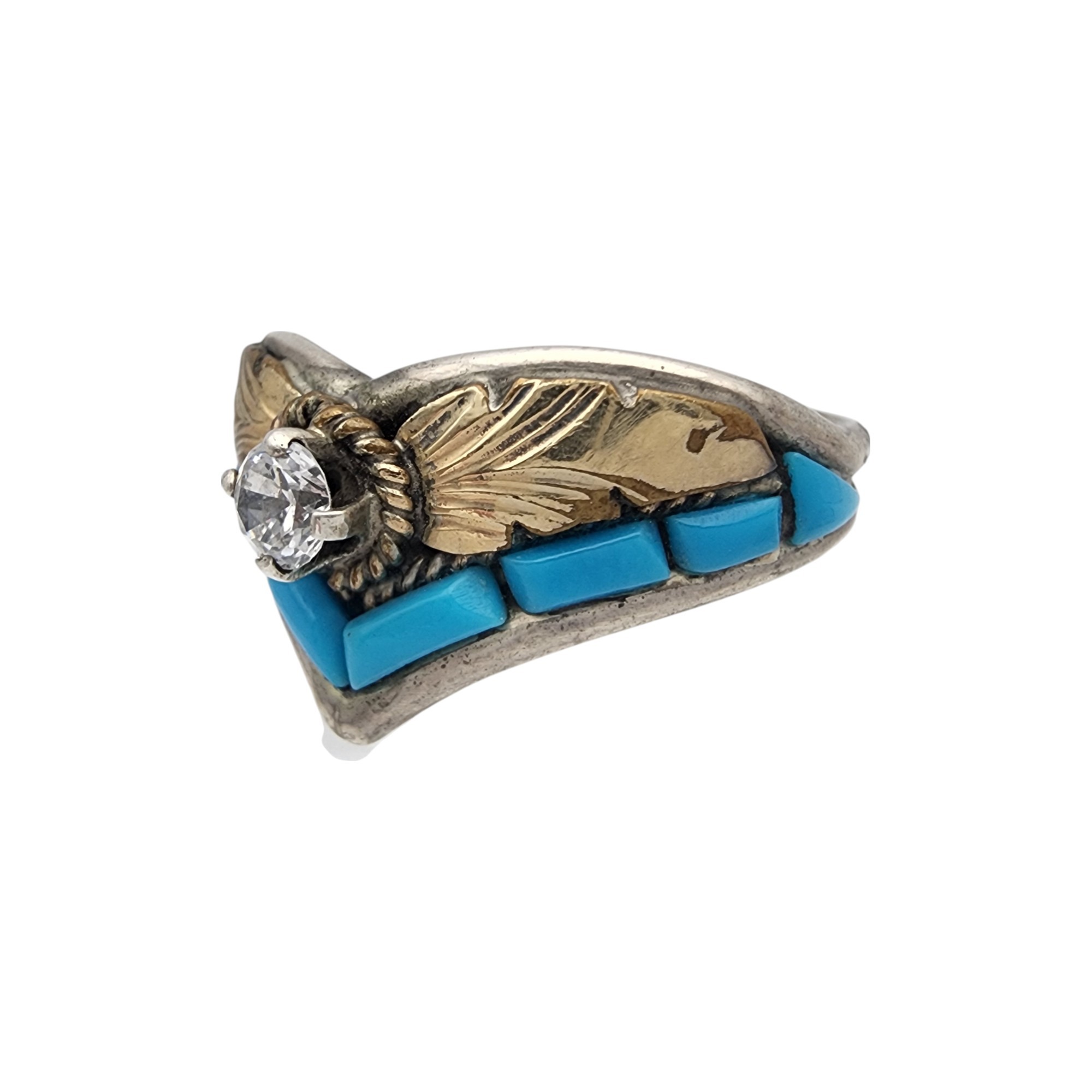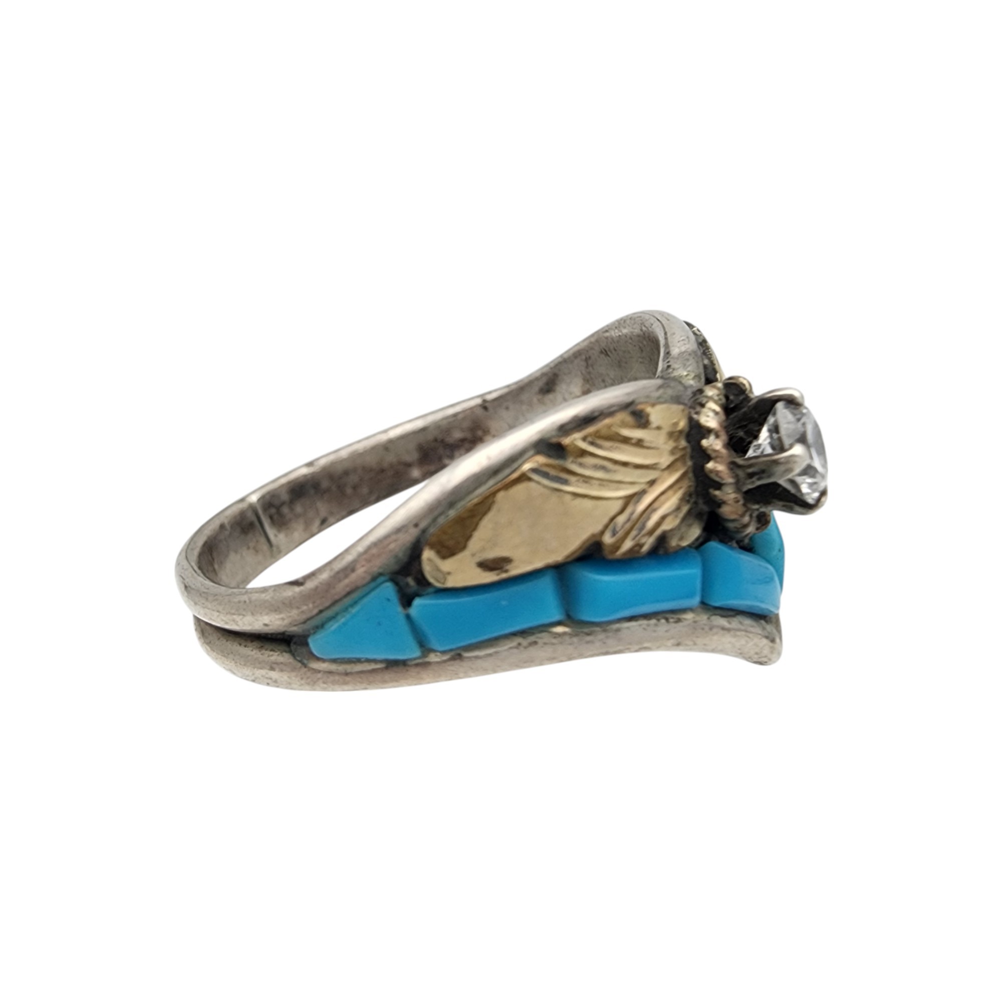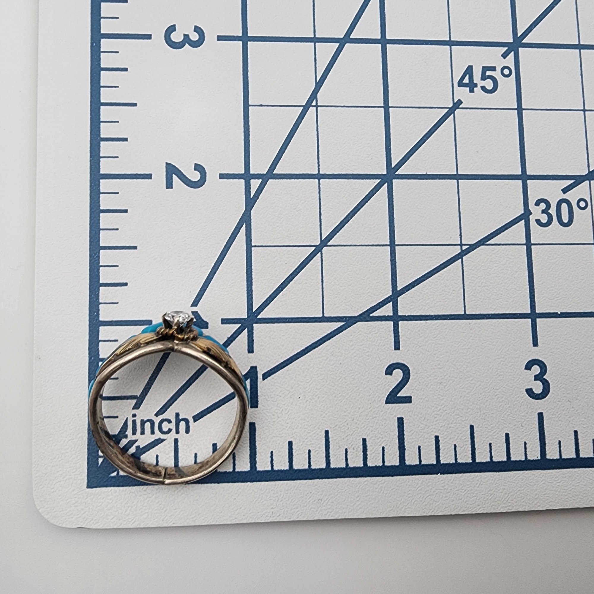 Silver Ray Style (unsigned) Navajo Sterling Turquoise Cobblestone & CZ Ring Sz 12 | 5.7g