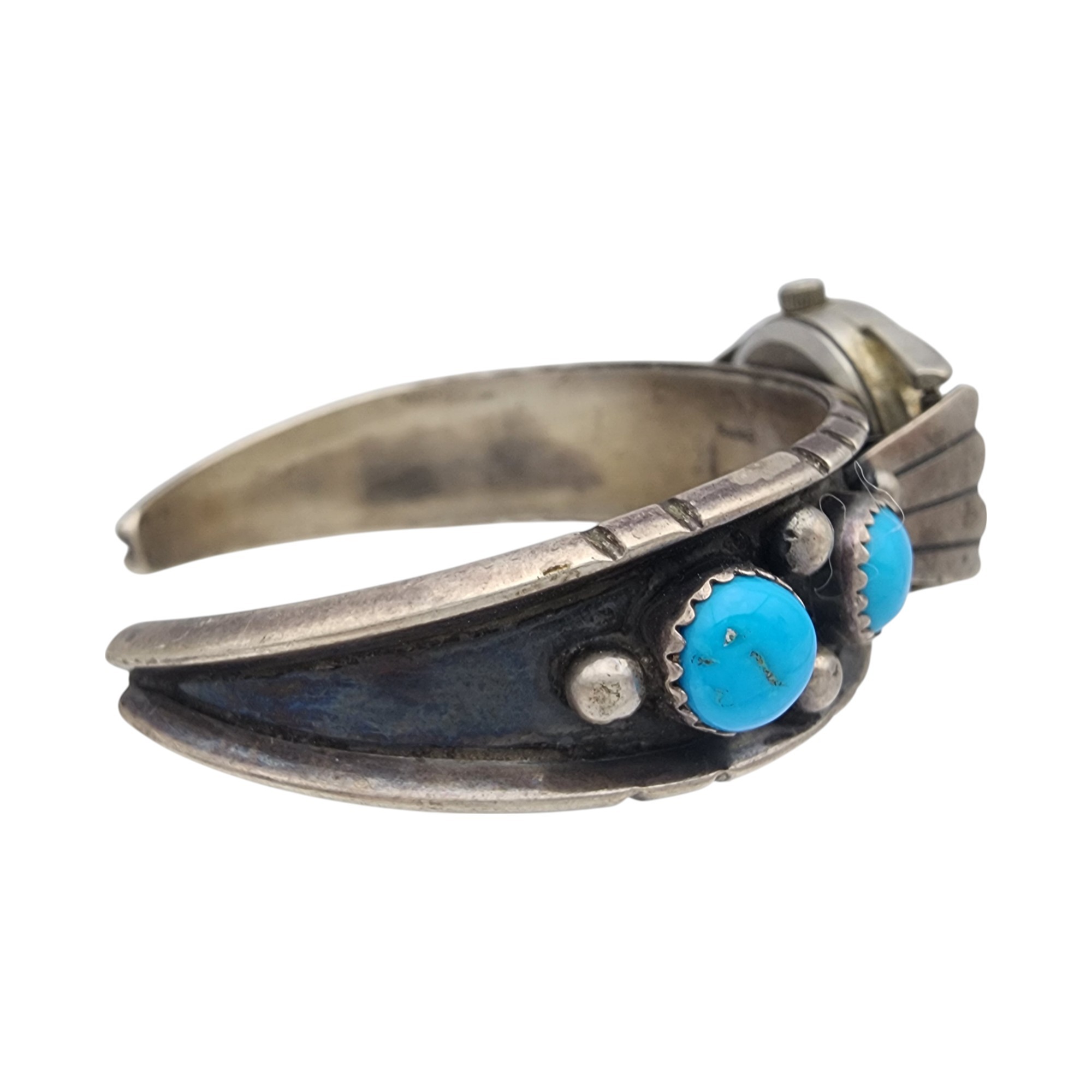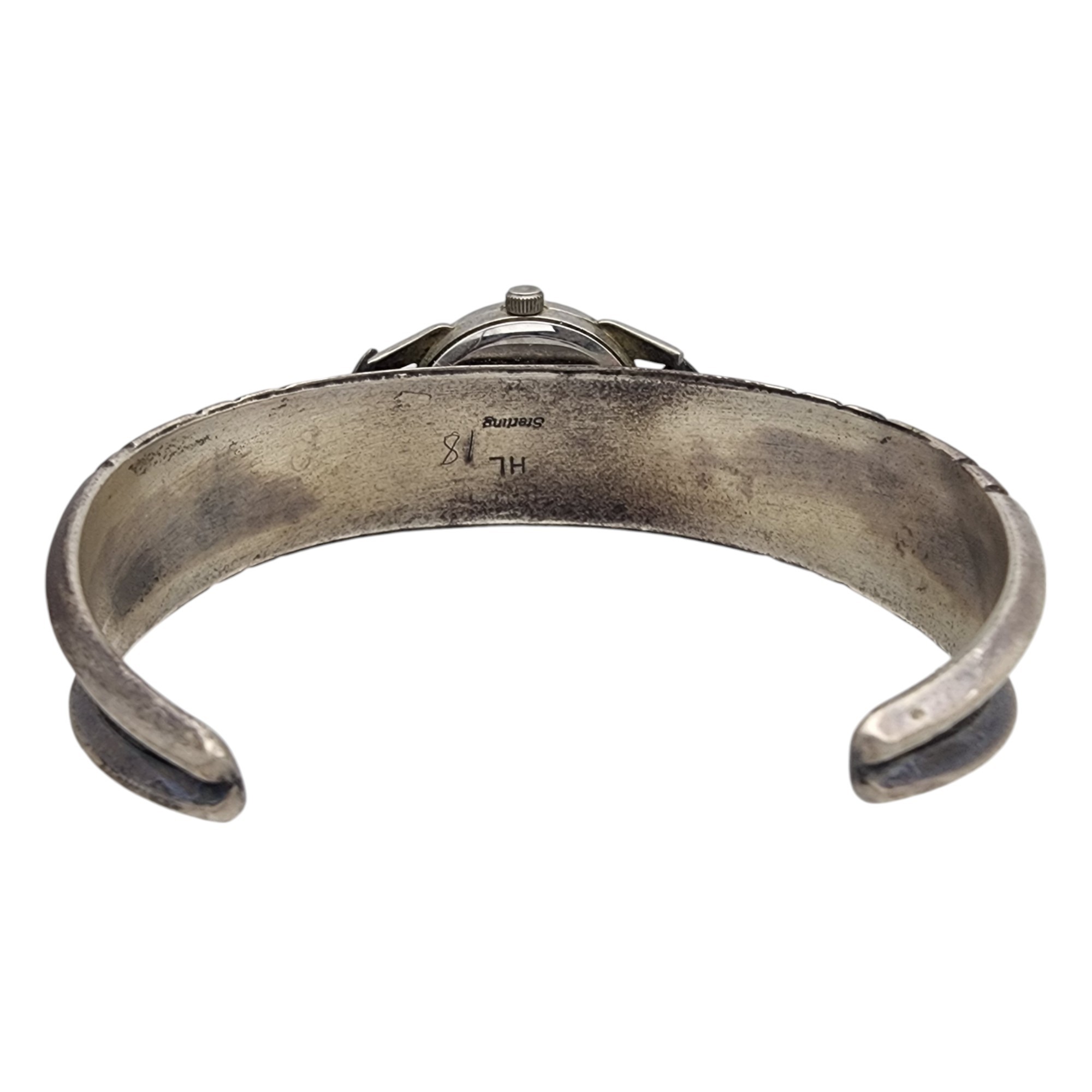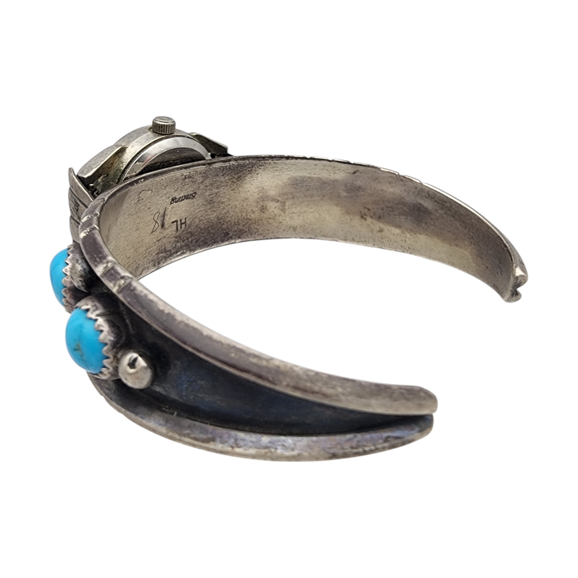 Signed Navajo Sterling Turquoise Watch Cuff Bracelet | 31.2g